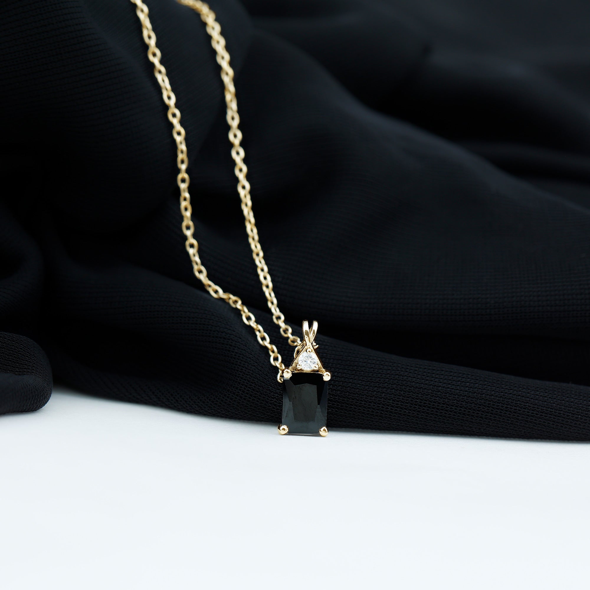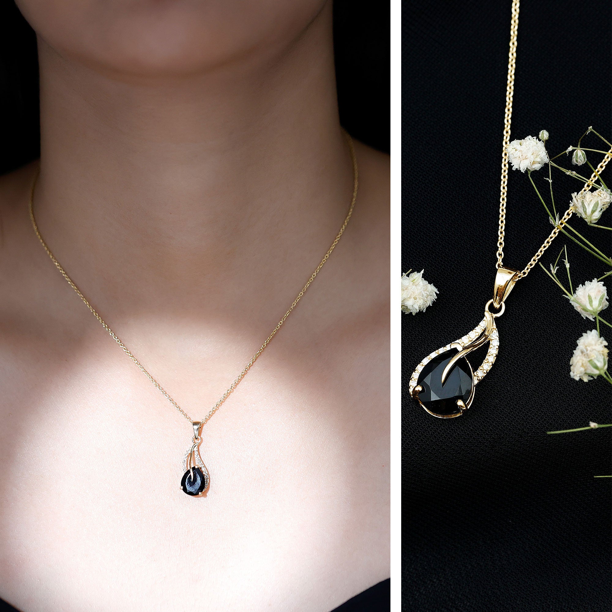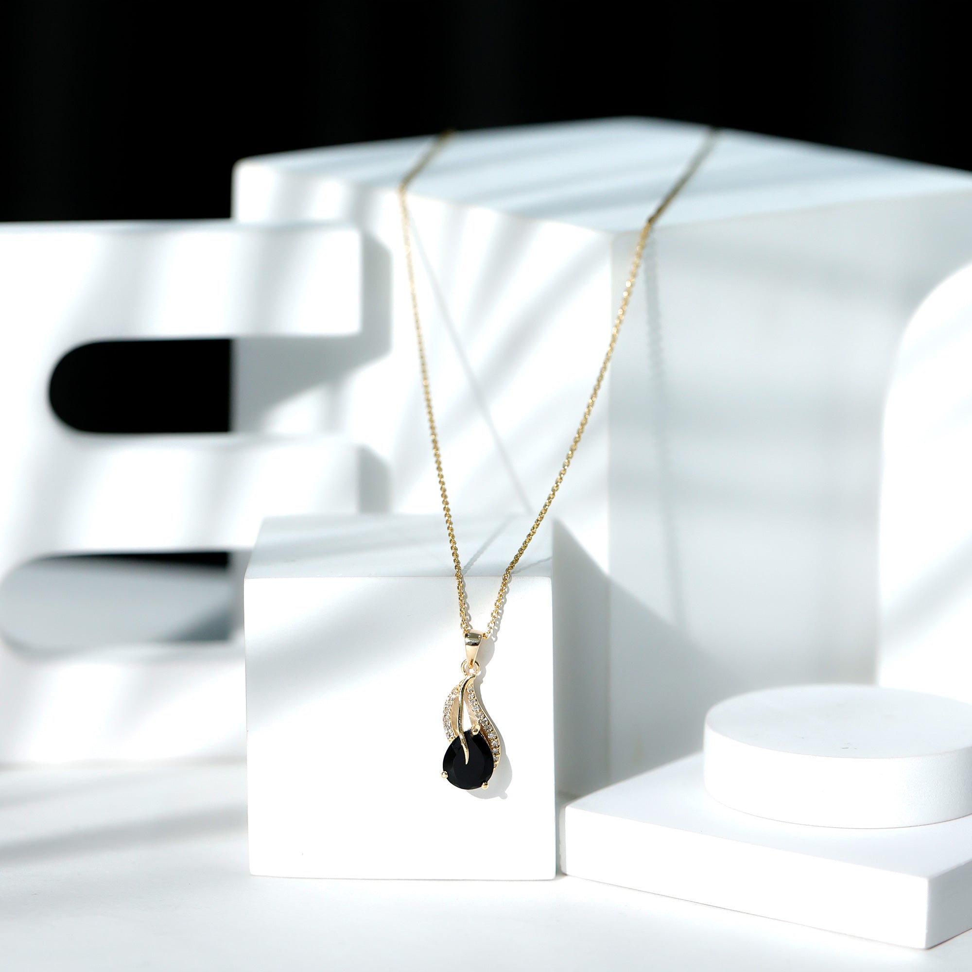 Black onyx necklace gold looks just as lustrous combined with any metal color: white gold, yellow gold or rose gold. White white gold makes it look more classic and vintage, yellow gold goes great on any skin tone and rose gold makes it look more feminine and pretty.