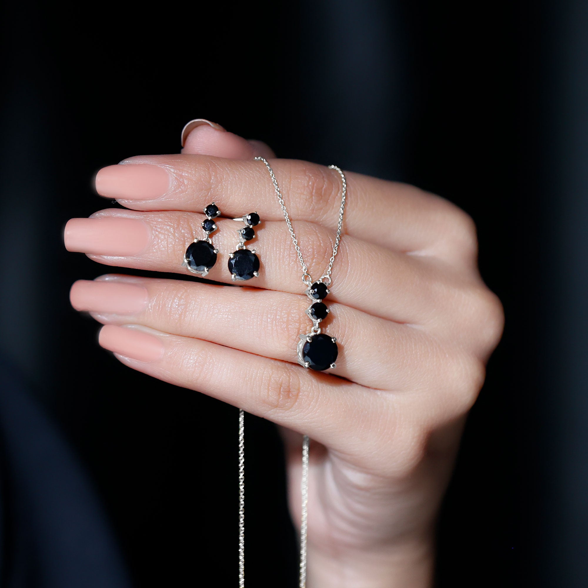 - Three Stone Black Onyx Necklace : Can’t get enough of the polished and intense shine of Black onyx? Want something more elaborate to define your neckline with? Look no further than a three stone black onyx necklace for a bolder, intense and glossier look.