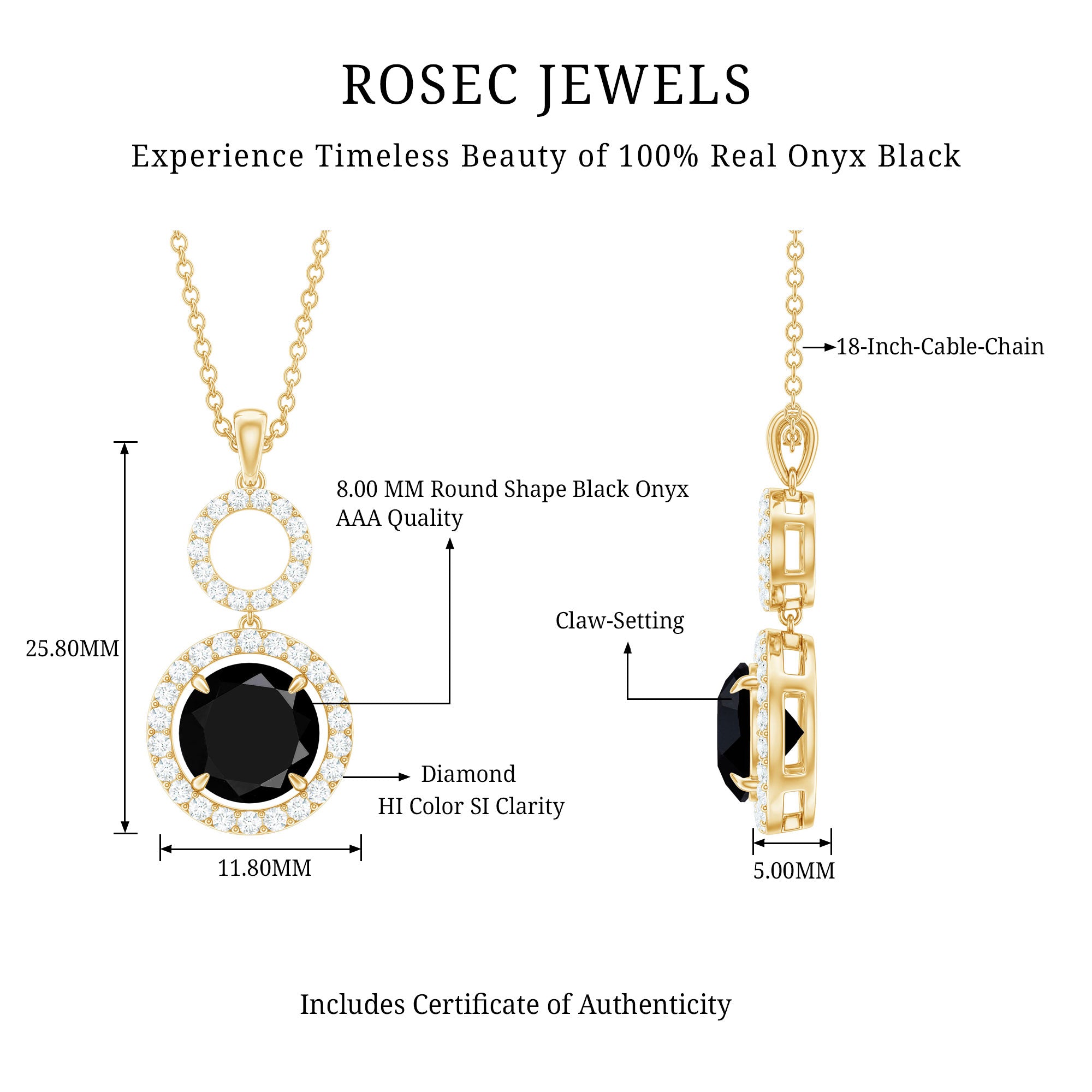 - Black Onyx Halo Necklace : Can we ever get enough of glow in our jewelry? The stylish statement of black and brilliant bright sparkle of diamond together make black onyx necklace with diamonds can sure light up a room with its grace and make you look like a royal diva!