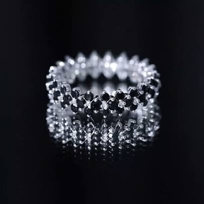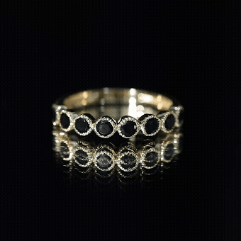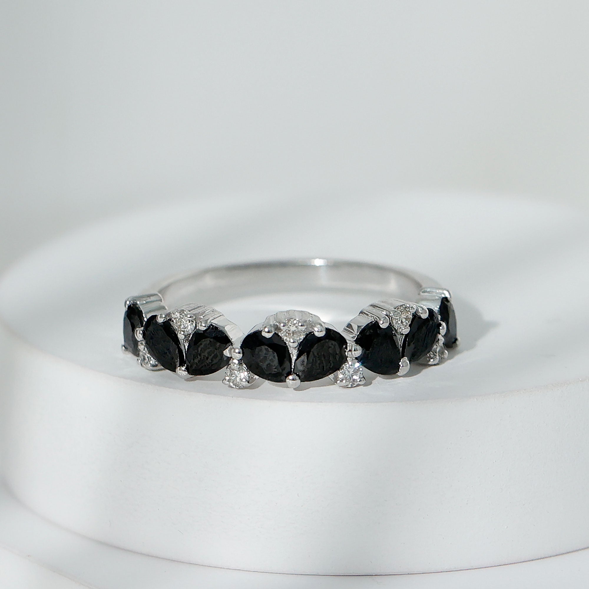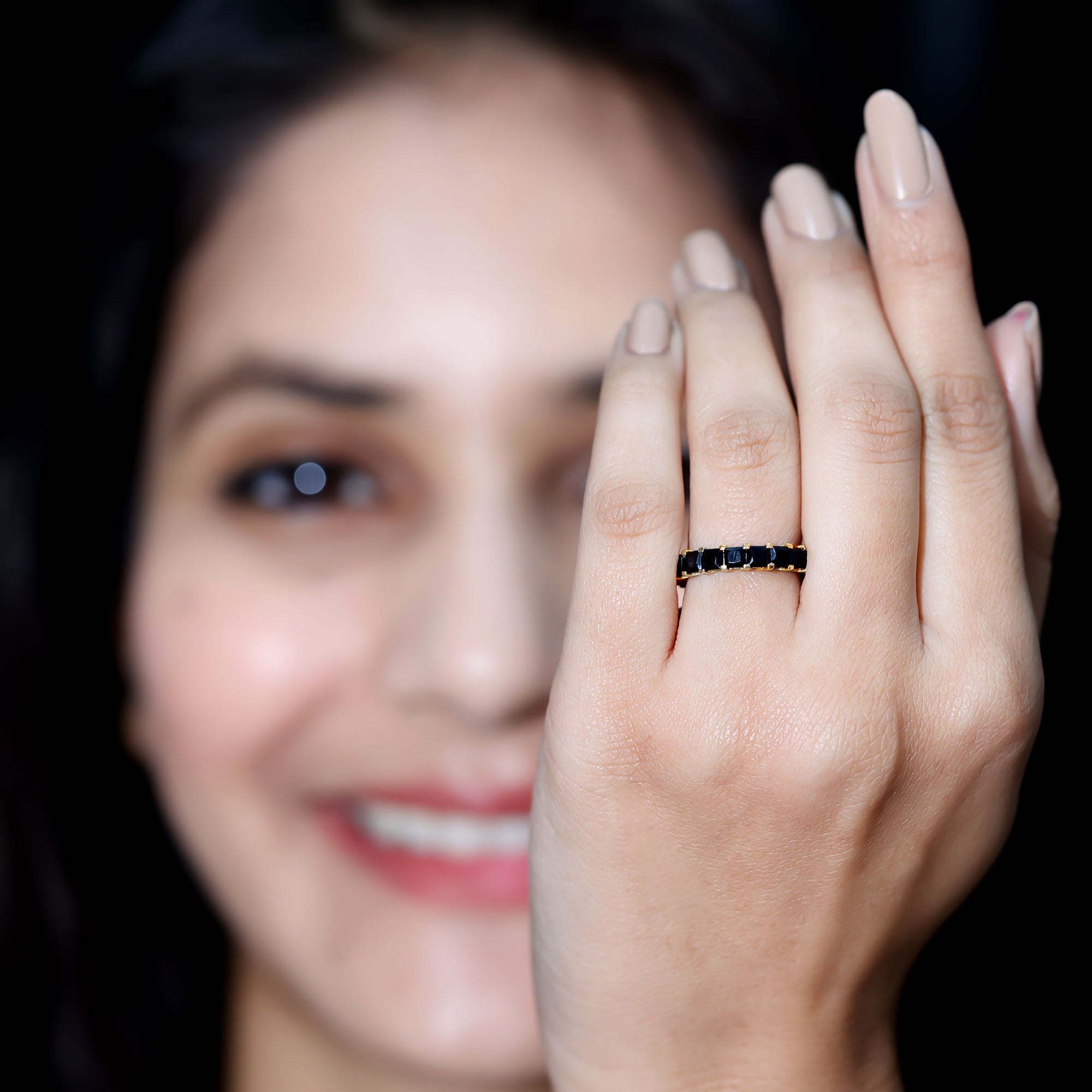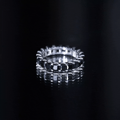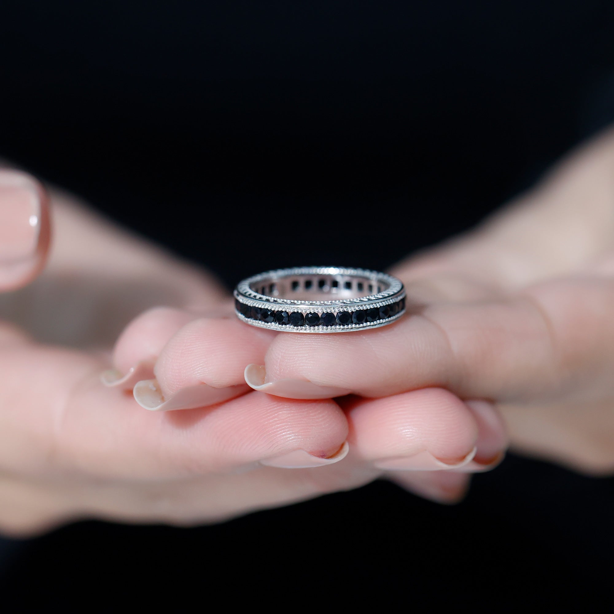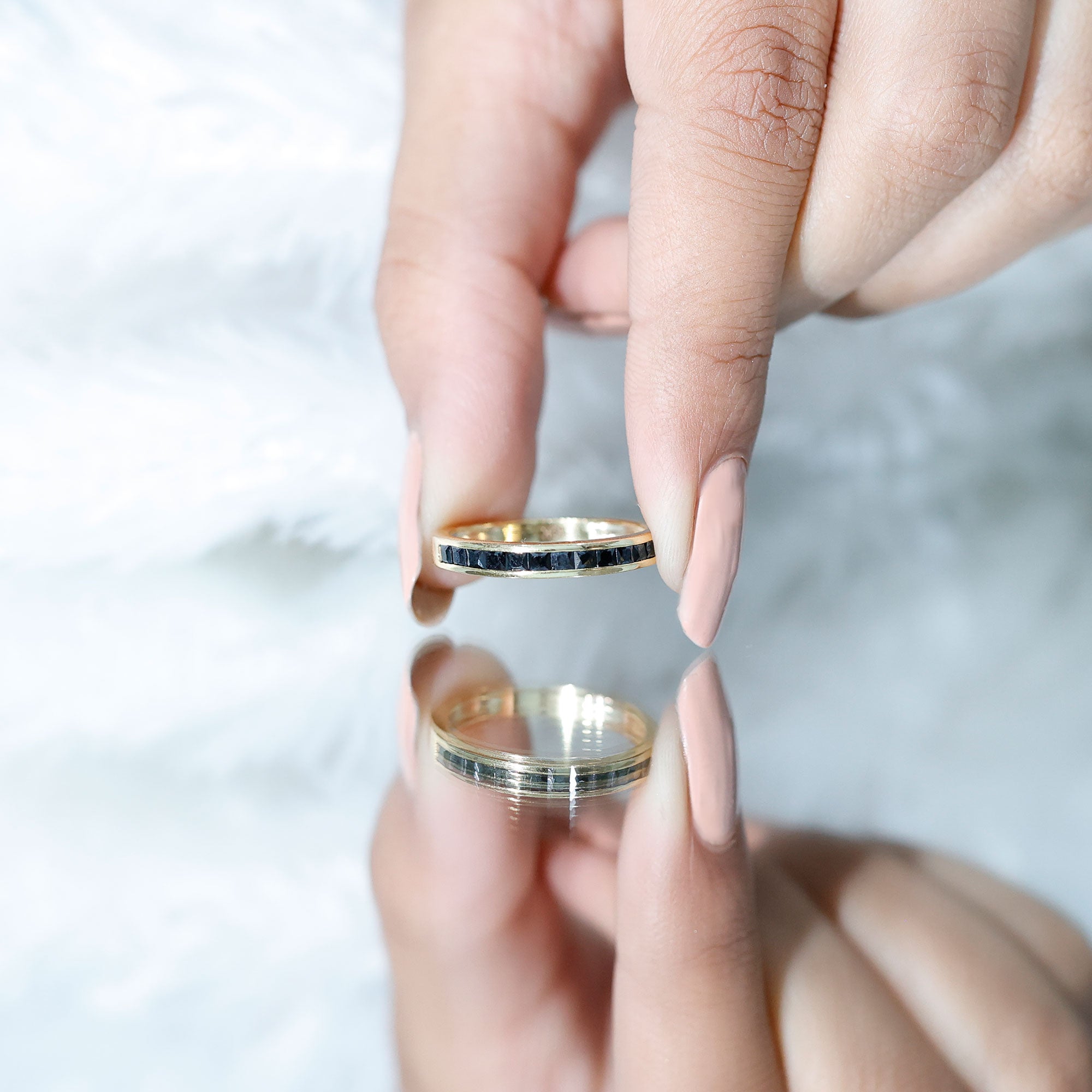 A Modern Classic, this Eternity Ring is paraded by a row of Black Onyx that are typically uniform in size. You’ll find no better style to flaunt your Black Onyx. But don’t take it to mean that it is all aesthetics. This style has been crafted in a way that carries an equally beautiful meaning behind it. The eternity pattern of stones commemorates the kind of love that lasts till the end of time (eternally). That’s why it also makes for an iconic Black Onyx Wedding Ring.