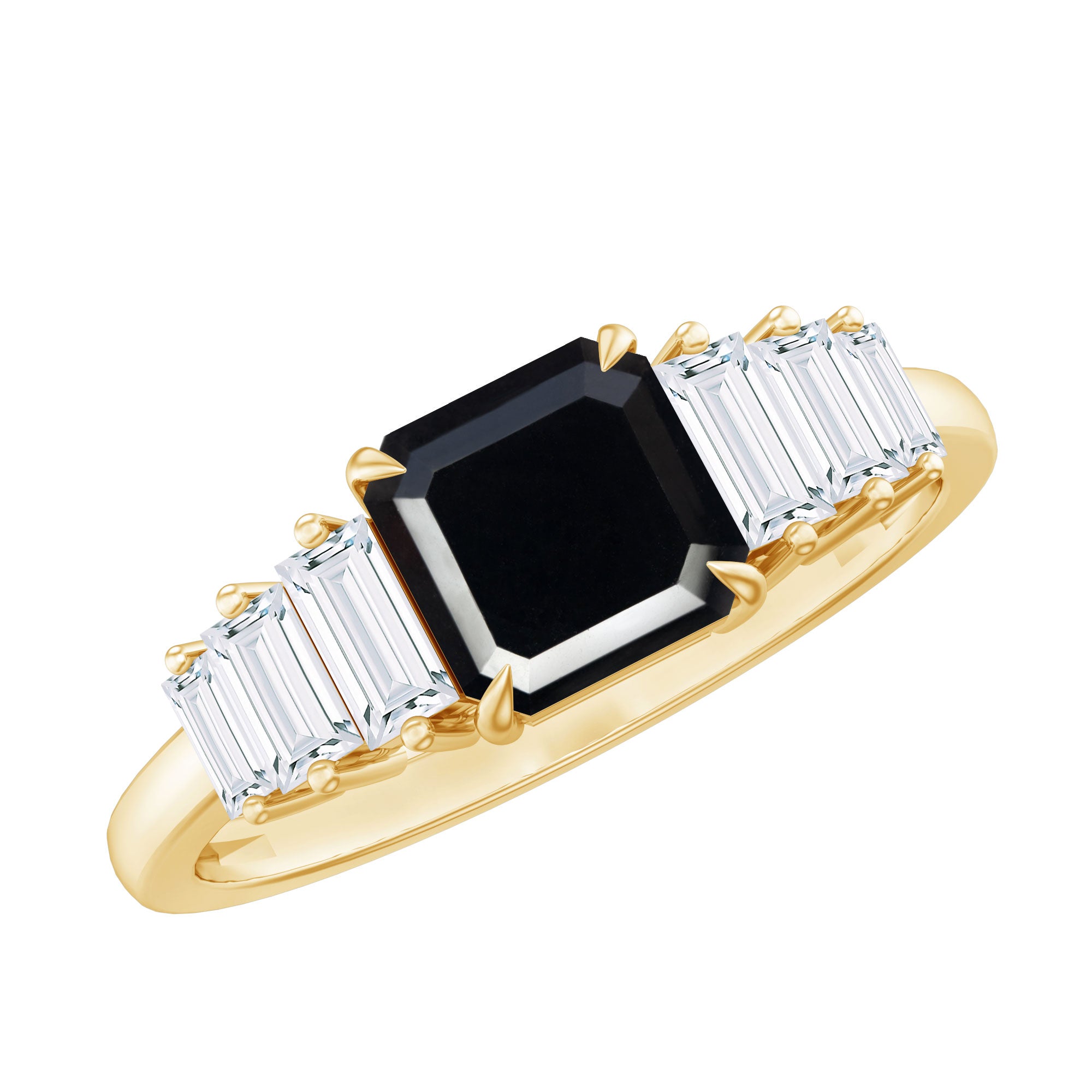 In a Solitaire Style, the Single-Stone of Black Onyx works like the center of all attraction. The enormous size of Black Onyx here, i.e., 6-8 MM, makes all the difference. This style could easily be awarded the most popular and classic Black Onyx Engagement Ring. Right from the conventional round to fancy pear and marquise and vintage Asscher and Emerald, this ring style offers you a world of options.