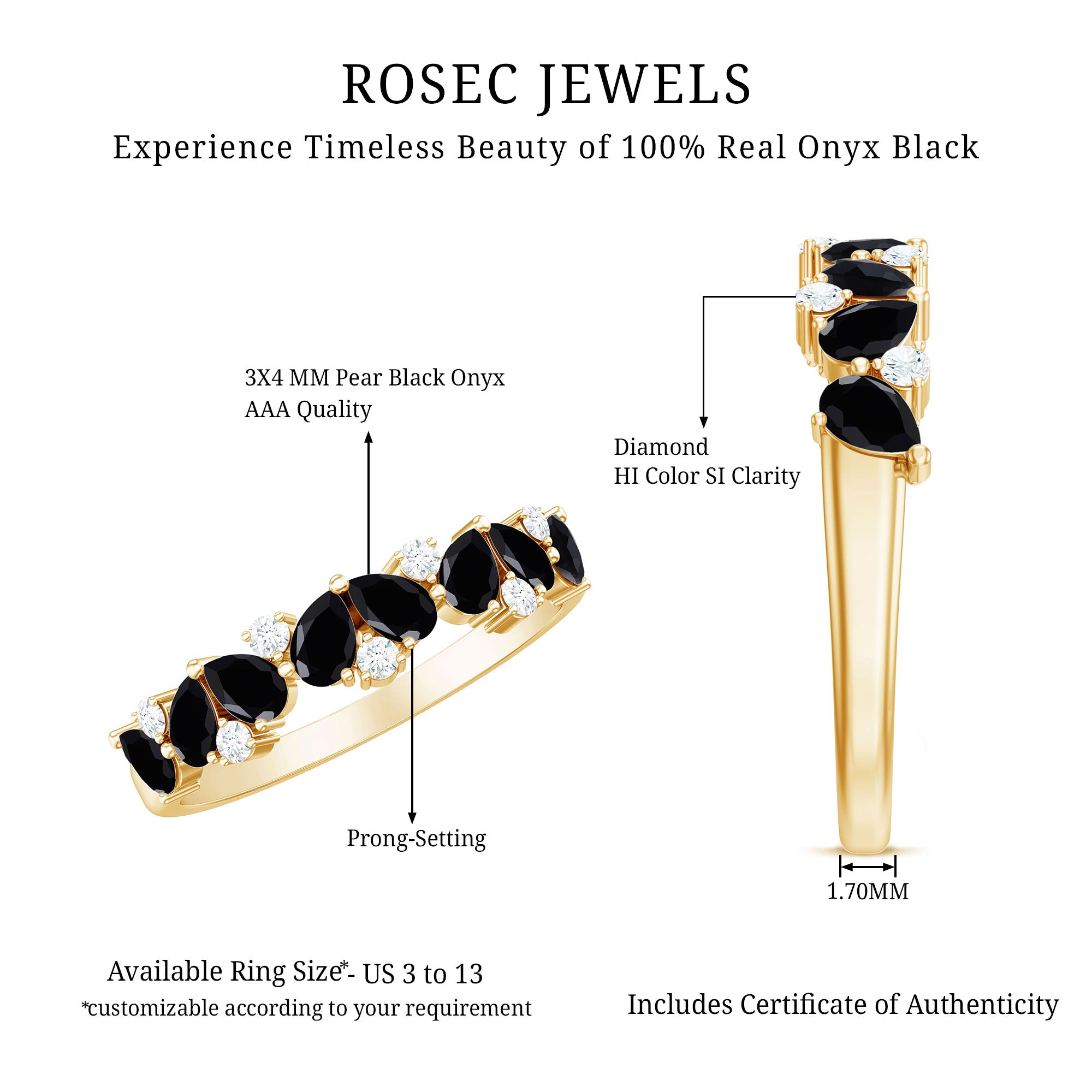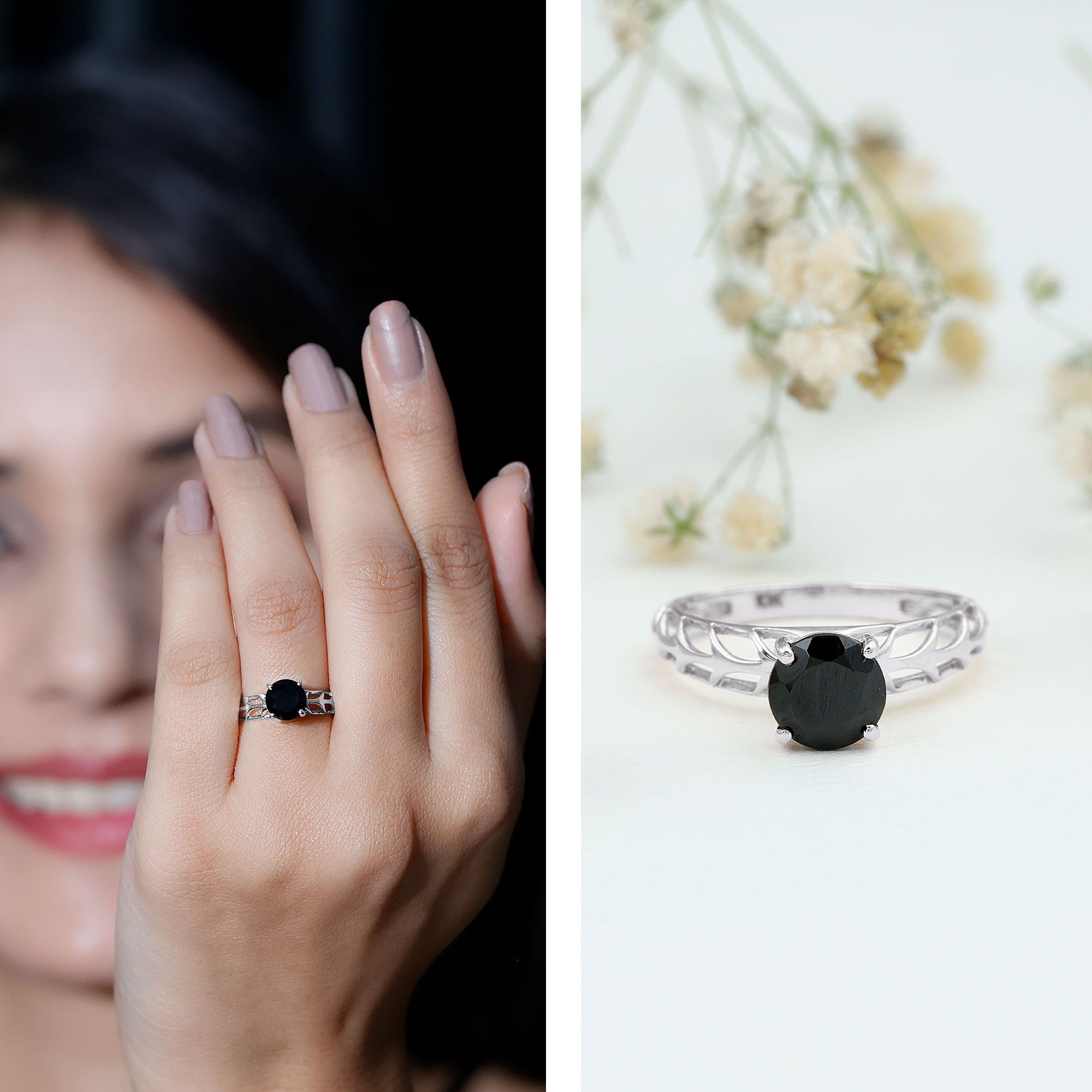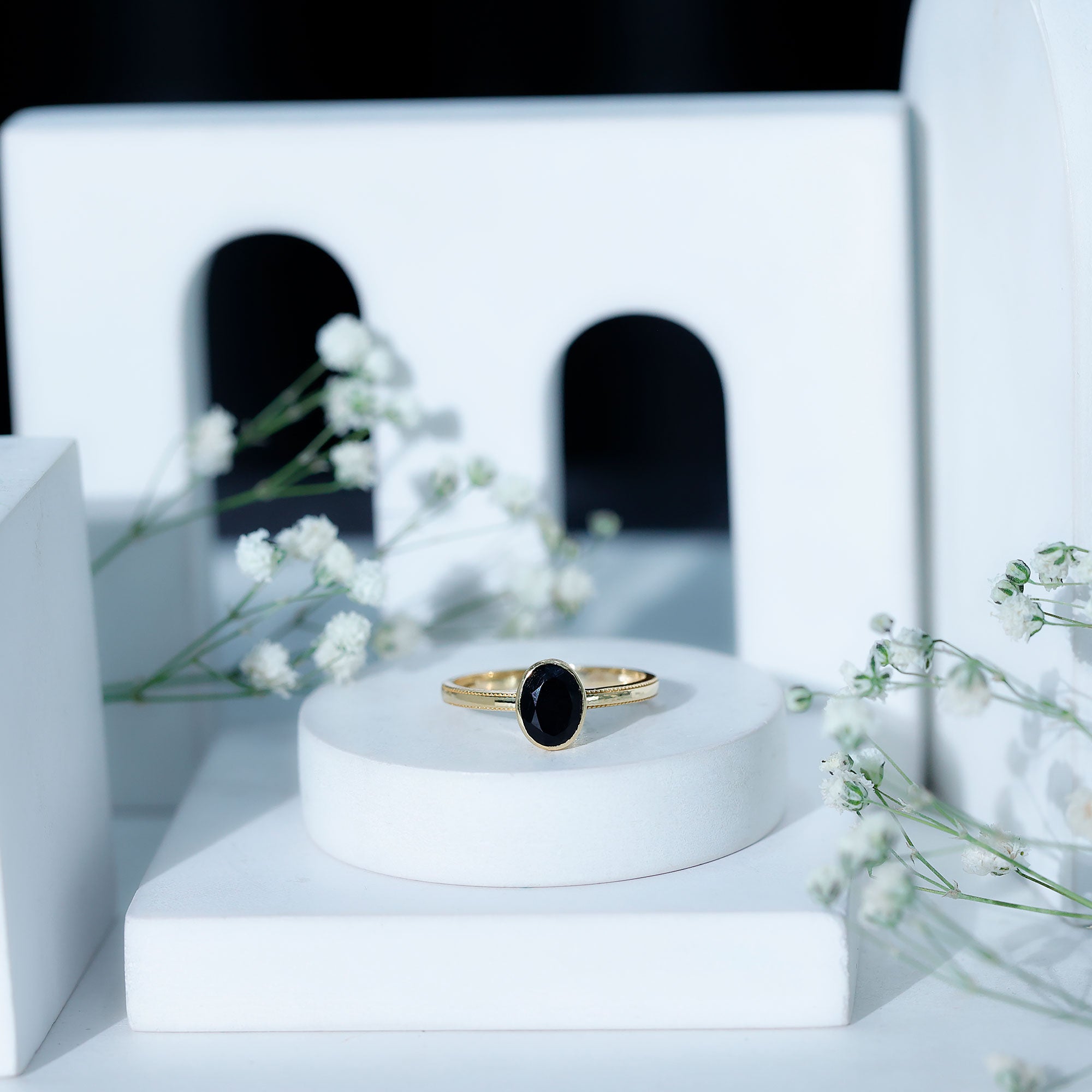 A Promise Ring highlights the Centerpiece of Black Onyx while staying understated. That’s because the size of Black Onyx here is a lot smaller (typically, around 4 mm or less). This ring style could incorporate elegant floral motifs, minimalist nature-inspired details, or accents of Diamond/Moissanite (without overdoing it). When presented, these Black Stone Rings insinuate a promise of togetherness and an intent to take the relationship to the next level.