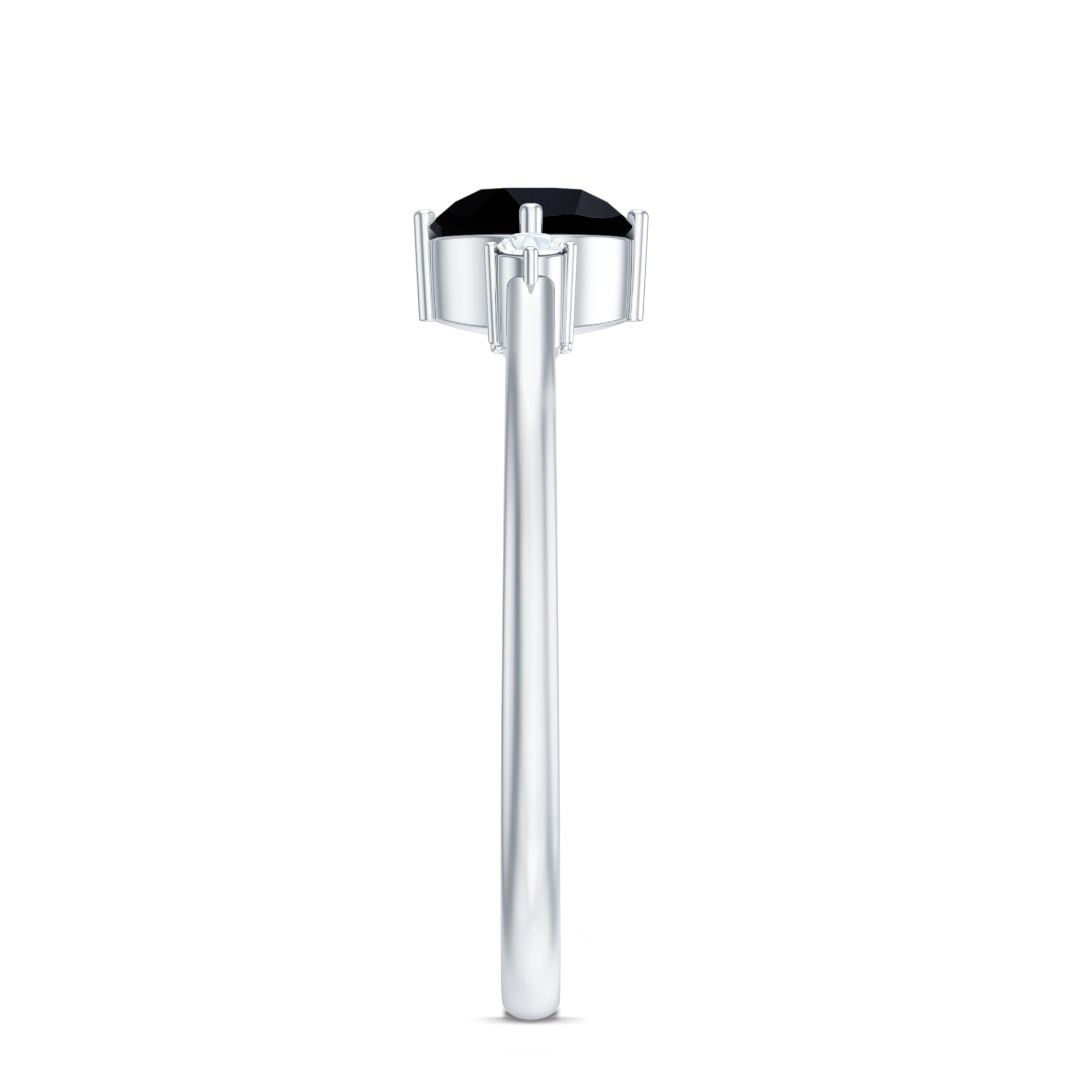In a Solitaire Style, the Single-Stone of Black Onyx works like the center of all attraction. The enormous size of Black Onyx here, i.e., 6-8 MM, makes all the difference. This style could easily be awarded the most popular and classic Black Onyx Engagement Ring. Right from the conventional round to fancy pear and marquise and vintage Asscher and Emerald, this ring style offers you a world of options.