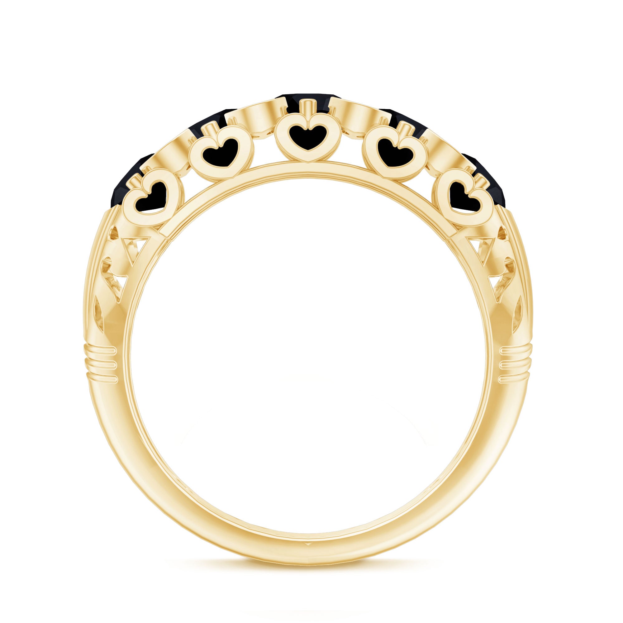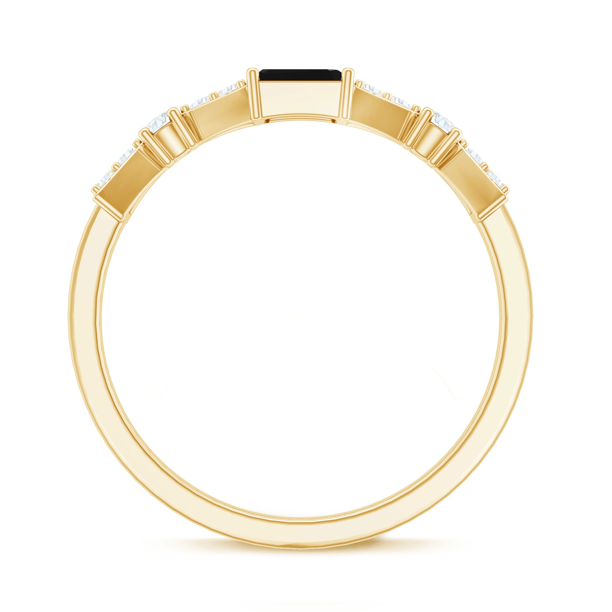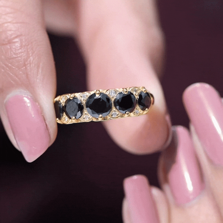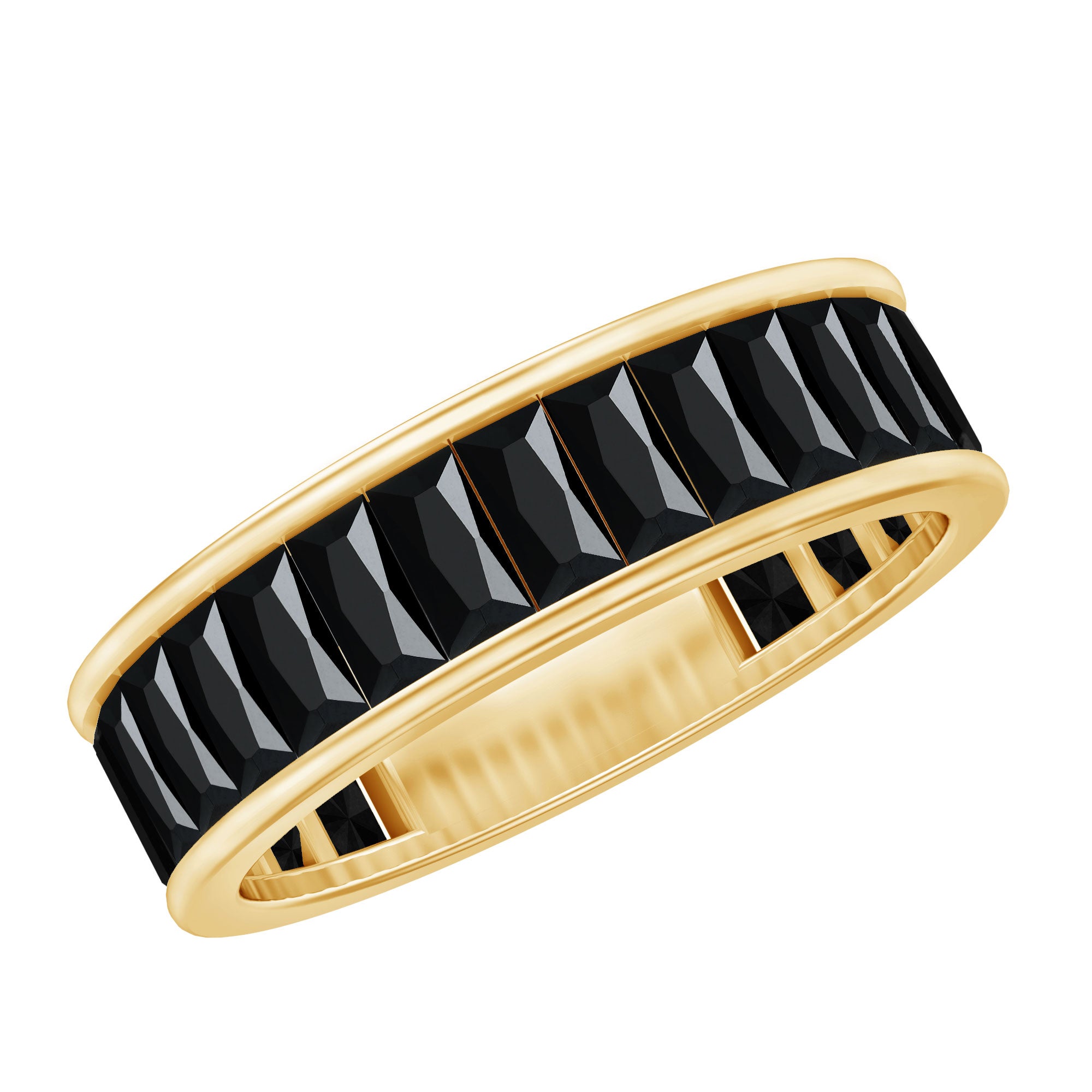 A Modern Classic, this Eternity Ring is paraded by a row of Black Onyx that are typically uniform in size. You’ll find no better style to flaunt your Black Onyx. But don’t take it to mean that it is all aesthetics. This style has been crafted in a way that carries an equally beautiful meaning behind it. The eternity pattern of stones commemorates the kind of love that lasts till the end of time (eternally). That’s why it also makes for an iconic Black Onyx Wedding Ring.