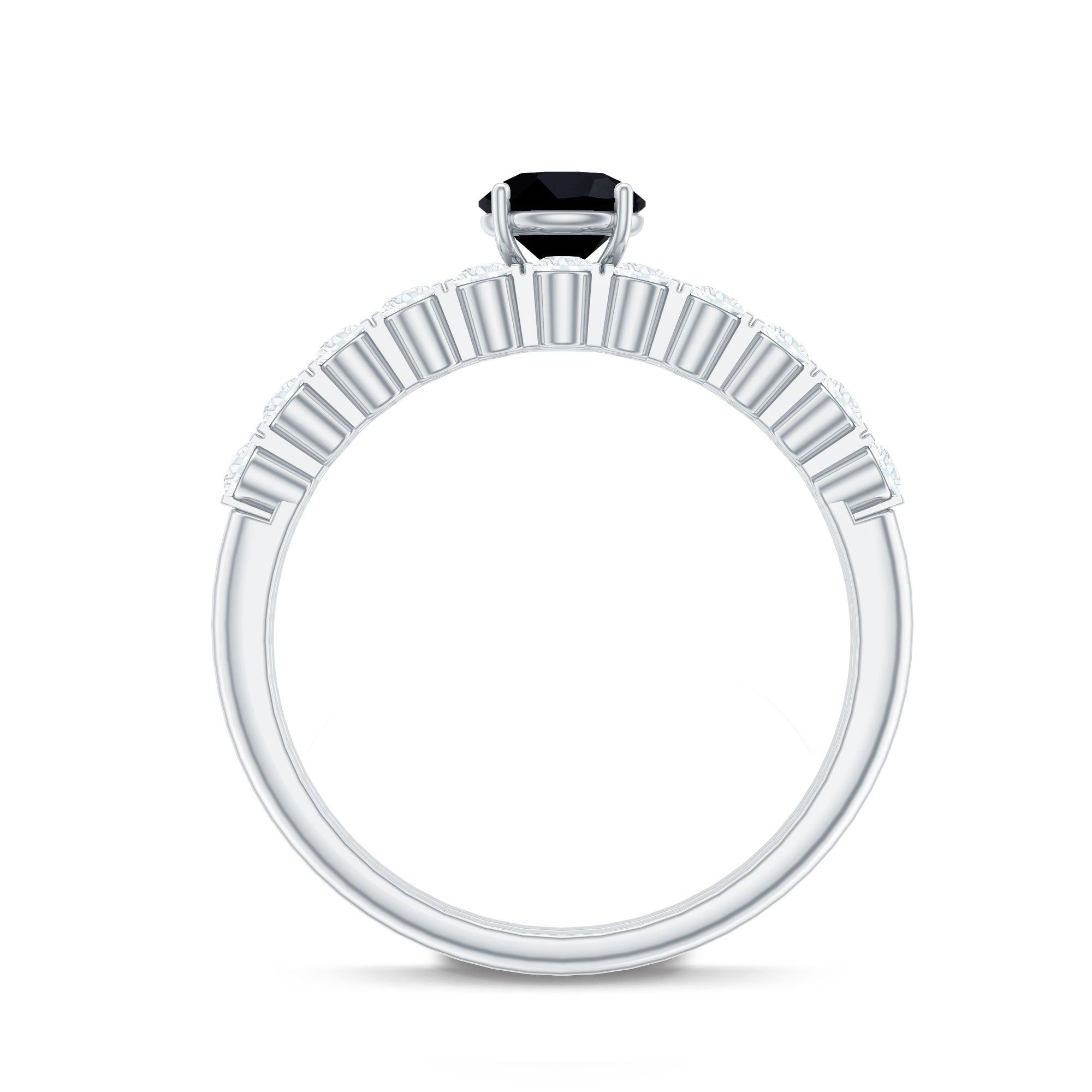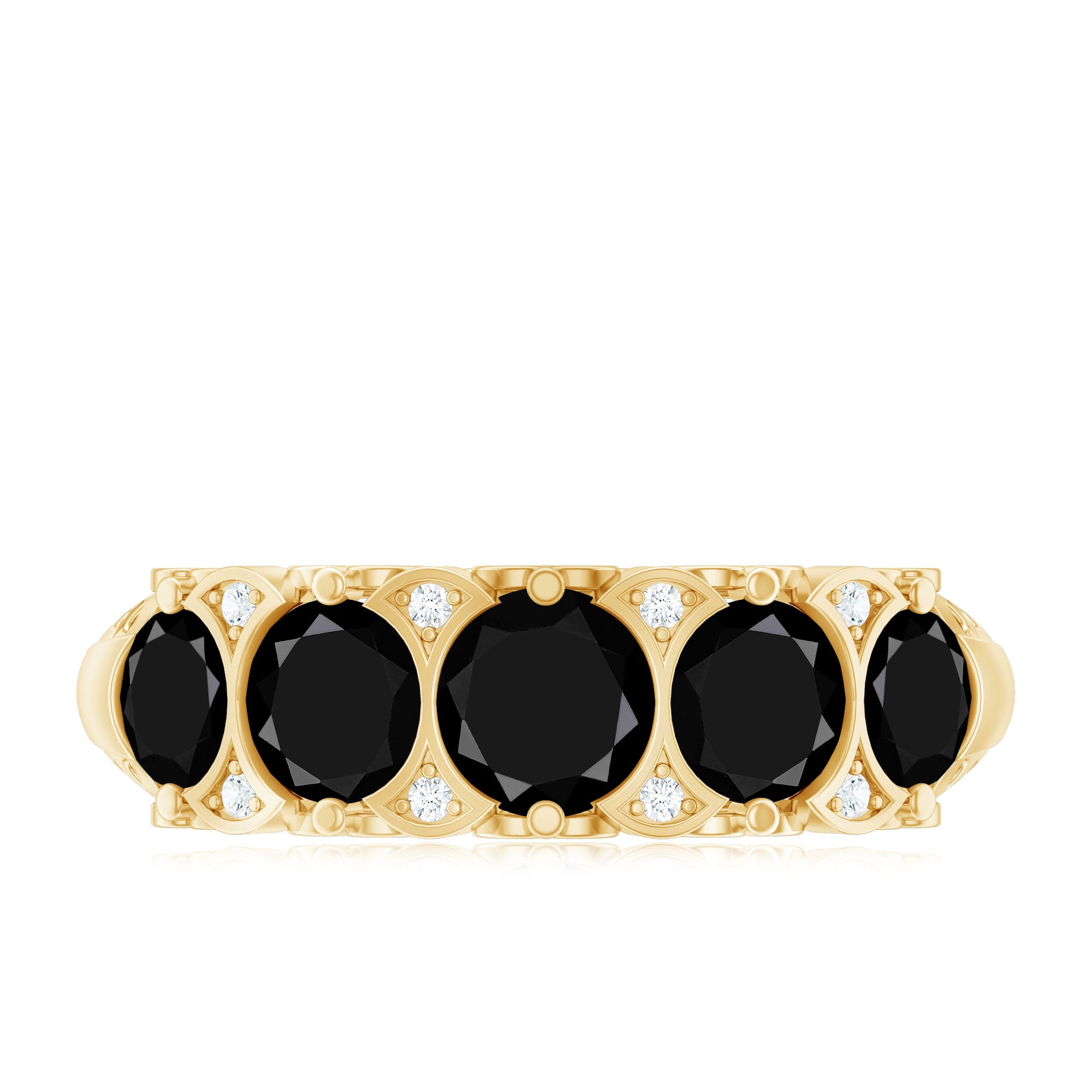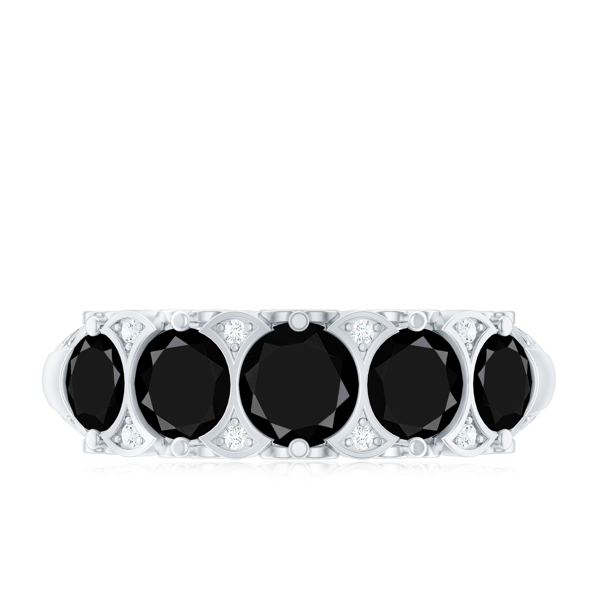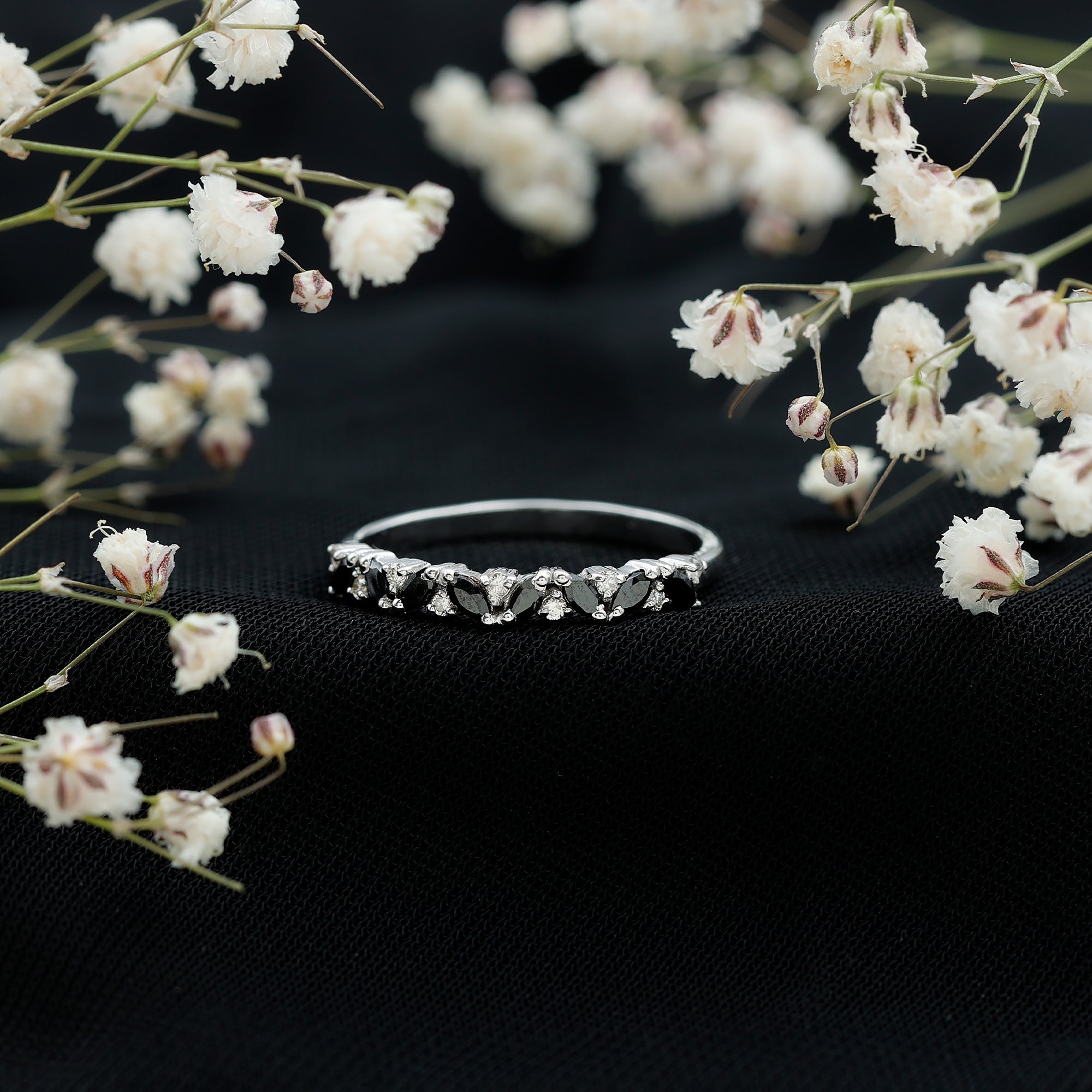 A Modern Classic, this Eternity Ring is paraded by a row of Black Onyx that are typically uniform in size. You’ll find no better style to flaunt your Black Onyx. But don’t take it to mean that it is all aesthetics. This style has been crafted in a way that carries an equally beautiful meaning behind it. The eternity pattern of stones commemorates the kind of love that lasts till the end of time (eternally). That’s why it also makes for an iconic Black Onyx Wedding Ring.