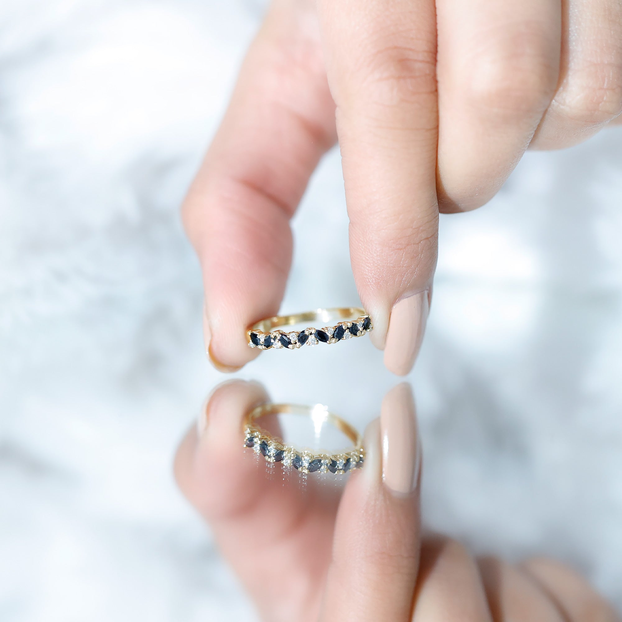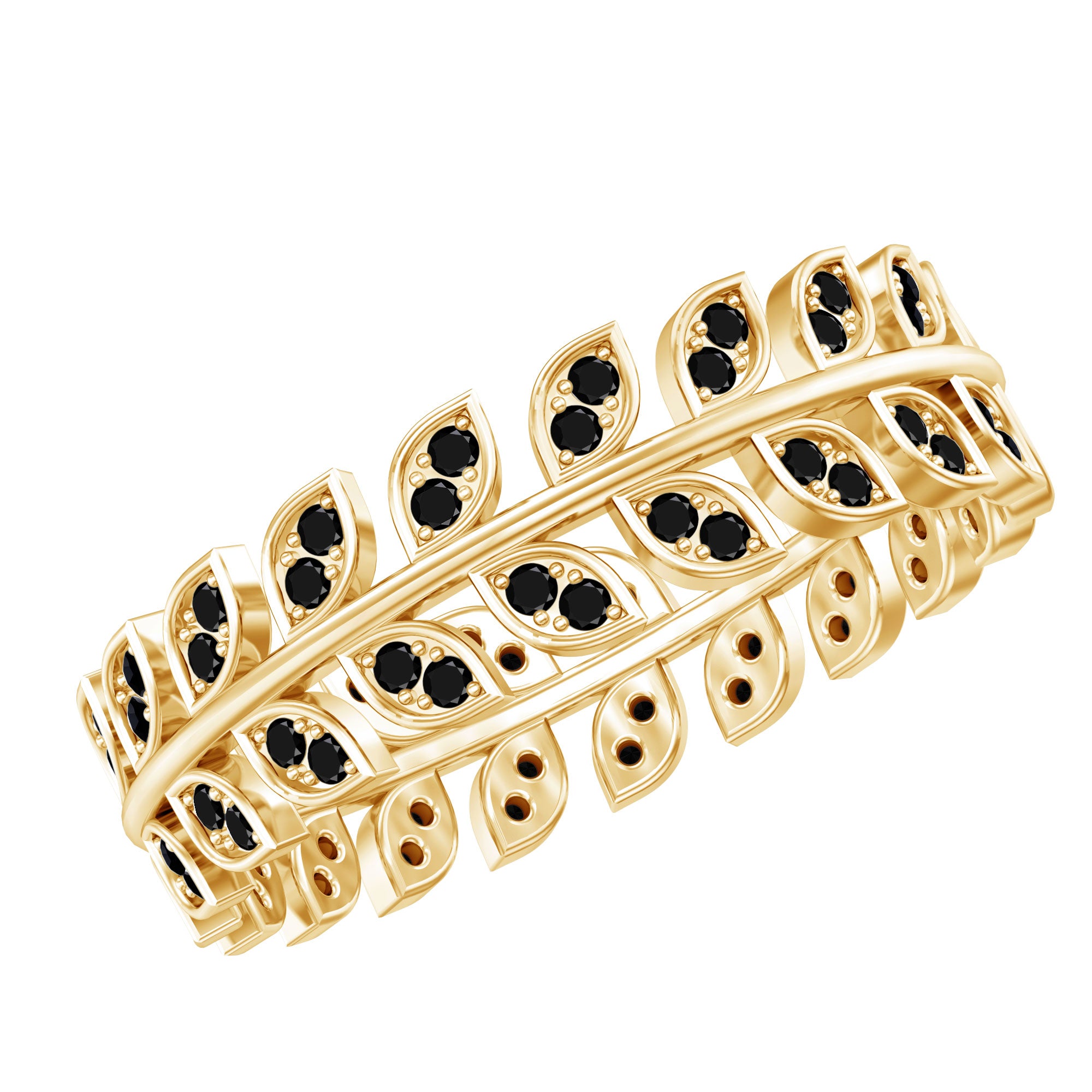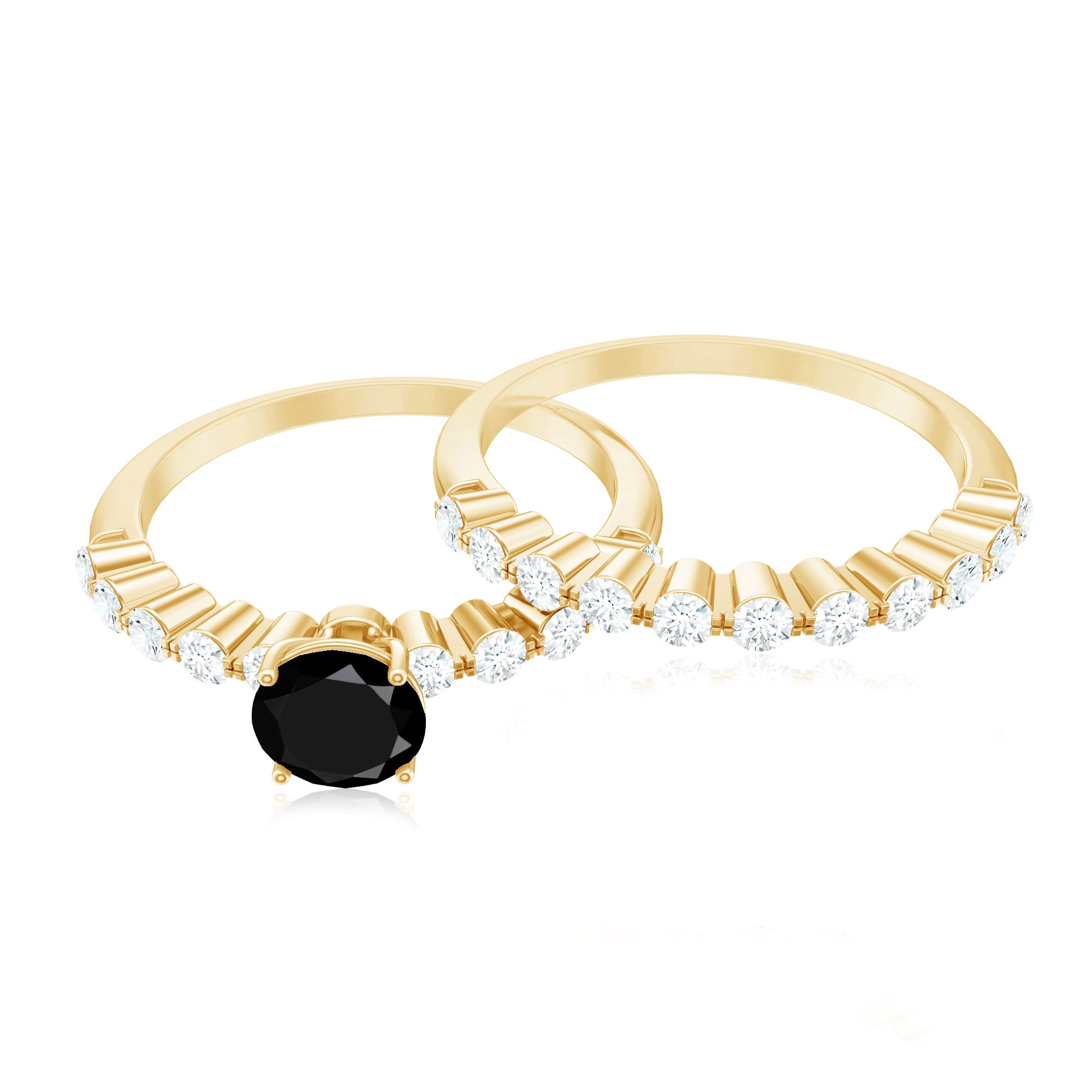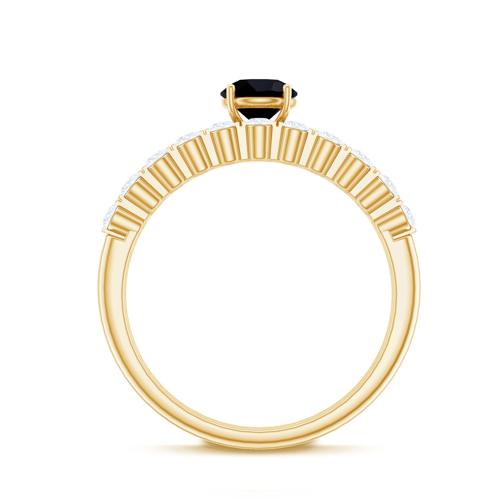 A Modern Classic, this Eternity Ring is paraded by a row of Black Onyx that are typically uniform in size. You’ll find no better style to flaunt your Black Onyx. But don’t take it to mean that it is all aesthetics. This style has been crafted in a way that carries an equally beautiful meaning behind it. The eternity pattern of stones commemorates the kind of love that lasts till the end of time (eternally). That’s why it also makes for an iconic Black Onyx Wedding Ring.