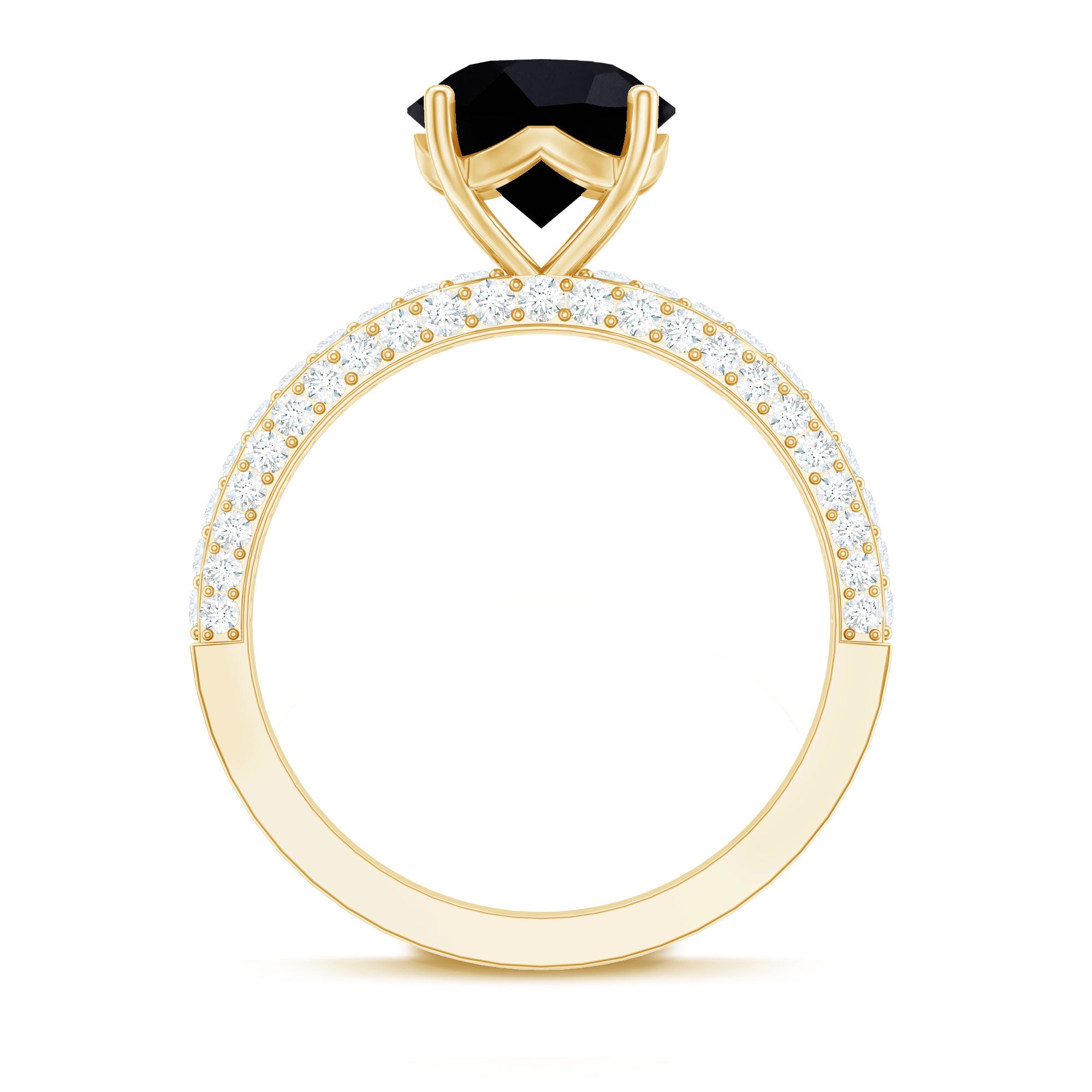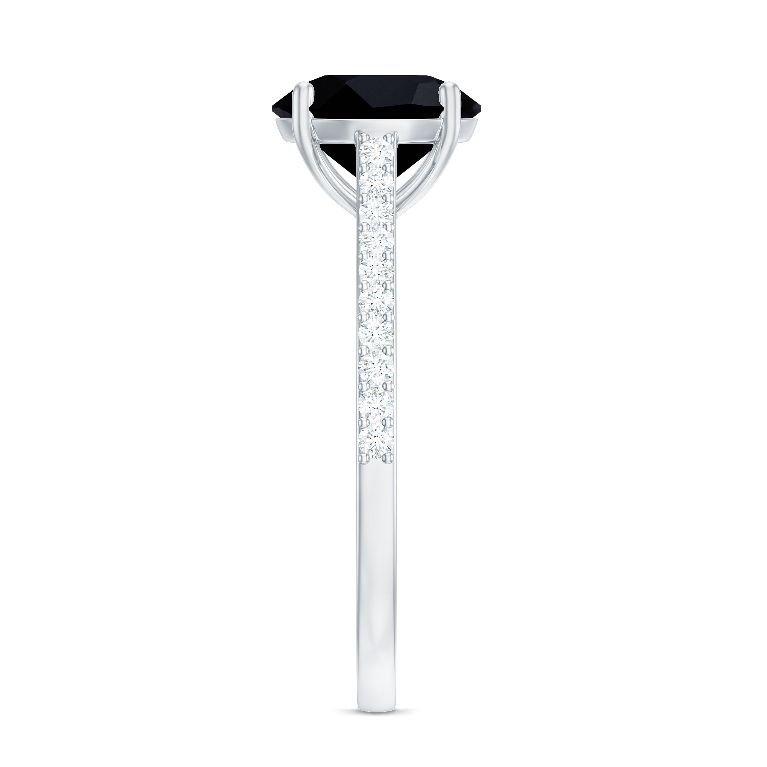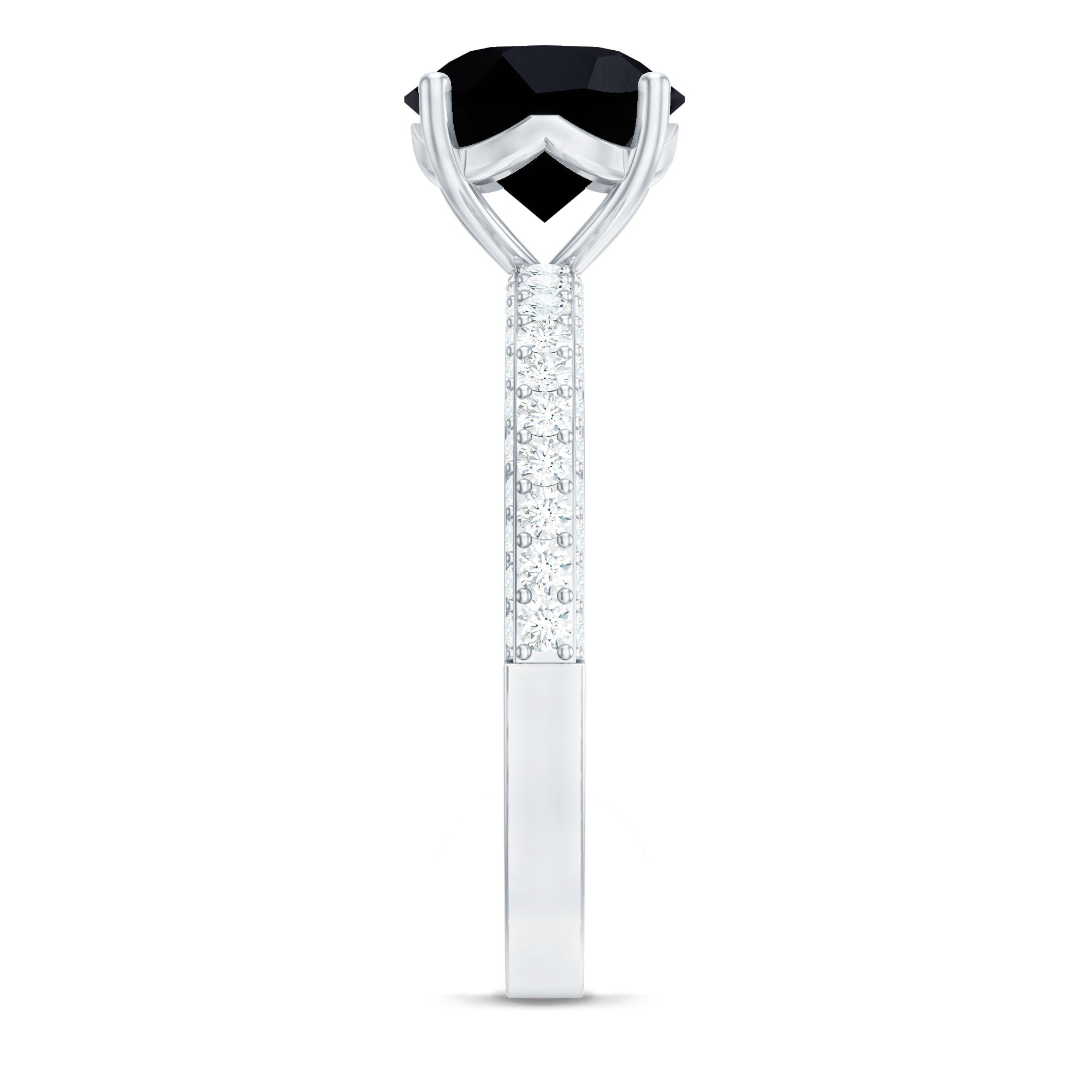 In a Solitaire Style, the Single-Stone of Black Onyx works like the center of all attraction. The enormous size of Black Onyx here, i.e., 6-8 MM, makes all the difference. This style could easily be awarded the most popular and classic Black Onyx Engagement Ring. Right from the conventional round to fancy pear and marquise and vintage Asscher and Emerald, this ring style offers you a world of options.