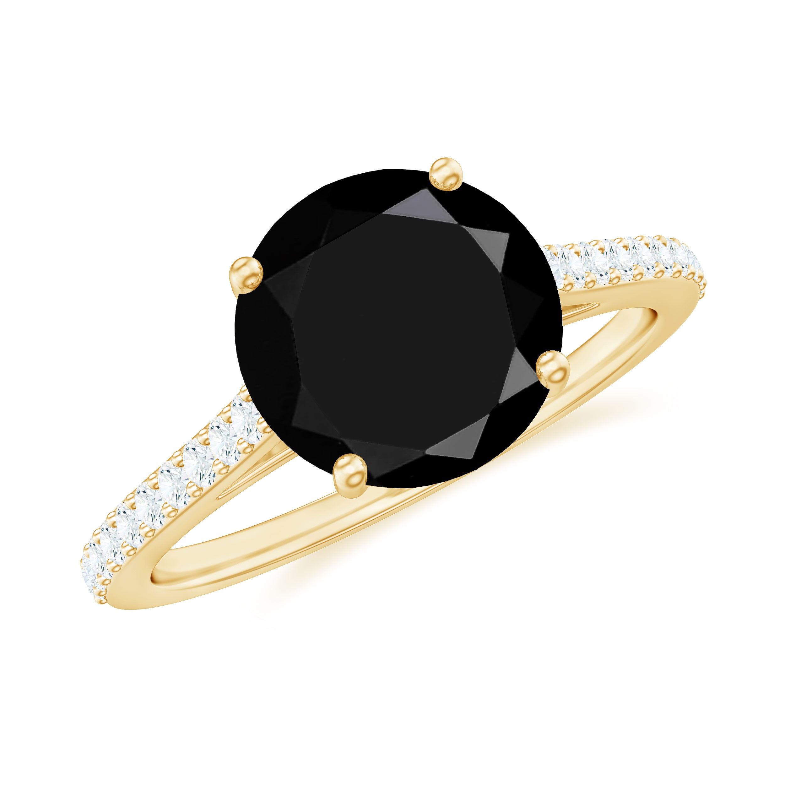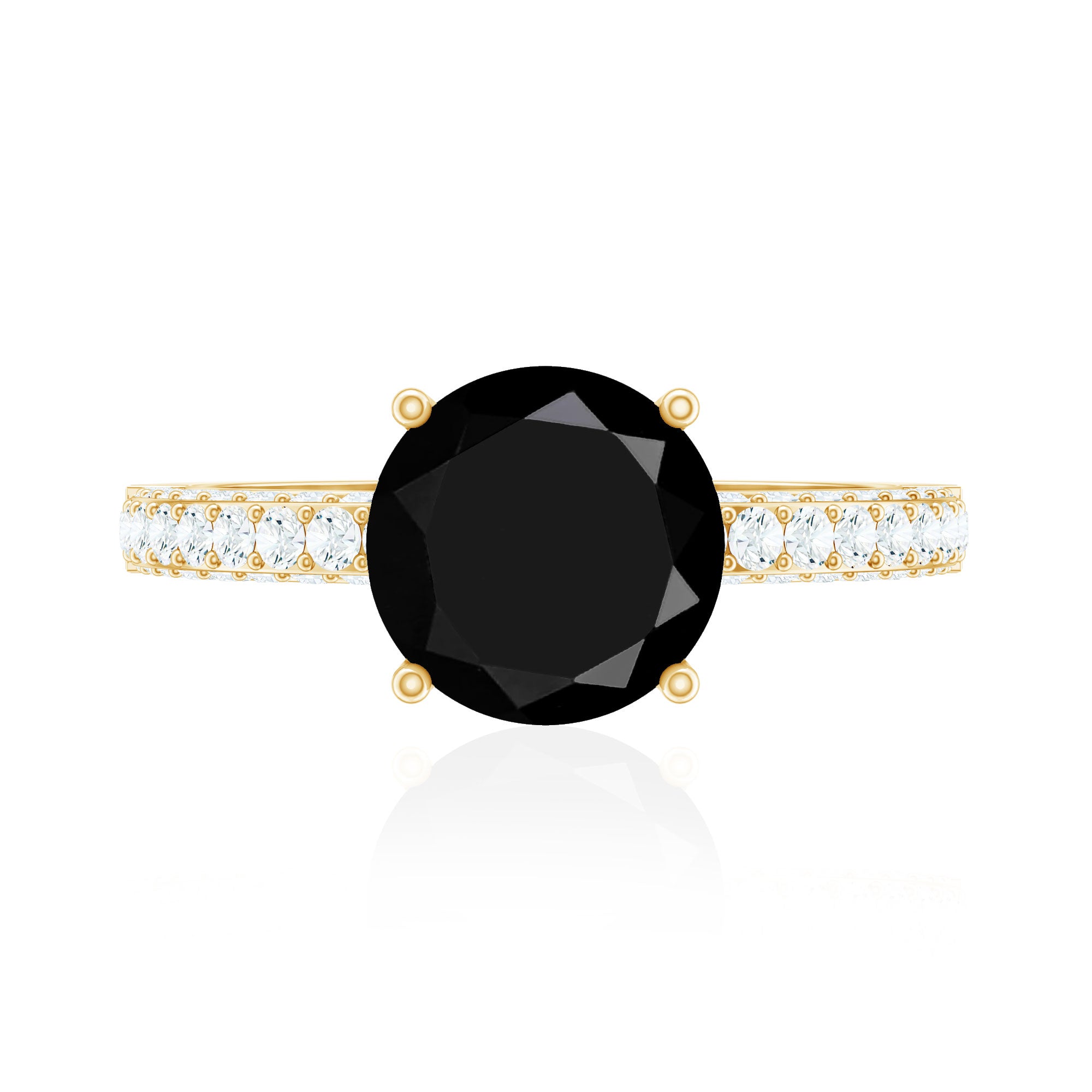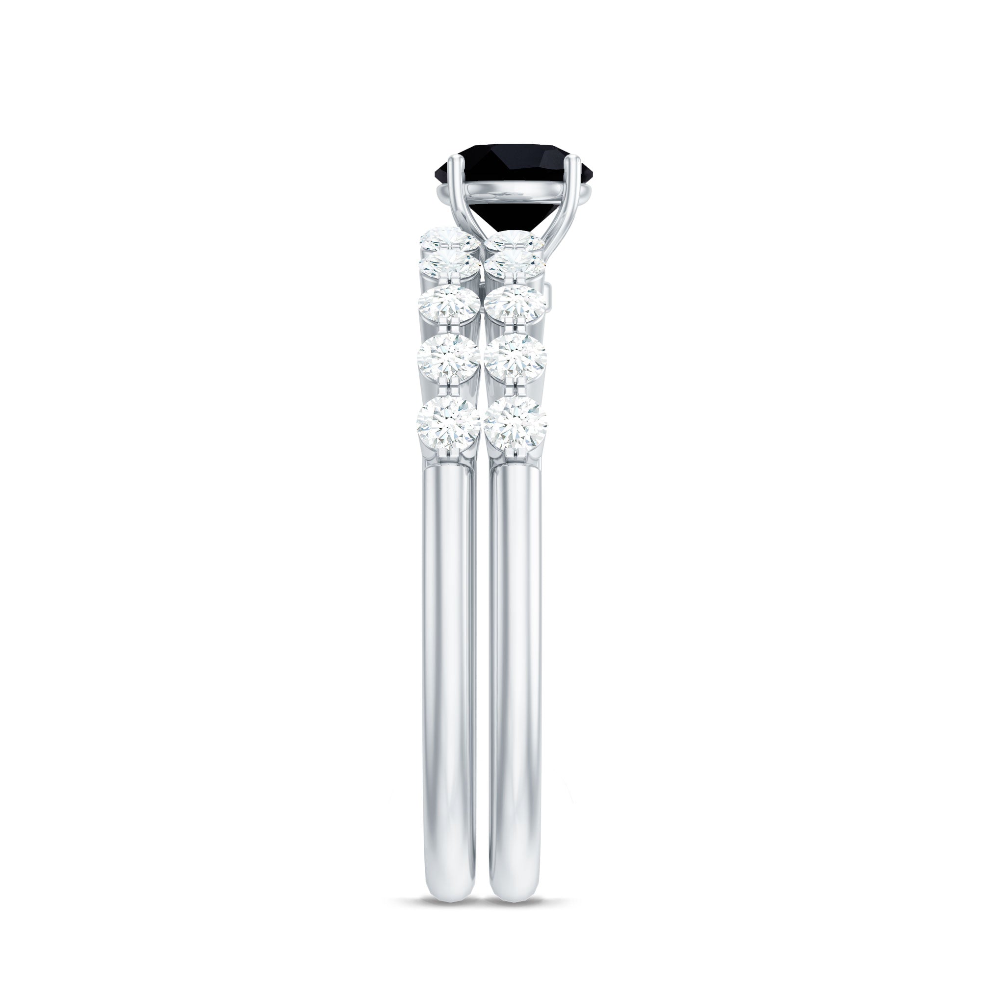 In a Solitaire Style, the Single-Stone of Black Onyx works like the center of all attraction. The enormous size of Black Onyx here, i.e., 6-8 MM, makes all the difference. This style could easily be awarded the most popular and classic Black Onyx Engagement Ring. Right from the conventional round to fancy pear and marquise and vintage Asscher and Emerald, this ring style offers you a world of options.