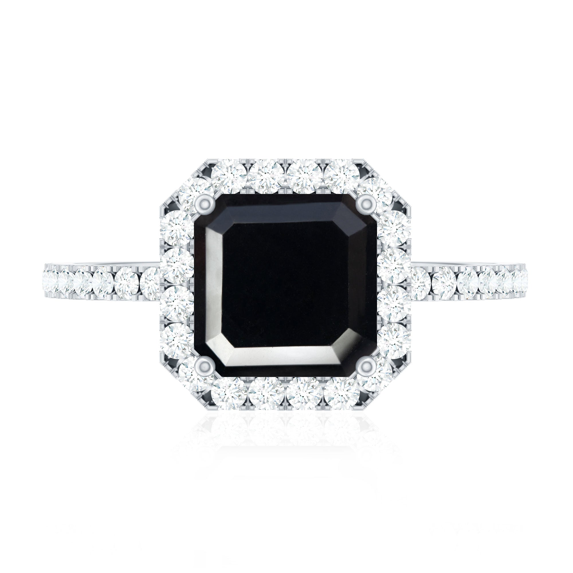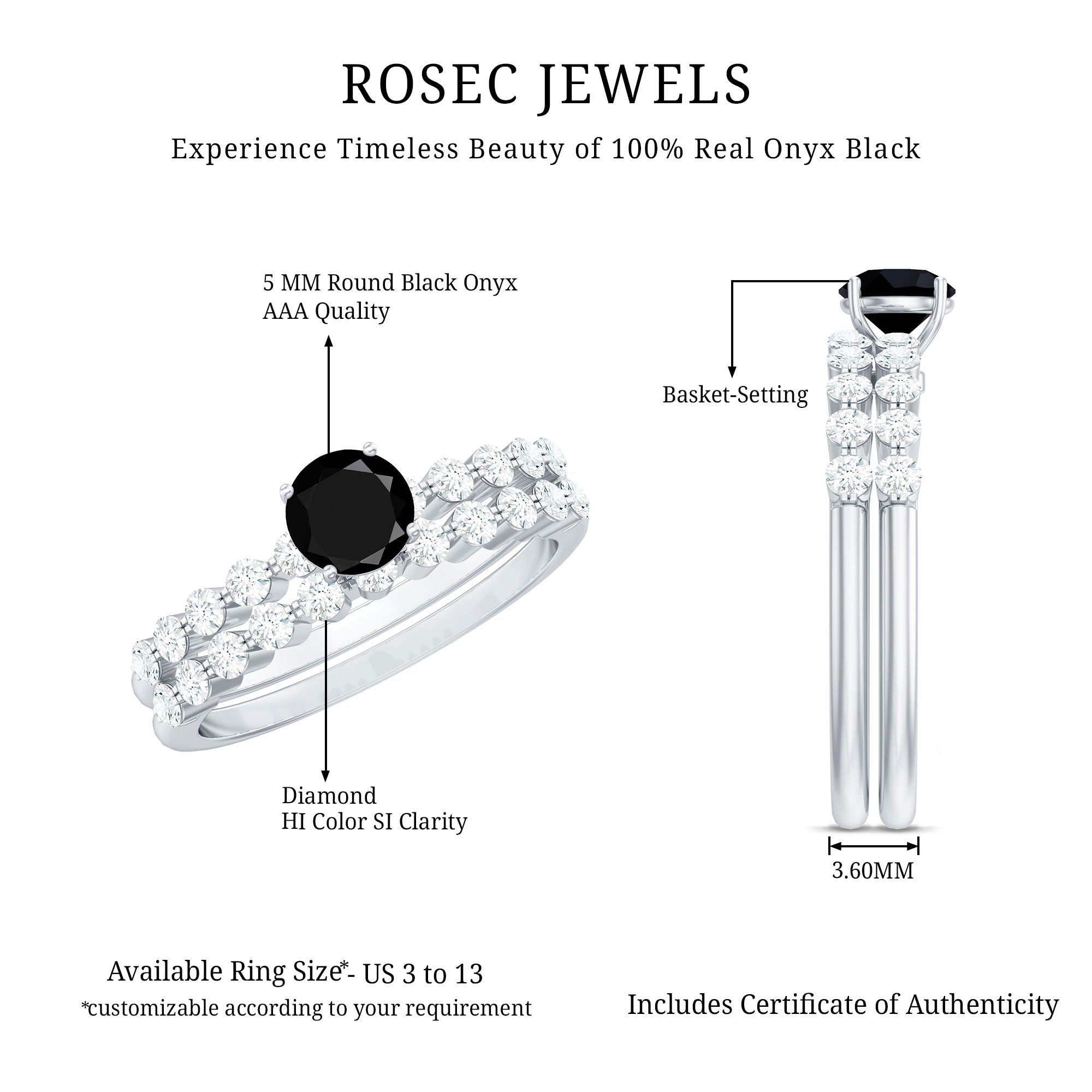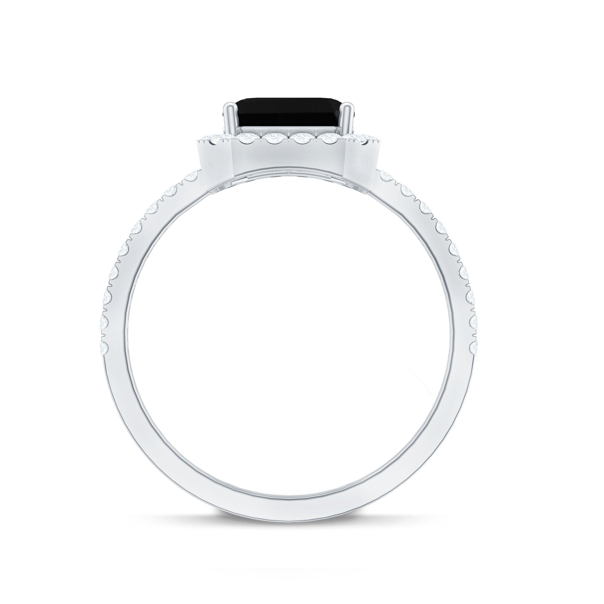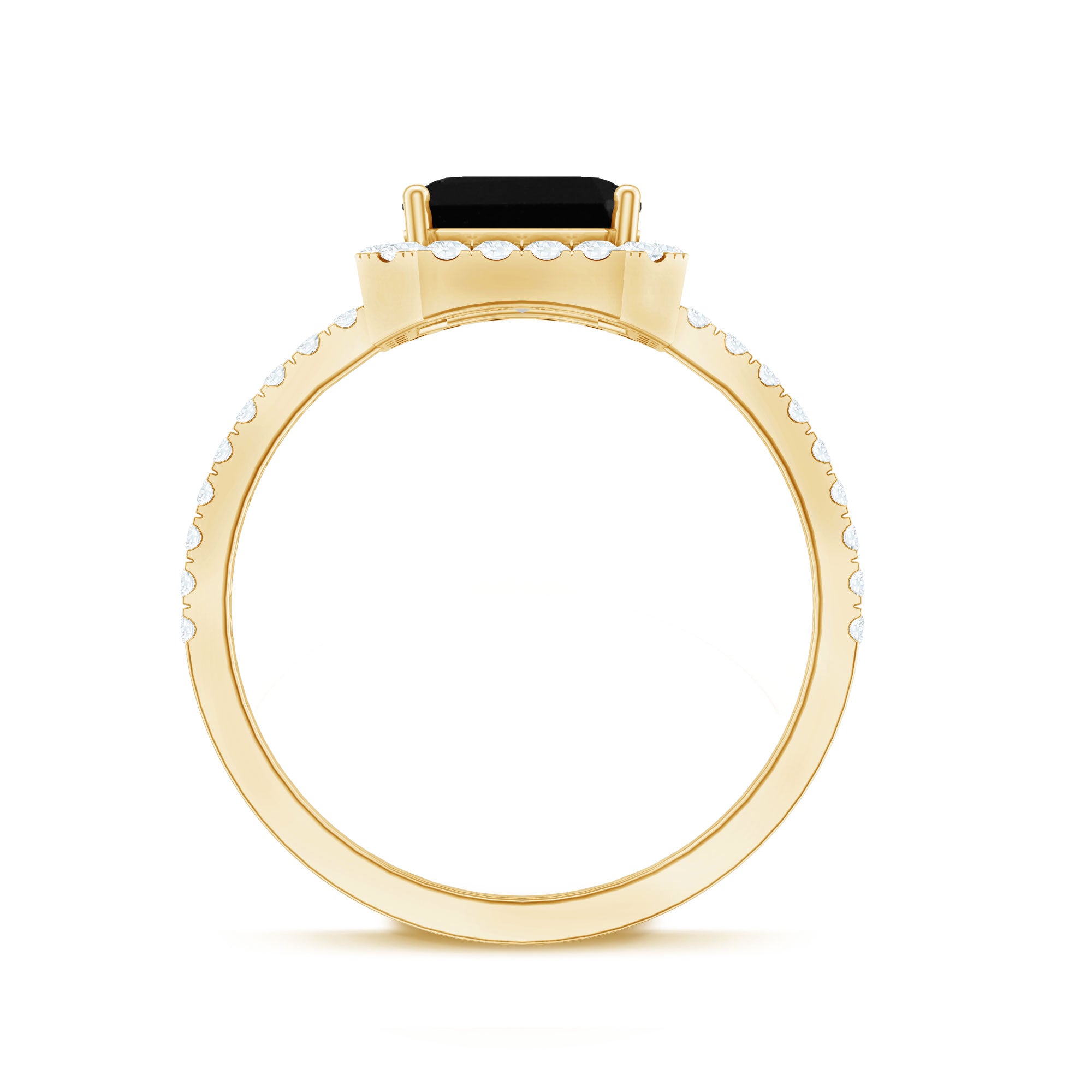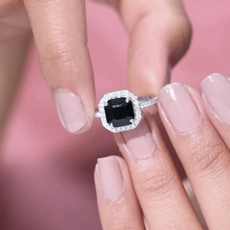 A Halo style encircles the Centerpiece of Black Onyx with a row of Diamonds/Moissanite, offering you a layer full of sparkles. With that, it also brings the monochromatic combination of Black and White to life. A Black Onyx Ring with Diamond Halo is made for the ones who like more character and definition in their ring. Moreover, it makes your Onyx look bigger (while saving you the extra bucks, of course).