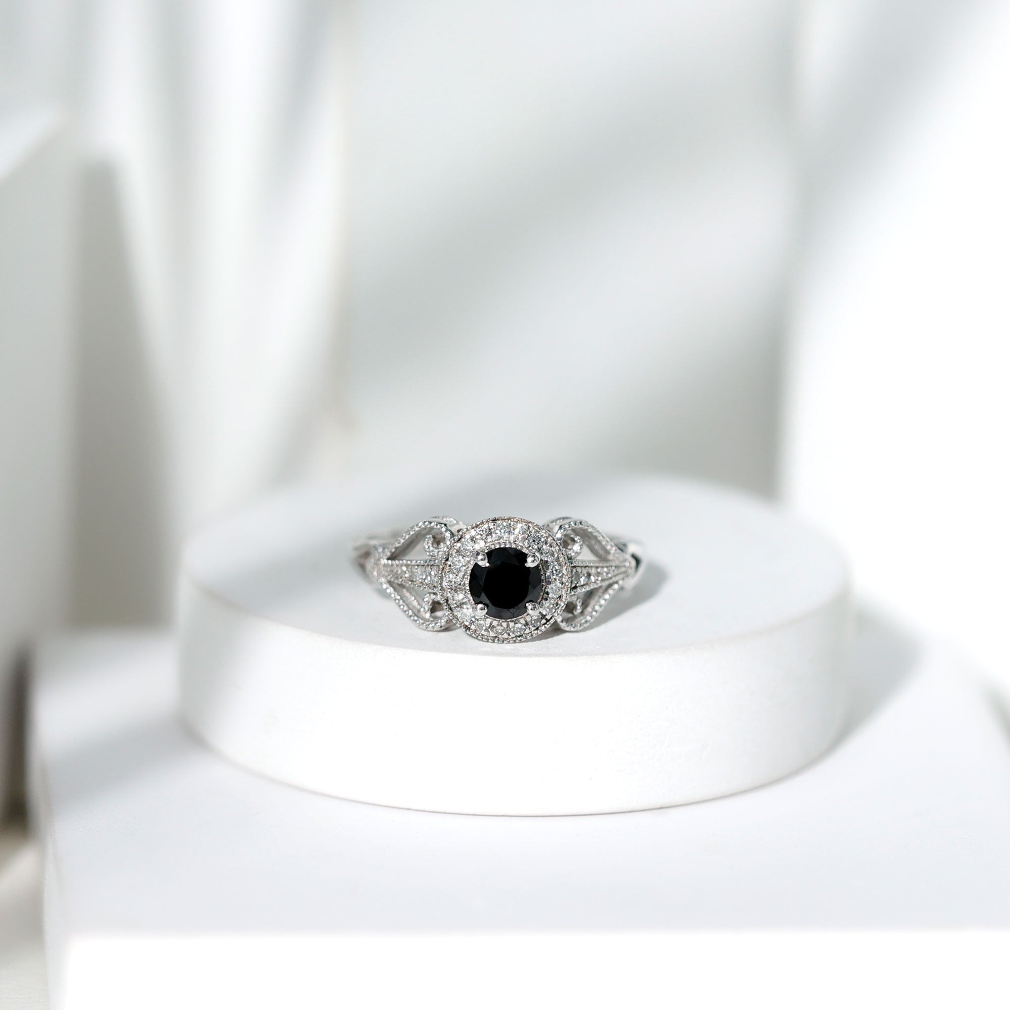 Black spinel engagement ring are often associated with power, charisma and stability.