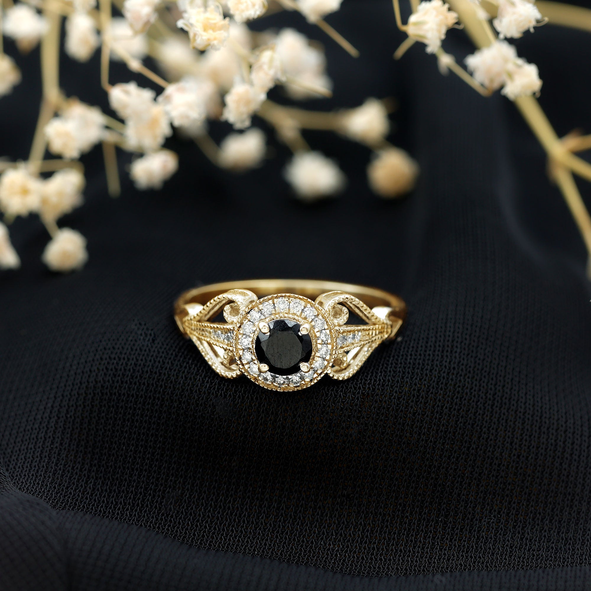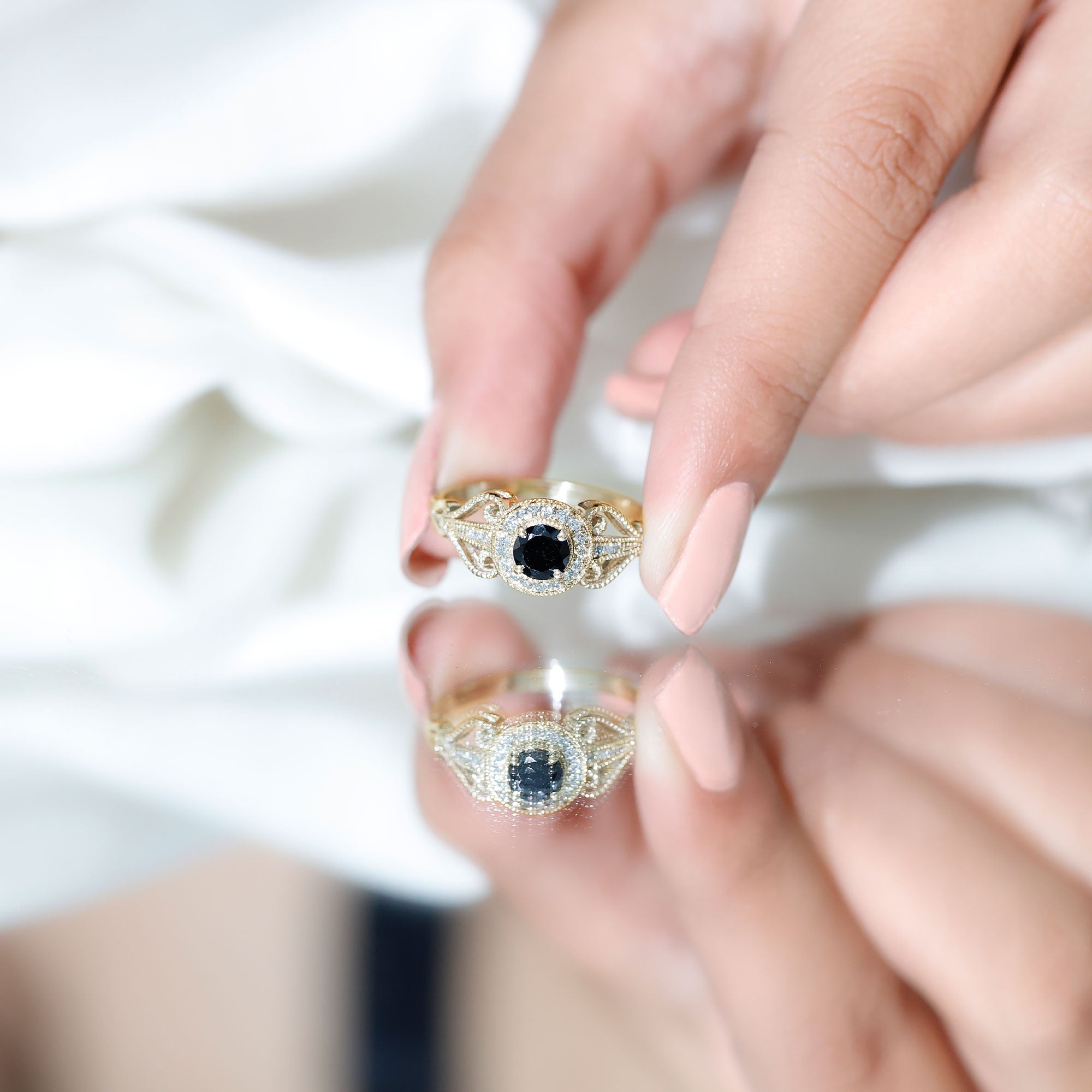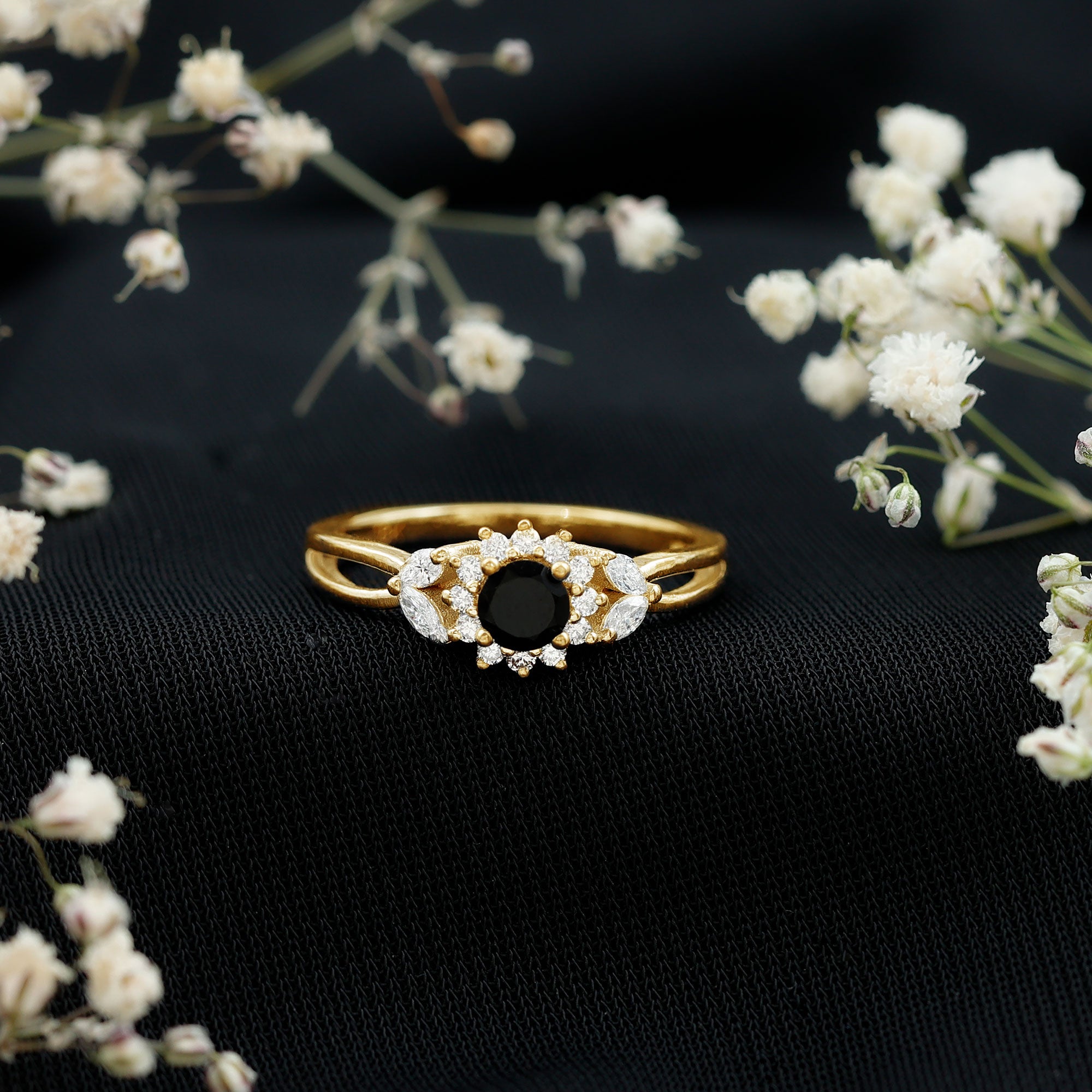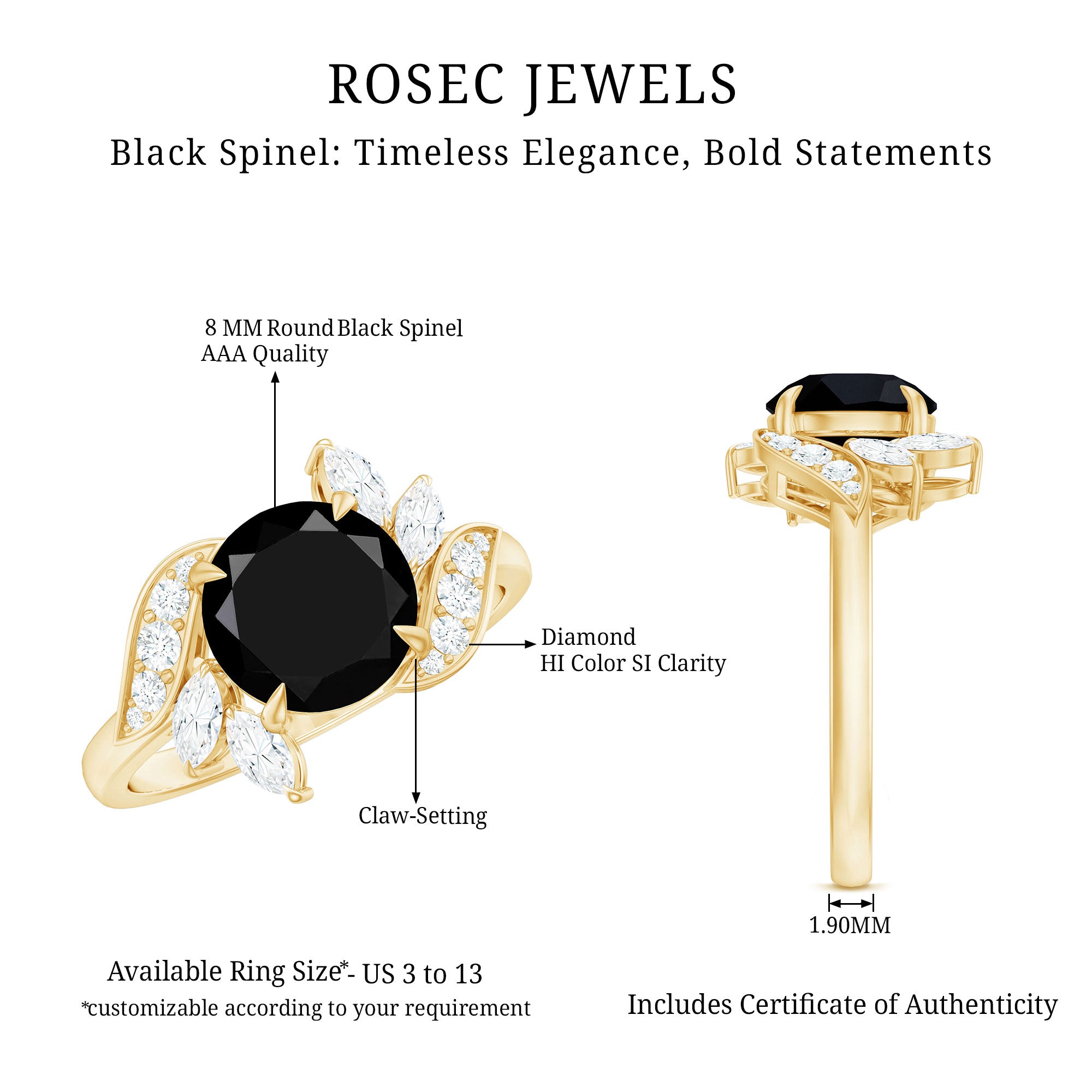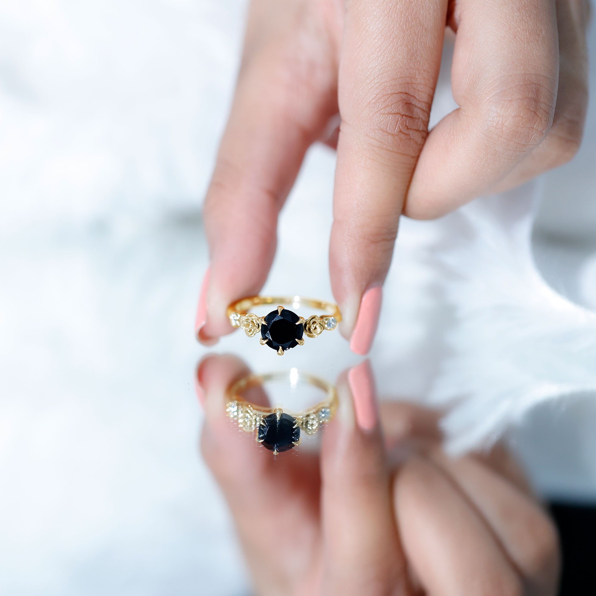 Radiating with glamour, our black spinel engagement rings come in spectacular designs when combined with variety of black spinel shapes, metal embellishments and gemstone settings. Choose from our alluring collection of black spinel solitaire ring, cocktail rings and vintage rings for engagement.