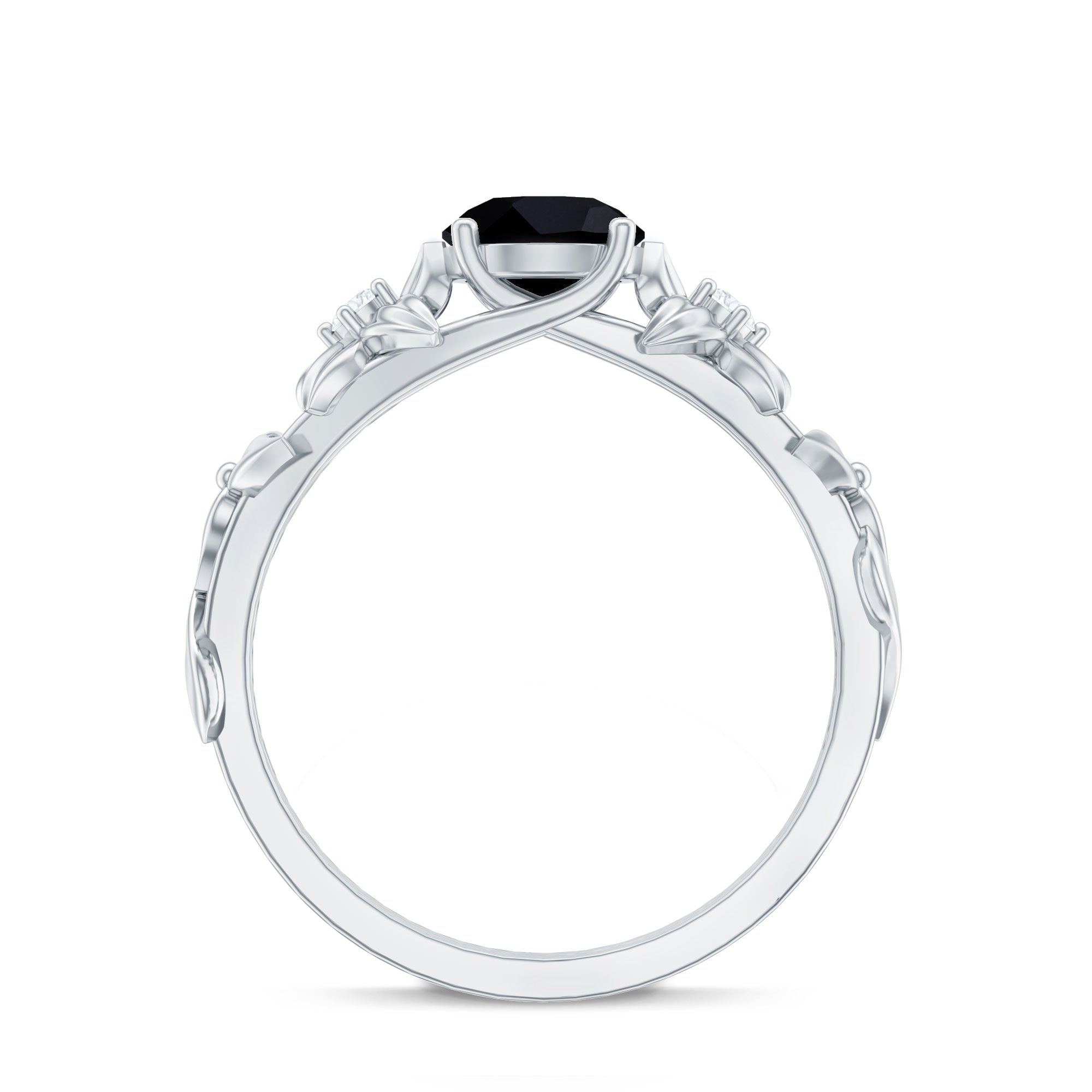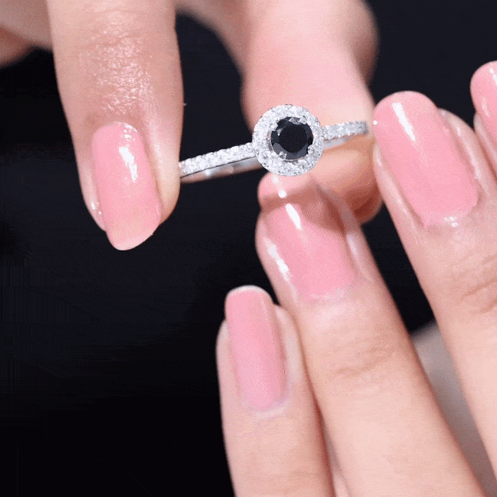 Lending an interesting visual appeal to the Black Spinel Solitaire Ring, a Halo encircles the Black Spinel with a parade of diamond/moissanite. The best part about a Halo is that it rewards more personality as well as an illusion of a larger-looking size to your Black Spinel. So, it is a unique blend of classic and flashy. That makes it another popular choice of the Black Spinel Engagement Ring.