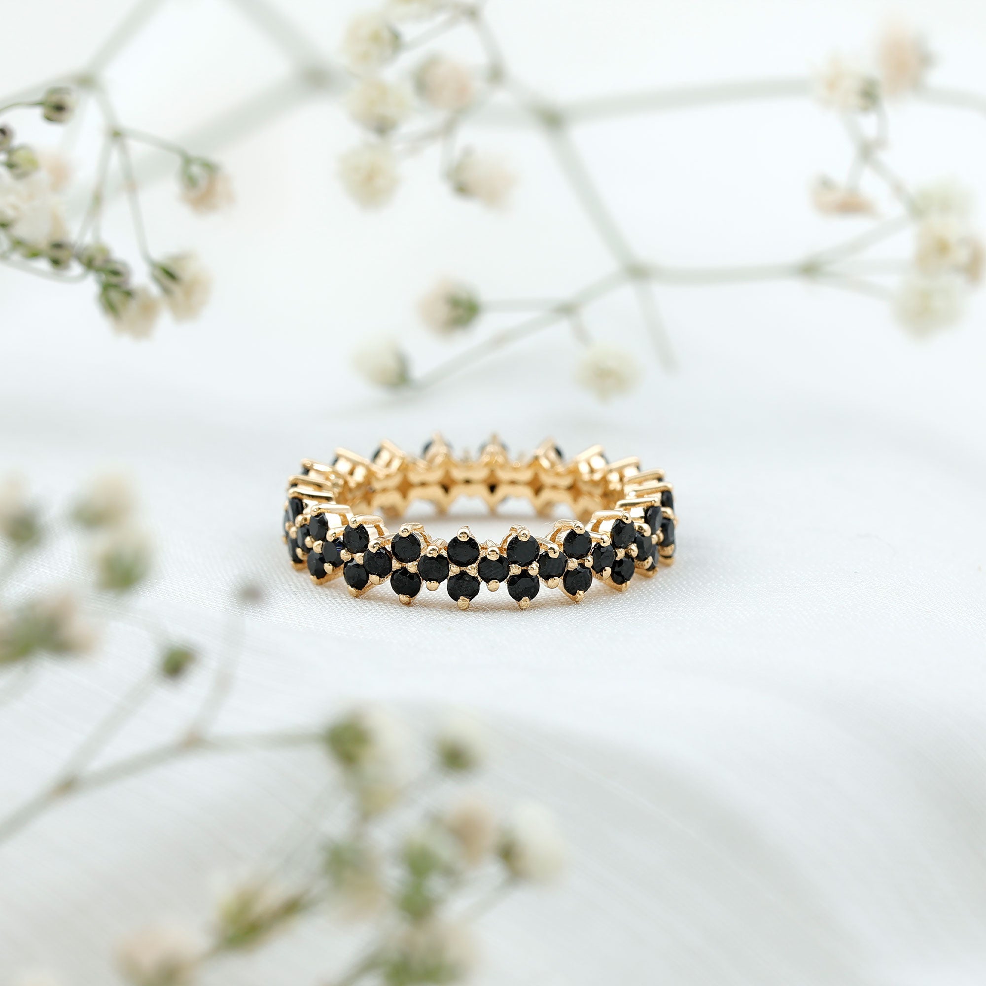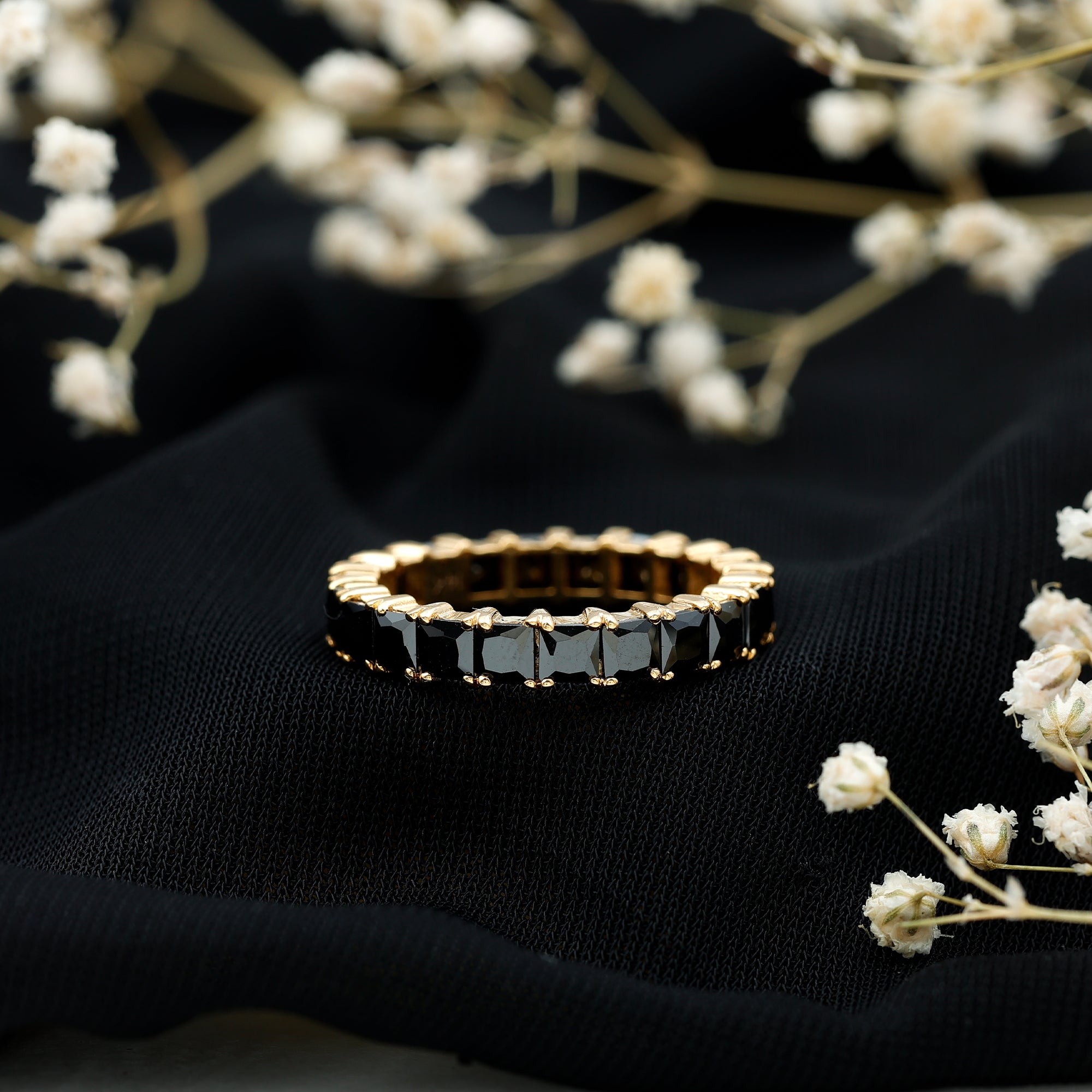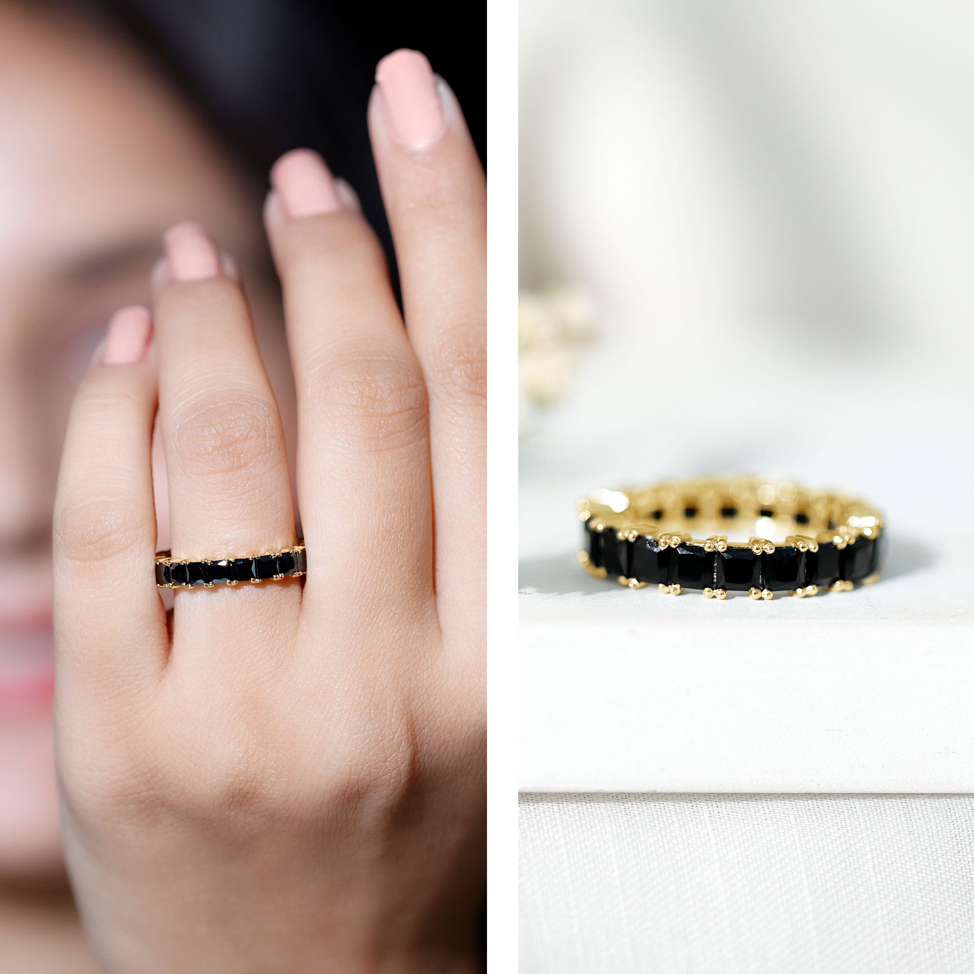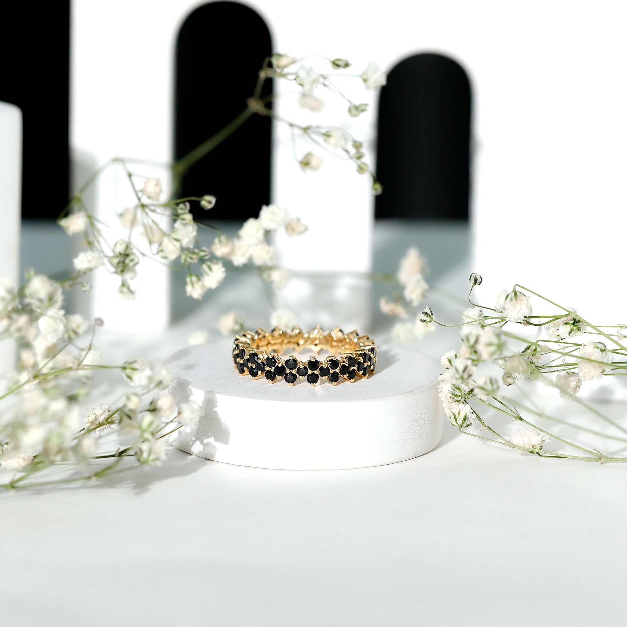 A Black Spinel Eternity Ring is encrusted with a row of identically-sized Black Spinel that just like the name suggests, has no start or end. So, if you can’t get enough of the bold black pop of Spinel, this ring could be the one for you. This Black Spinel Ring isn’t all aesthetics but also holds a much deeper meaning. It resonates with the kind of love that is meant to last a lifetime, i.e, eternal (which is also what makes it a highly treasured Black Spinel Wedding Ring).