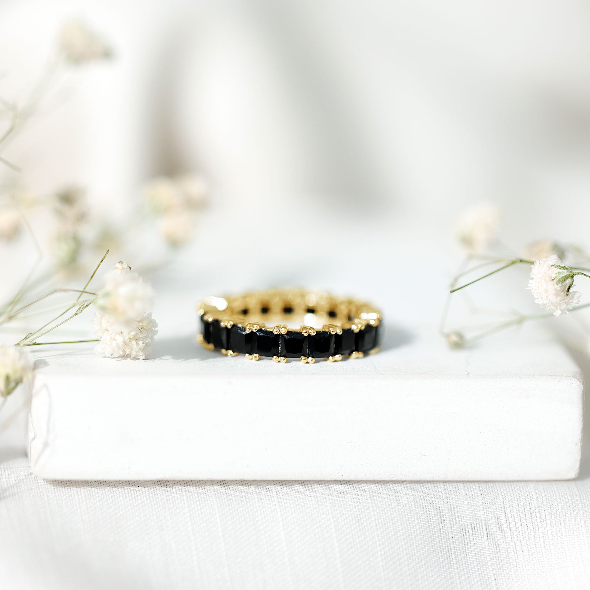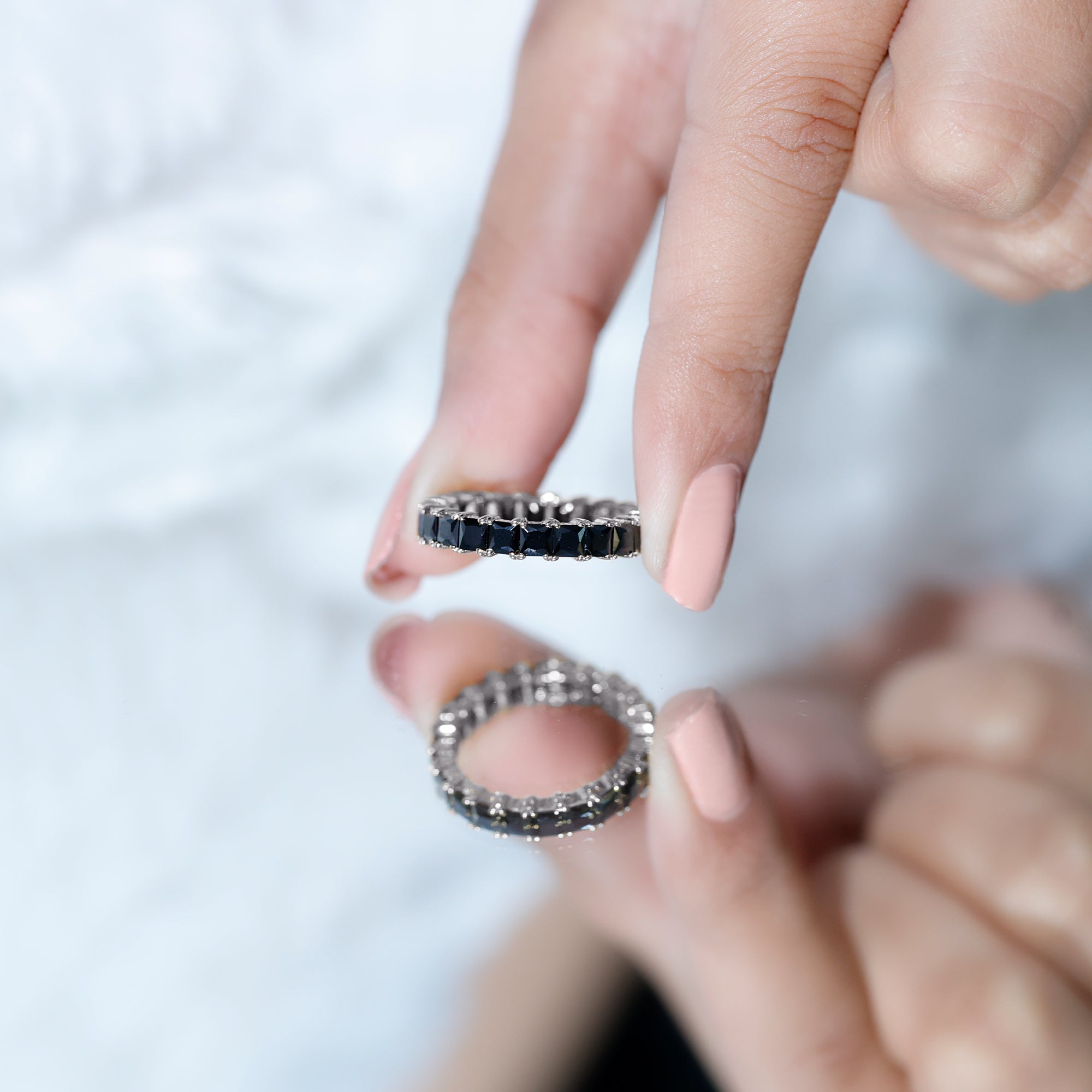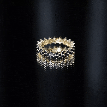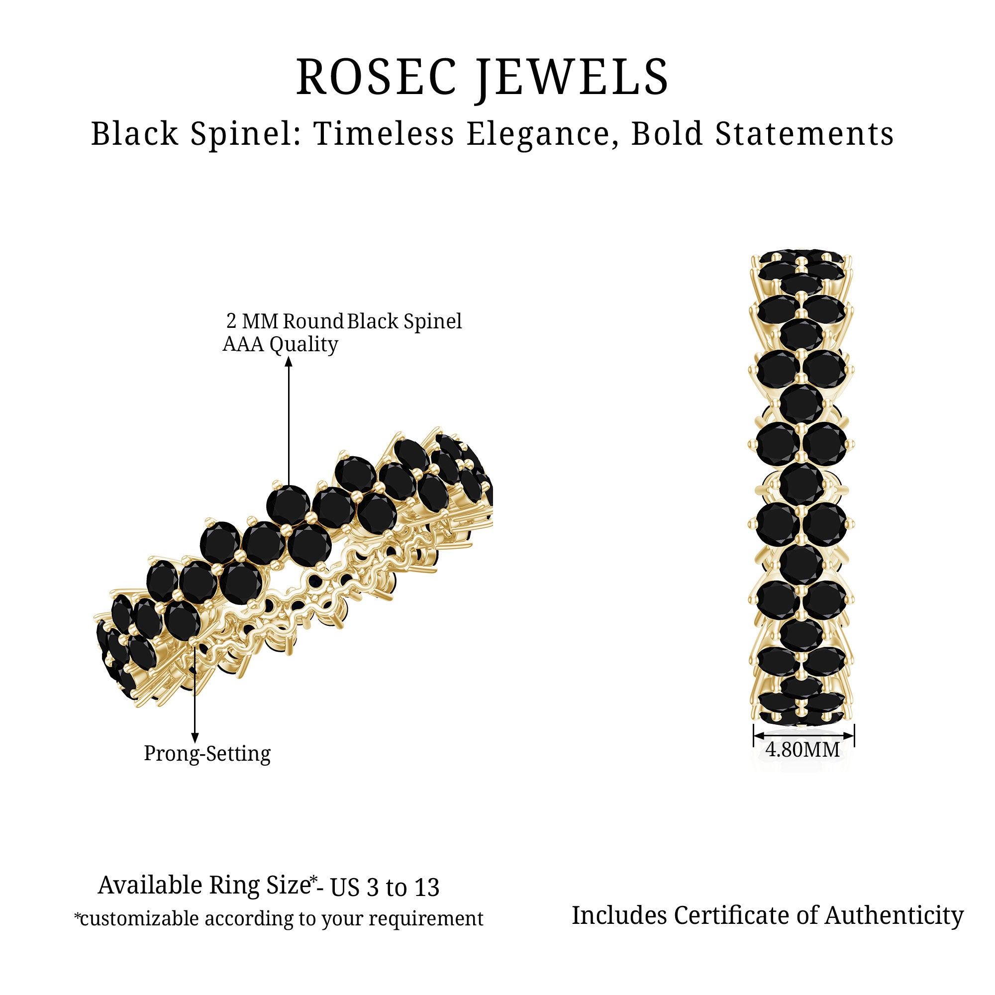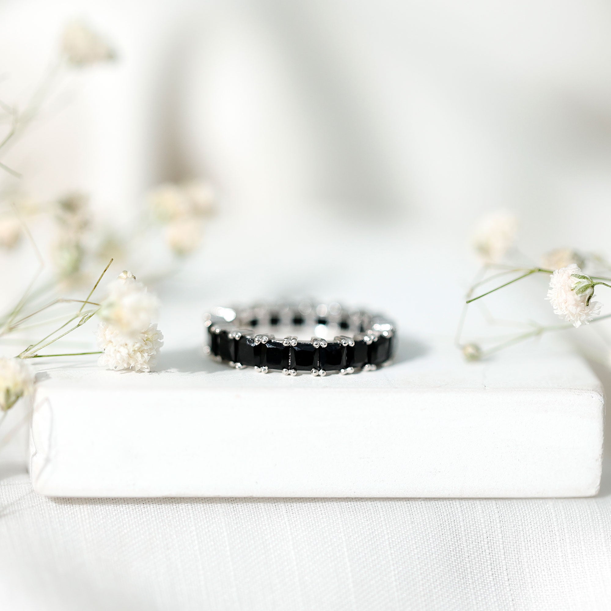 A Black Spinel Eternity Ring is encrusted with a row of identically-sized Black Spinel that just like the name suggests, has no start or end. So, if you can’t get enough of the bold black pop of Spinel, this ring could be the one for you. This Black Spinel Ring isn’t all aesthetics but also holds a much deeper meaning. It resonates with the kind of love that is meant to last a lifetime, i.e, eternal (which is also what makes it a highly treasured Black Spinel Wedding Ring).