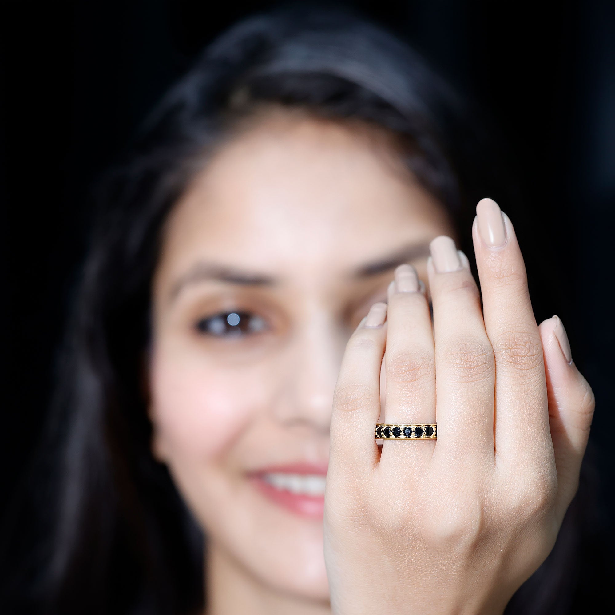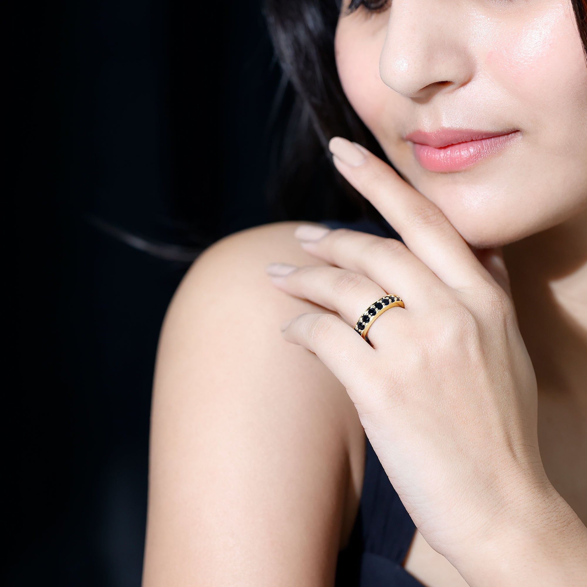 A Black Spinel Eternity Ring is encrusted with a row of identically-sized Black Spinel that just like the name suggests, has no start or end. So, if you can’t get enough of the bold black pop of Spinel, this ring could be the one for you. This Black Spinel Ring isn’t all aesthetics but also holds a much deeper meaning. It resonates with the kind of love that is meant to last a lifetime, i.e, eternal (which is also what makes it a highly treasured Black Spinel Wedding Ring).