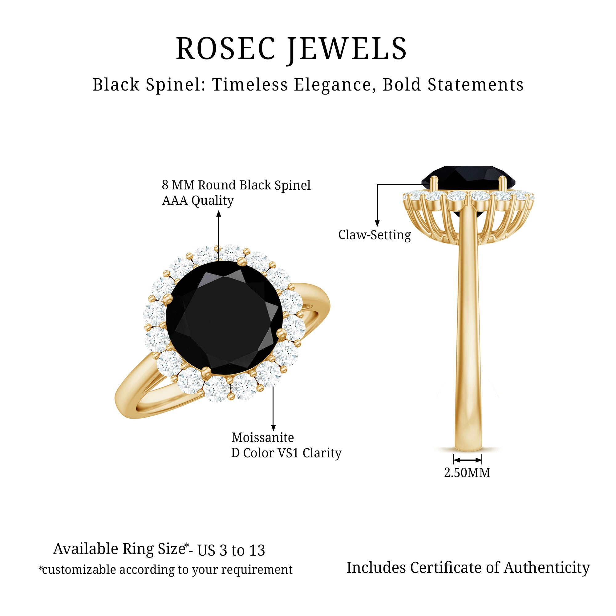 Having said that, let’s get to the most exciting part and find your favorite among the wide pool of trendy Black Spinel Gold Rings that we carry!