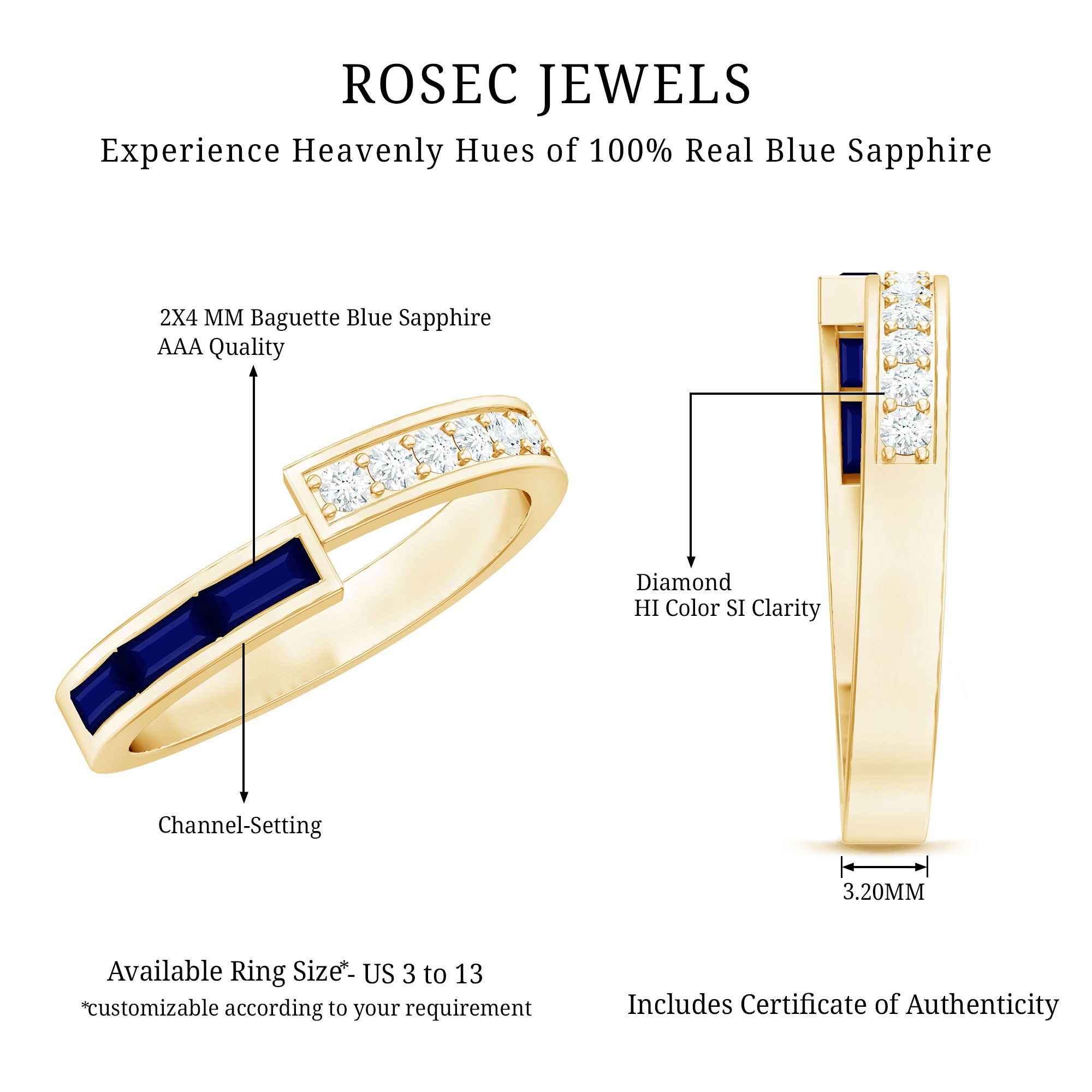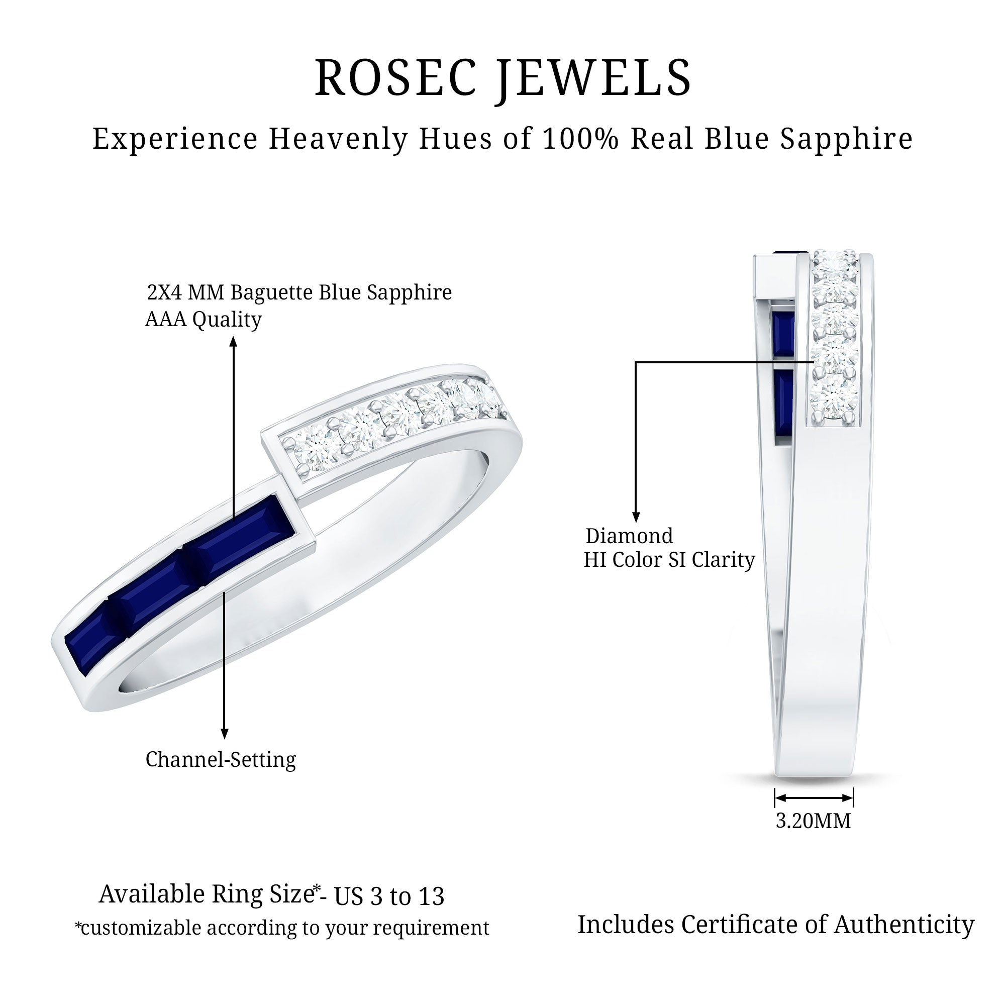 The wedding bands for men with royal blue sapphires and small diamond accents are stunning. The deep blue hues symbolize love and loyalty, an ideal choice for September born individuals. Our blue sapphire wedding ring collection for men is highly durable and sparkles elegantly, making them perfect for special occasions like weddings and engagements. Blue Sapphires have stolen hearts with their regal allure and dazzling hues for centuries. At Rosec Jewels, our skilled craftsmen meticulously ensure the quality of every blue sapphire ring for men by ensuring the four C's of blue sapphire i.e. color, cut, clarity, and carat weight.