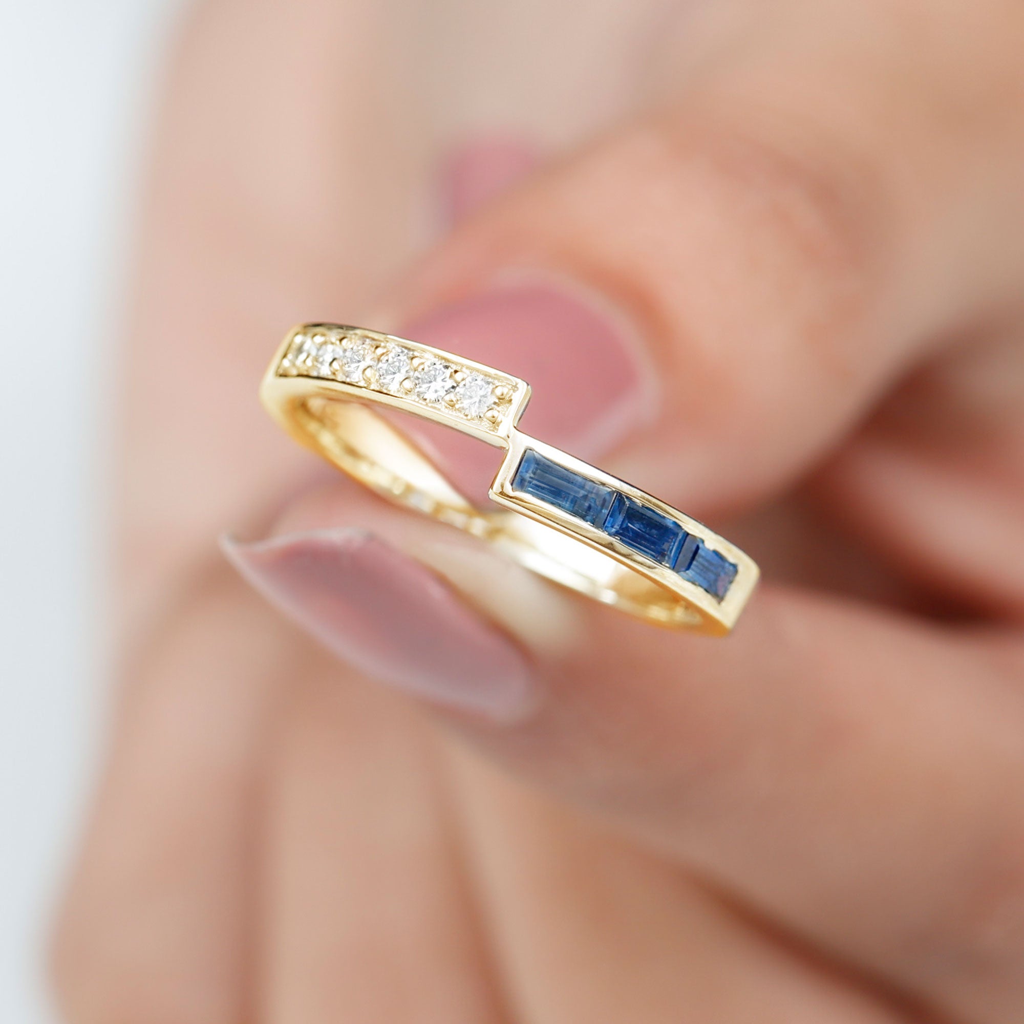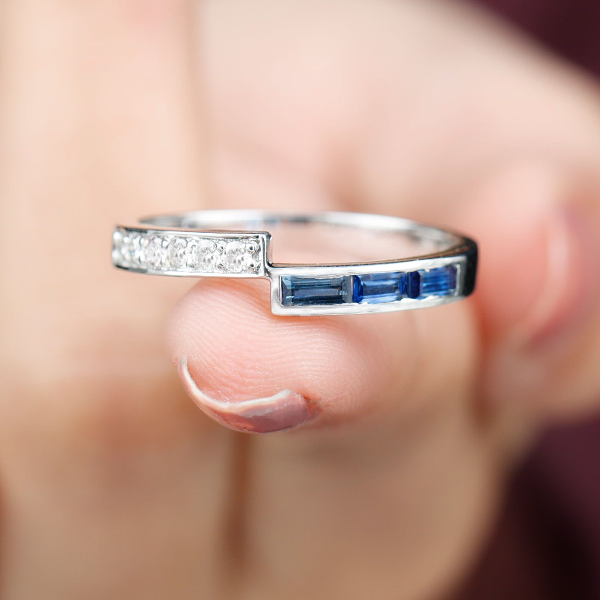 Blue Sapphire Promise Wedding Bands: - Wedding band’s circular shape, beautifully crafted to fit the finger, and also a symbolism of infinity. Its continuous loop has no any beginning or end, serves as a symbol of enduring love between partners. Just as the ring shape knows no bound, its eternal and never-ending. Also Promise rings are referred to as pre-engagement ring, crafted with perfection, our blue sapphire promise wedding bands are the symbol of enduring love and commitment, making them a unique option for grooms. The blue sapphire stones added a luxurious finish to the design, whether adorning as a wedding ring or exchange as a pre-engagement ring. These rings serve as a reminder of cherished moments you shared with your partner.