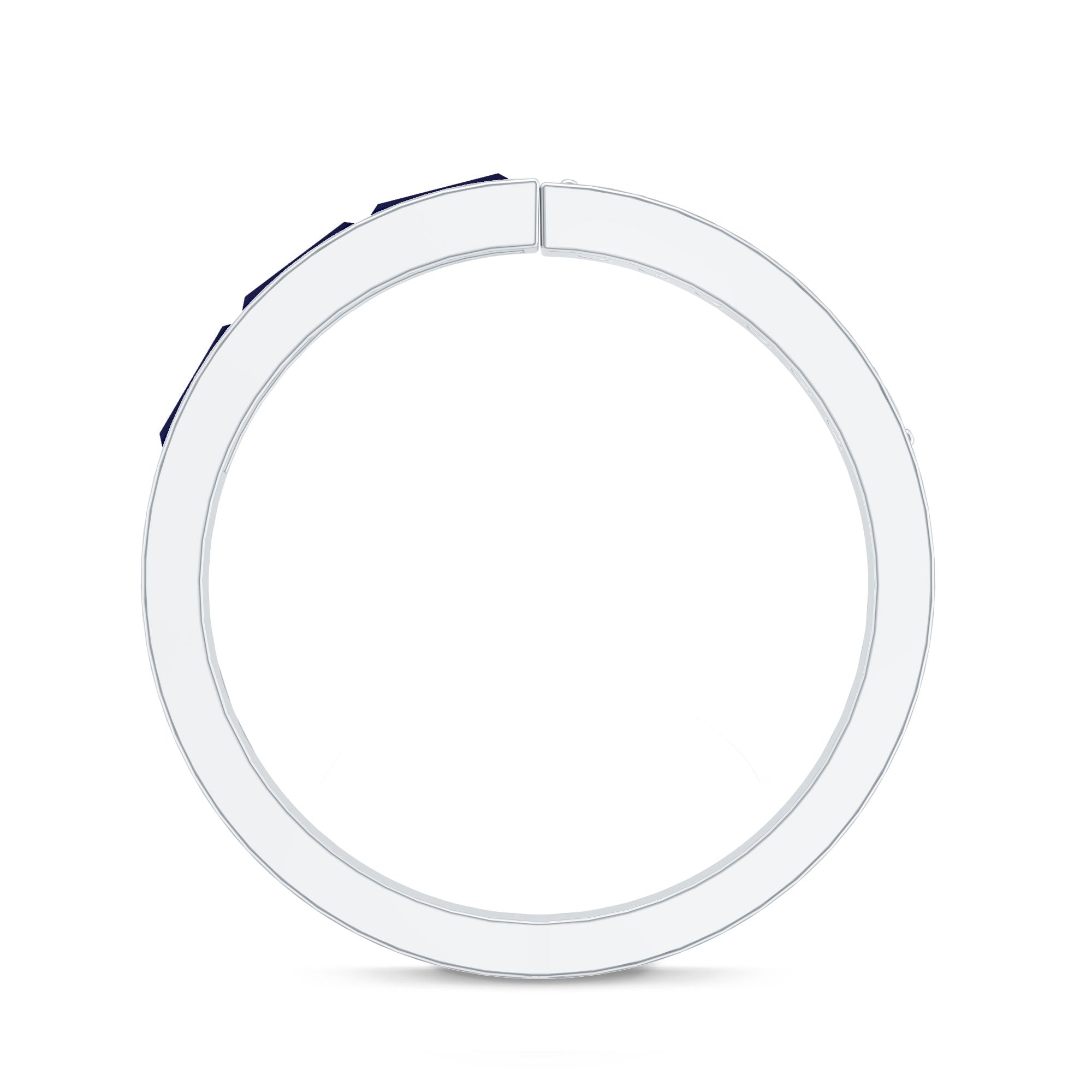 Half Eternity Blue Sapphire Wedding Bands: - A classy and striking choice for men, most of our half eternity wedding bands feature vibrant blue sapphires stone and small diamond stones, and are crafted from precious metals like white gold and yellow gold. Blue sapphire represent the everlasting connection and loyalty between partners. These half eternity blue sapphire bands are ideal for weddings or anniversaries and seamlessly combine contemporary flair with simplicity, hence a meaningful companion for your wedding attire.