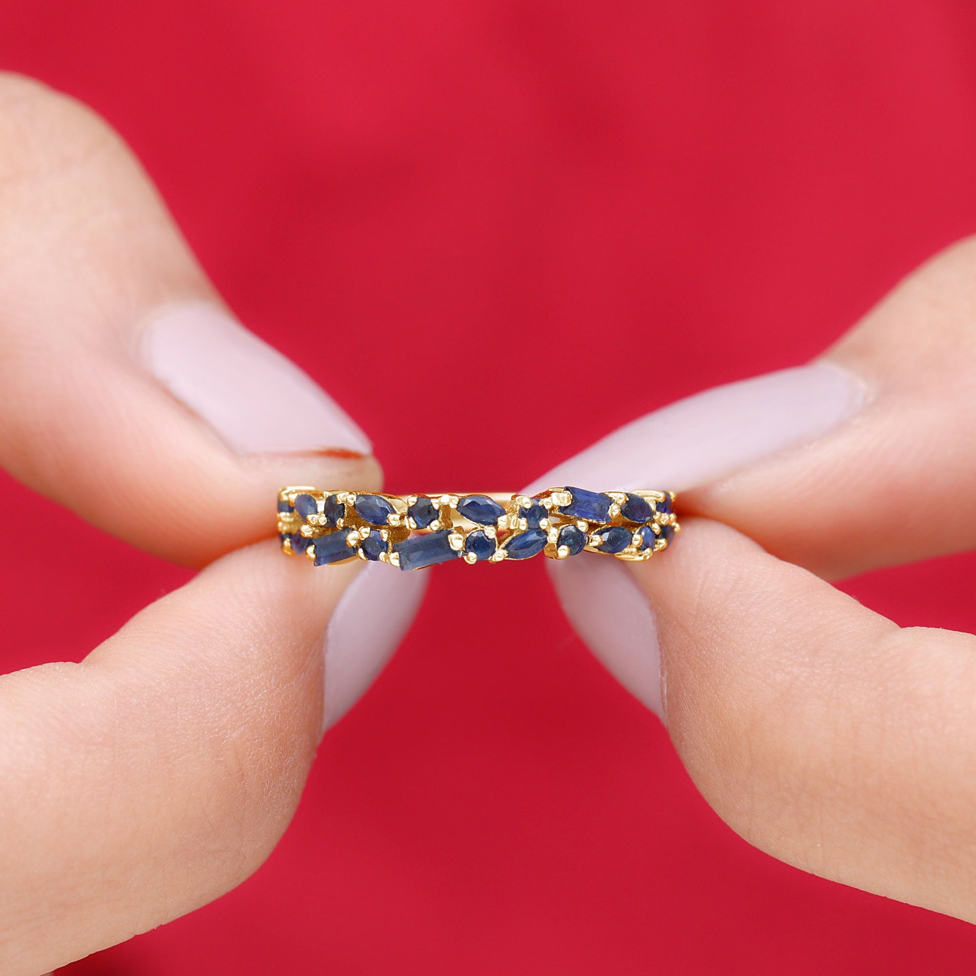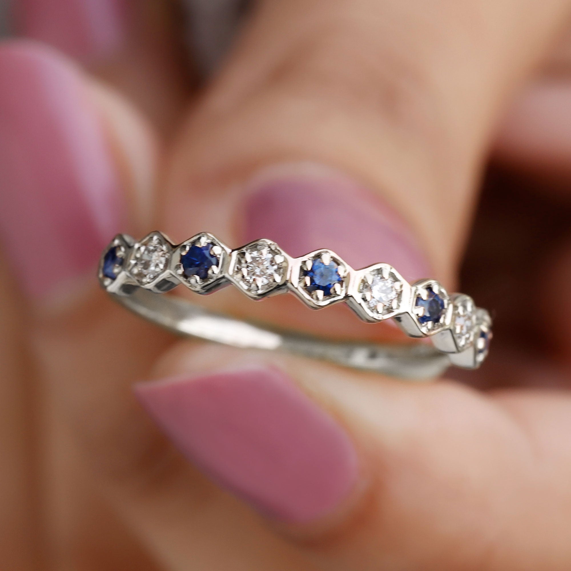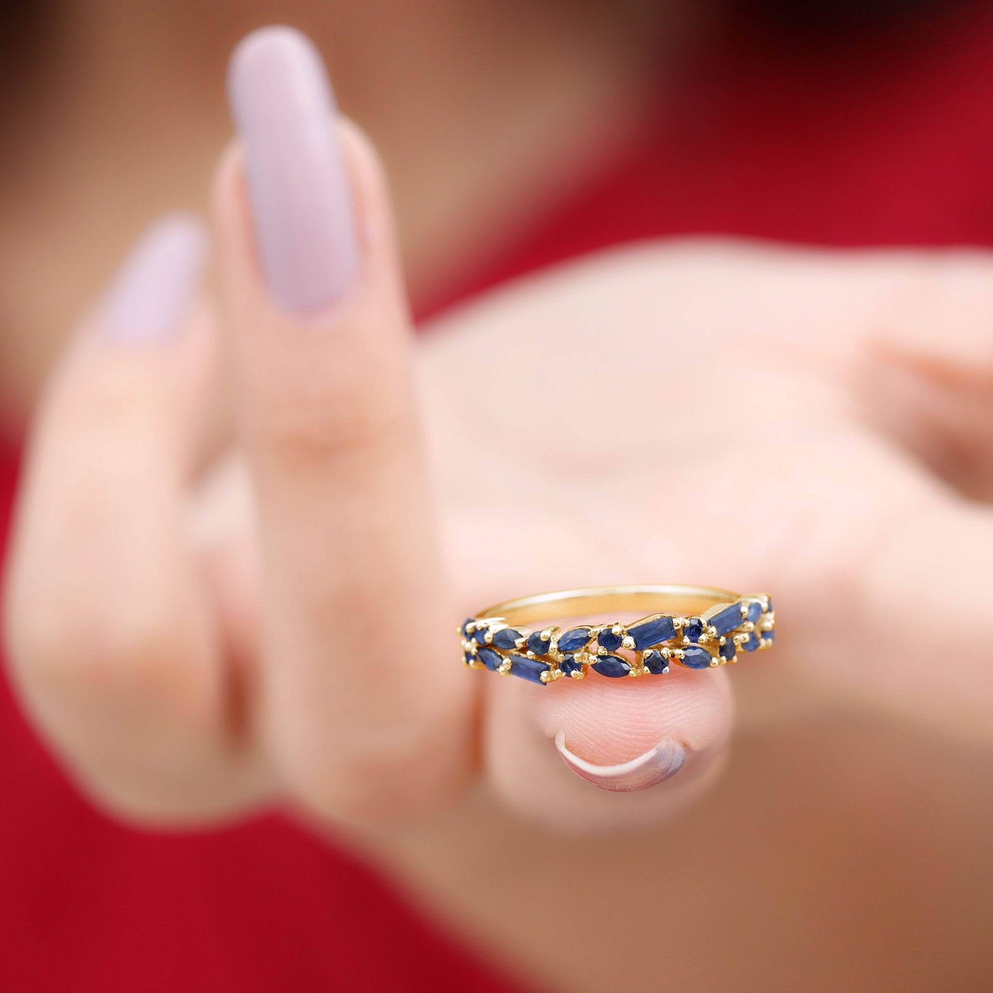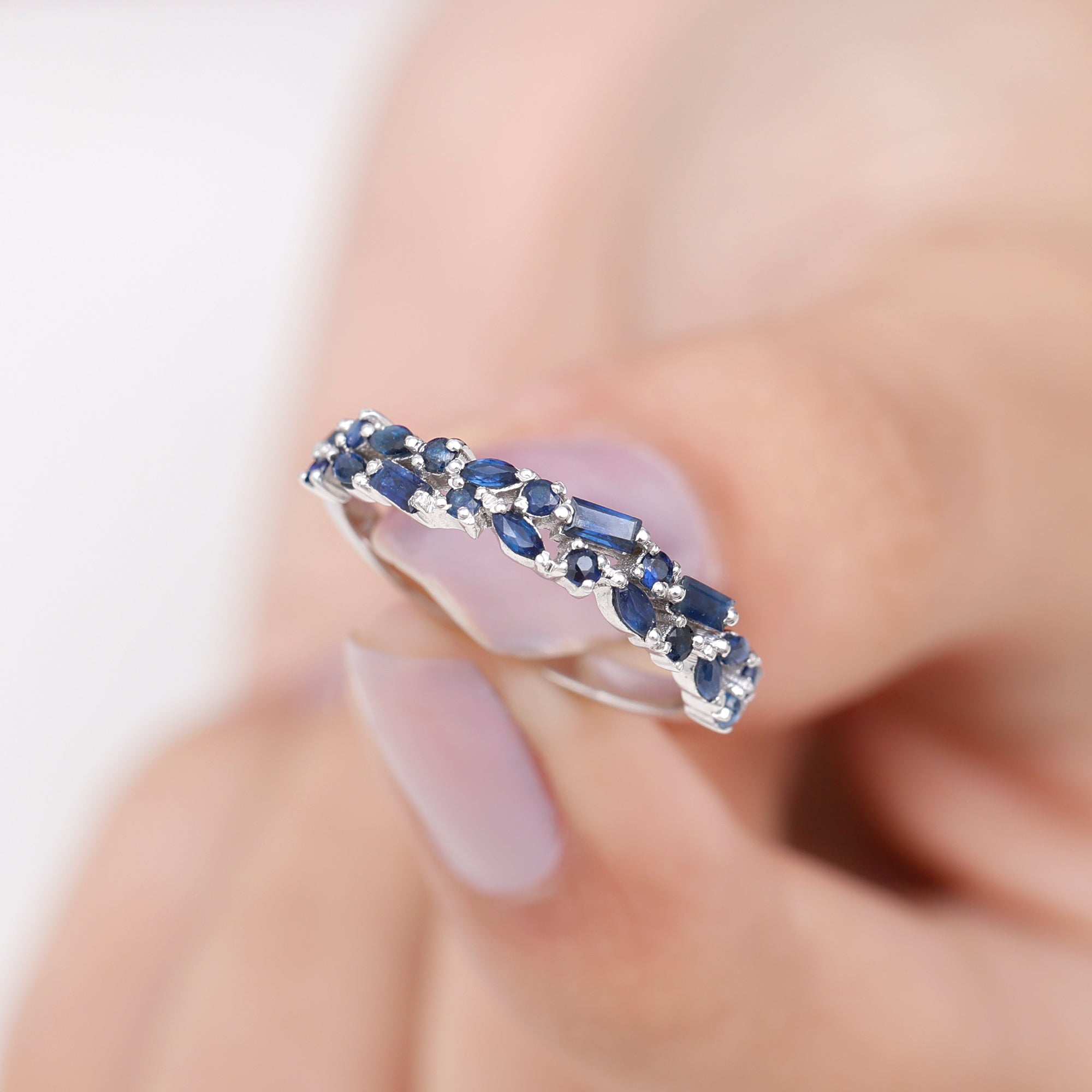 Blue Sapphire Eternity Rings: - Known for the cherished symbol of romance, this eternity ring features a continuous band adorned with vibrant blue sapphires all over the band. Its enduring allure creates a timeless charm that'll be valued for many years to come. What's more appealing than this? It effortlessly pairs with other jewelry pieces, allowing you to mix and match with ease. Moreover, this accessory serves as a meaningful gesture of boundless love to your loved ones.