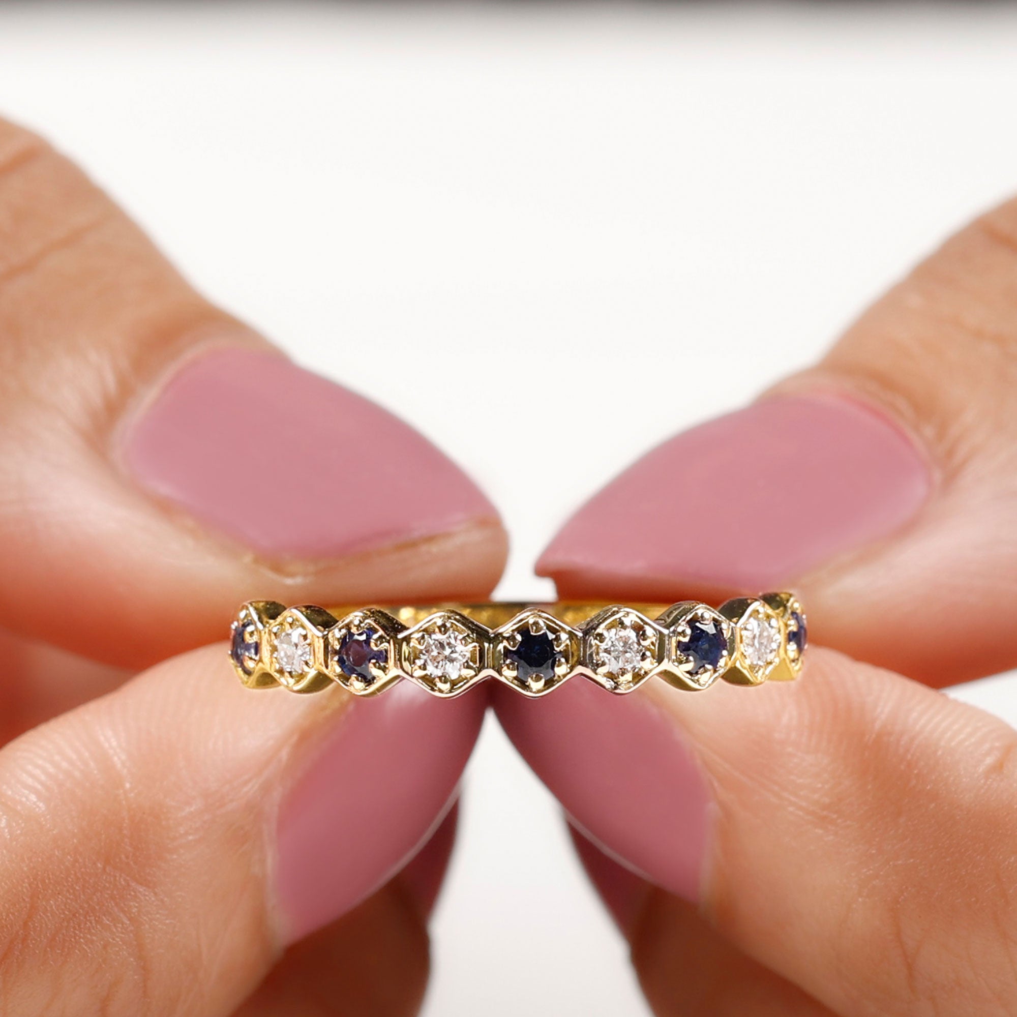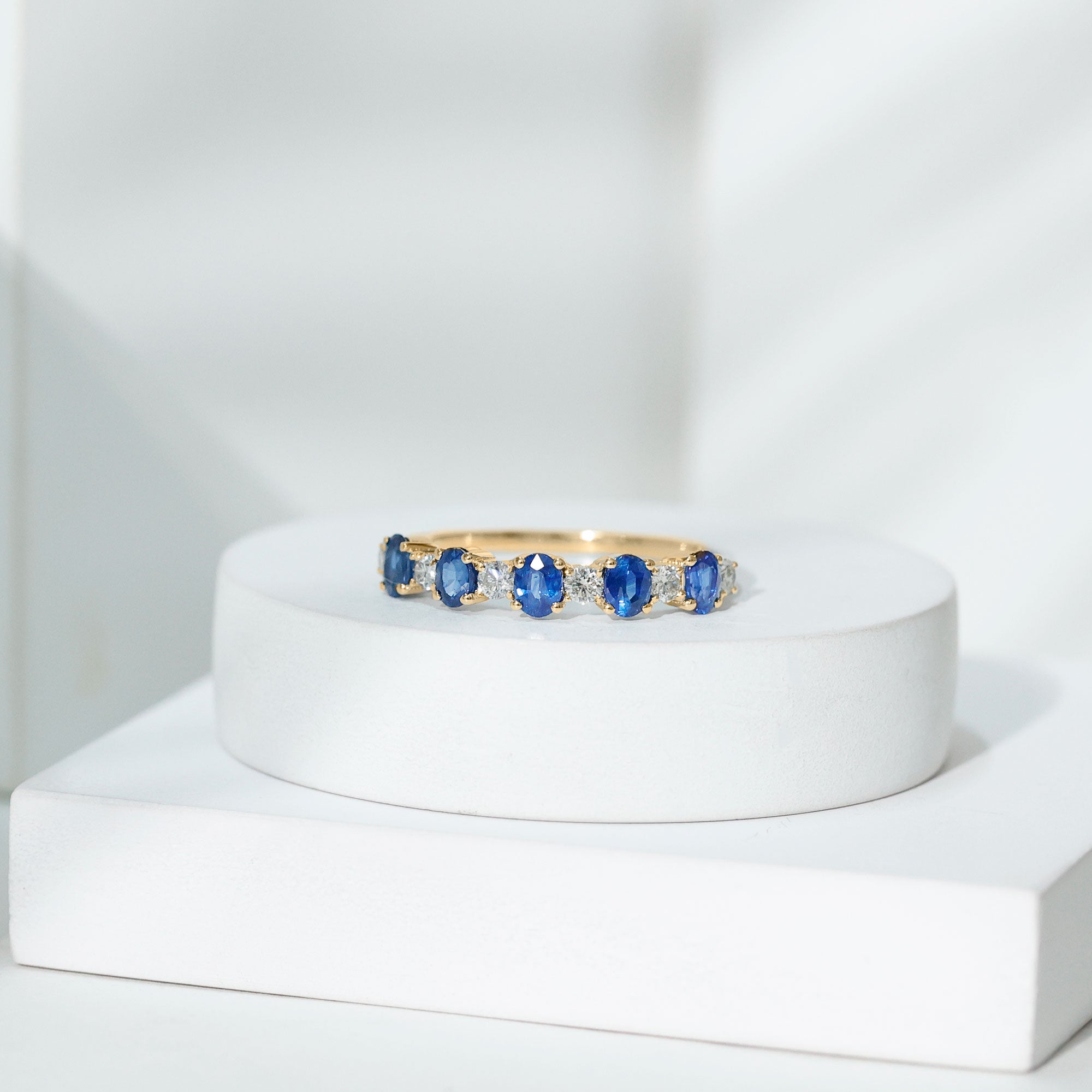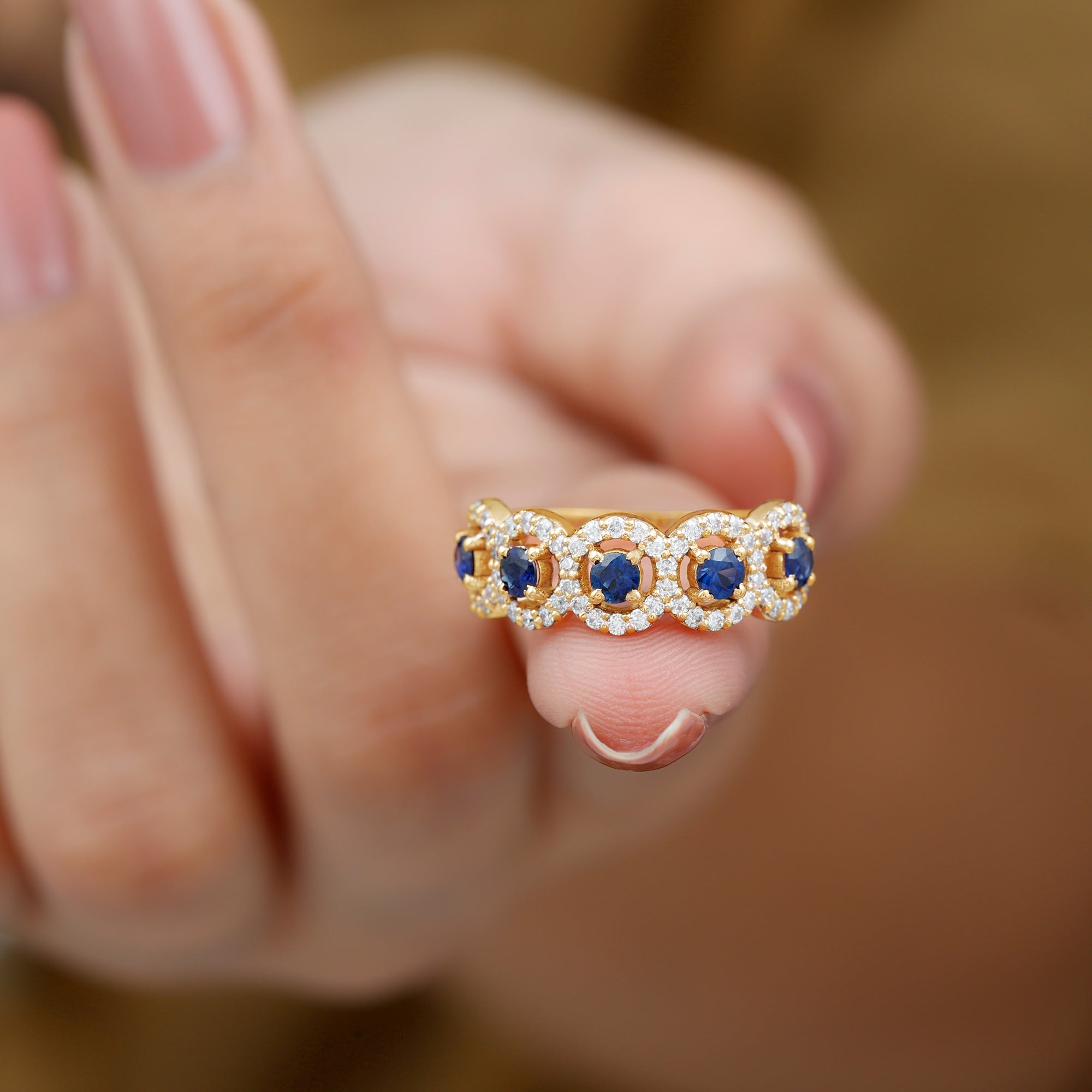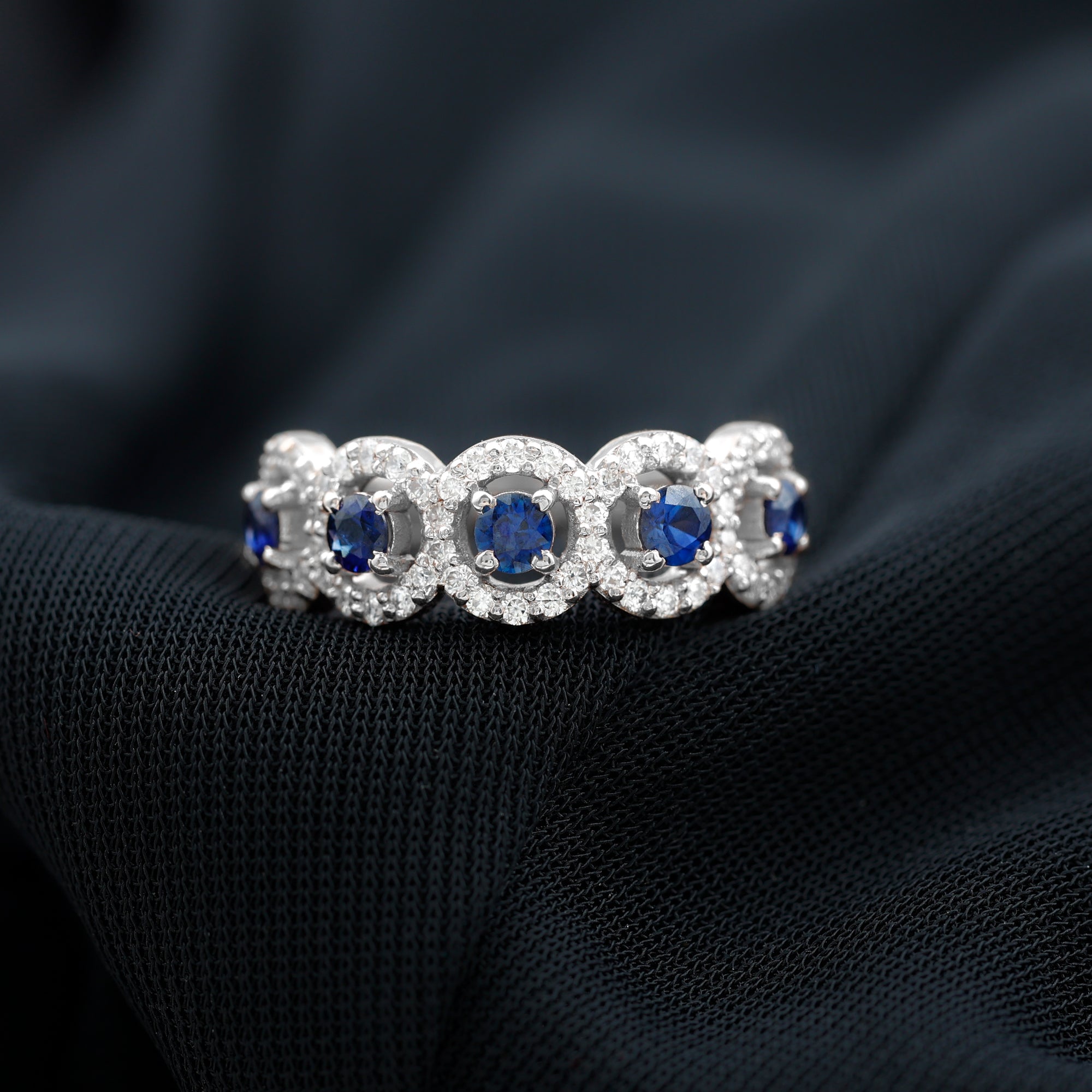 Blue Sapphire Eternity Rings: - Known for the cherished symbol of romance, this eternity ring features a continuous band adorned with vibrant blue sapphires all over the band. Its enduring allure creates a timeless charm that'll be valued for many years to come. What's more appealing than this? It effortlessly pairs with other jewelry pieces, allowing you to mix and match with ease. Moreover, this accessory serves as a meaningful gesture of boundless love to your loved ones.