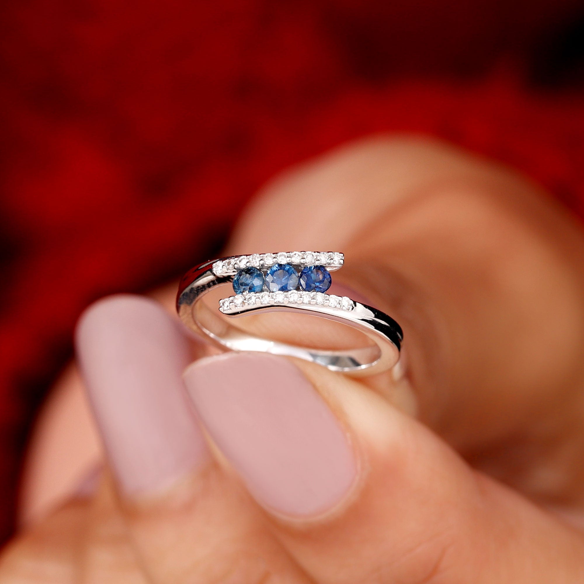 Blue Sapphire Promise Rings: - Available in a range of styles, from classic to contemporary, within this category, rings aren't defined by any specific style or design, mostly you'll find sophisticated solitaire rings showcasing a stunning blue sapphire gemstone. Yet, there are also intricately designed rings adorned with nature-inspired motifs, floral accents, diamonds, or arrangements of three sapphire stones. Furthermore, among all these categories the romantic allure of sapphire heart rings stands out. Symbolically, exchanged between coupled as a token of lifelong commitment, often an ideal ring for pre-engagement, thus it holds a special significance.