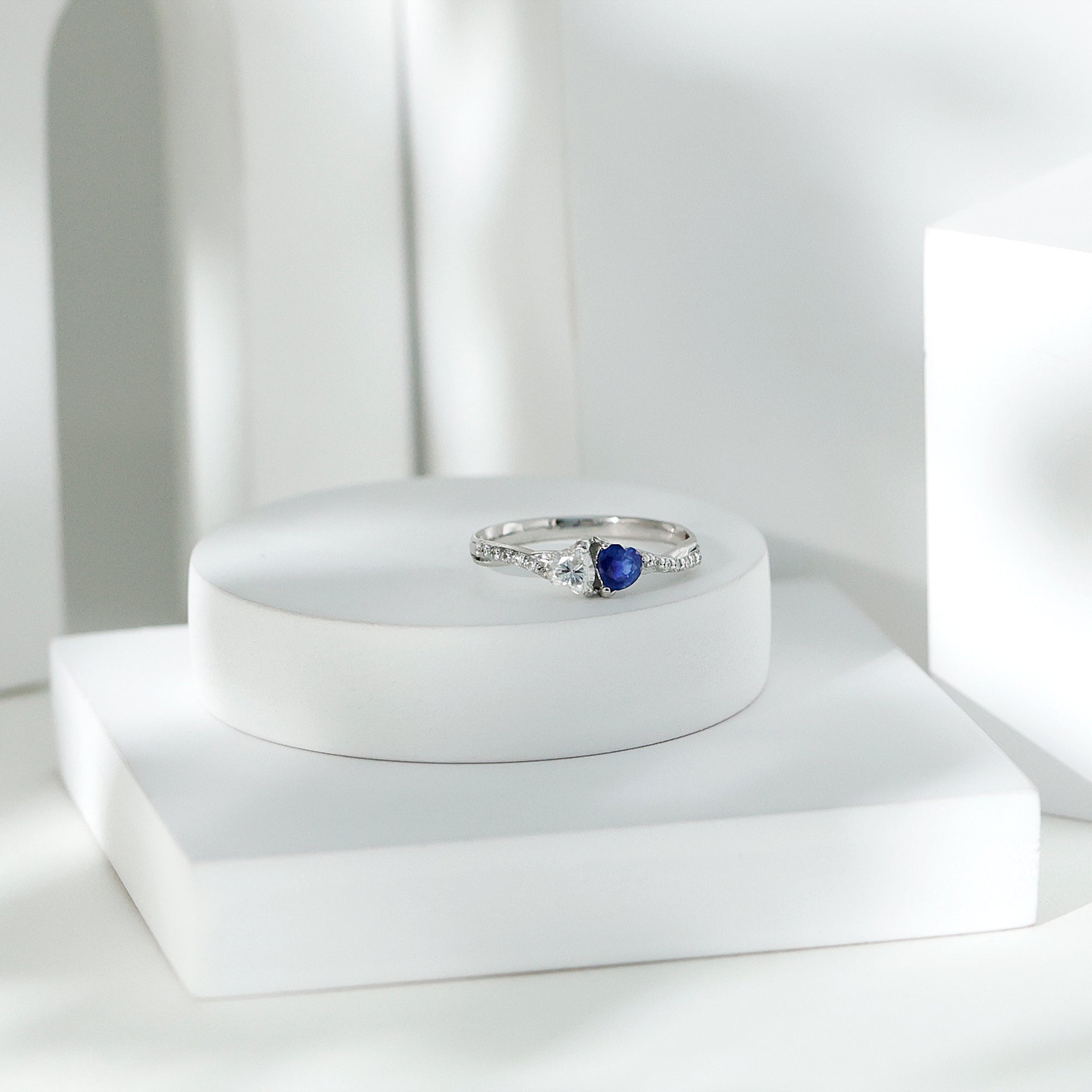Blue Sapphire Promise Rings: - Available in a range of styles, from classic to contemporary, within this category, rings aren't defined by any specific style or design, mostly you'll find sophisticated solitaire rings showcasing a stunning blue sapphire gemstone. Yet, there are also intricately designed rings adorned with nature-inspired motifs, floral accents, diamonds, or arrangements of three sapphire stones. Furthermore, among all these categories the romantic allure of sapphire heart rings stands out. Symbolically, exchanged between coupled as a token of lifelong commitment, often an ideal ring for pre-engagement, thus it holds a special significance.