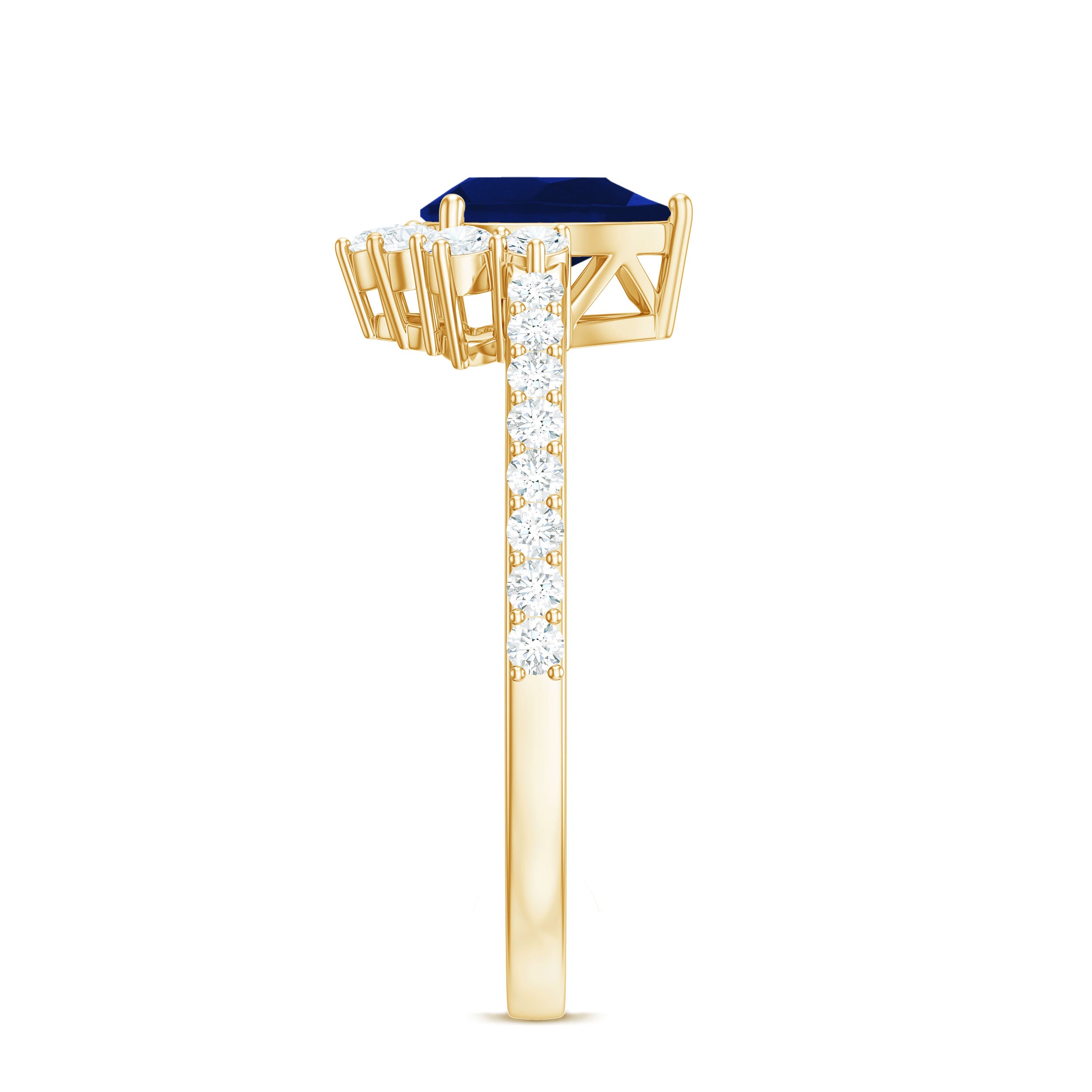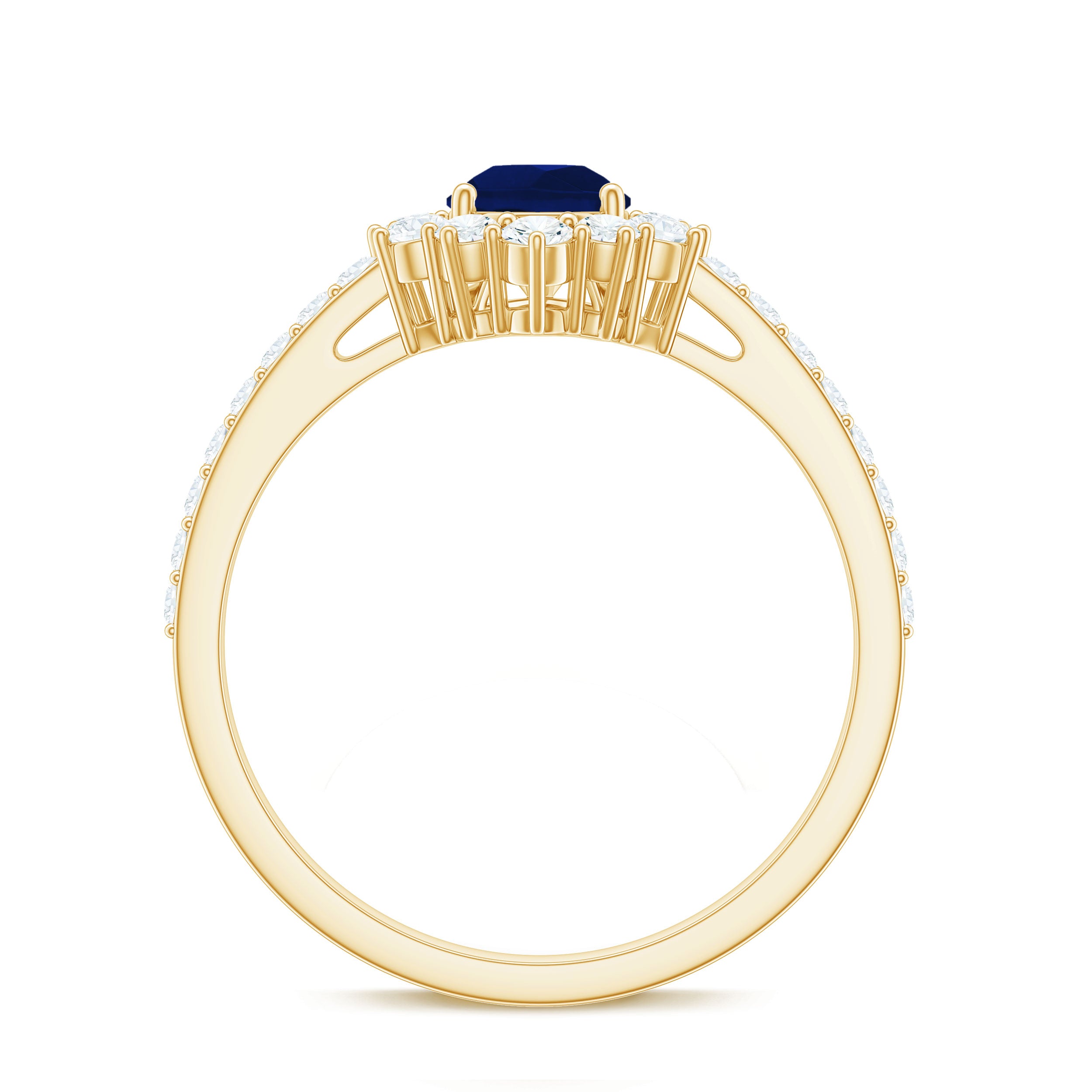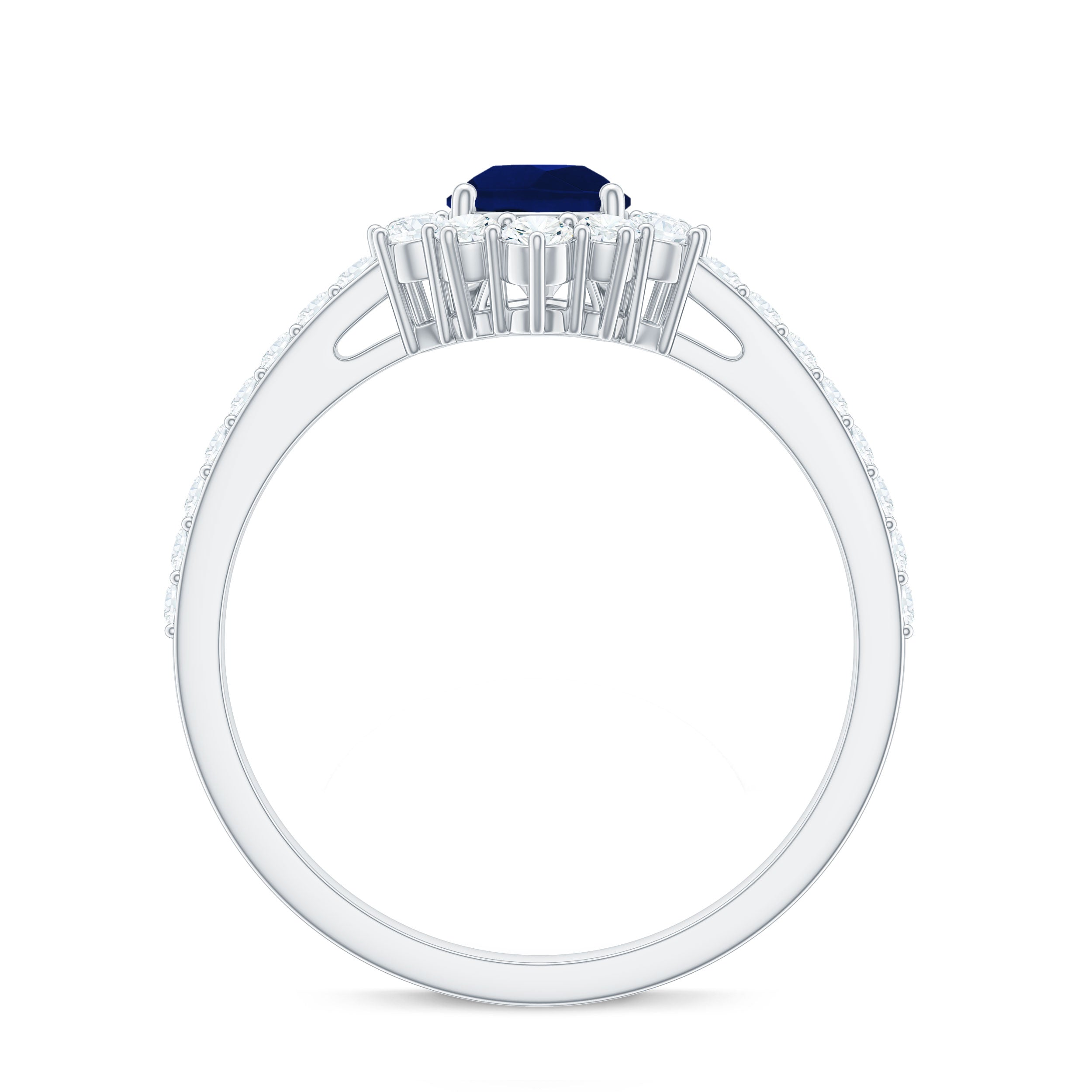 Blue Sapphire Halo Rings: - As the name suggests, the halo design of these rings accentuates the lovely blue hues of blue sapphire with a glimmering diamond accent surrounding the center stone and elevates the appearance of a shank for a luxurious edge. Our blue sapphire rings with diamond or moissanite halo are specially designed in white gold or yellow gold metal to add a luminous touch to the ring.
