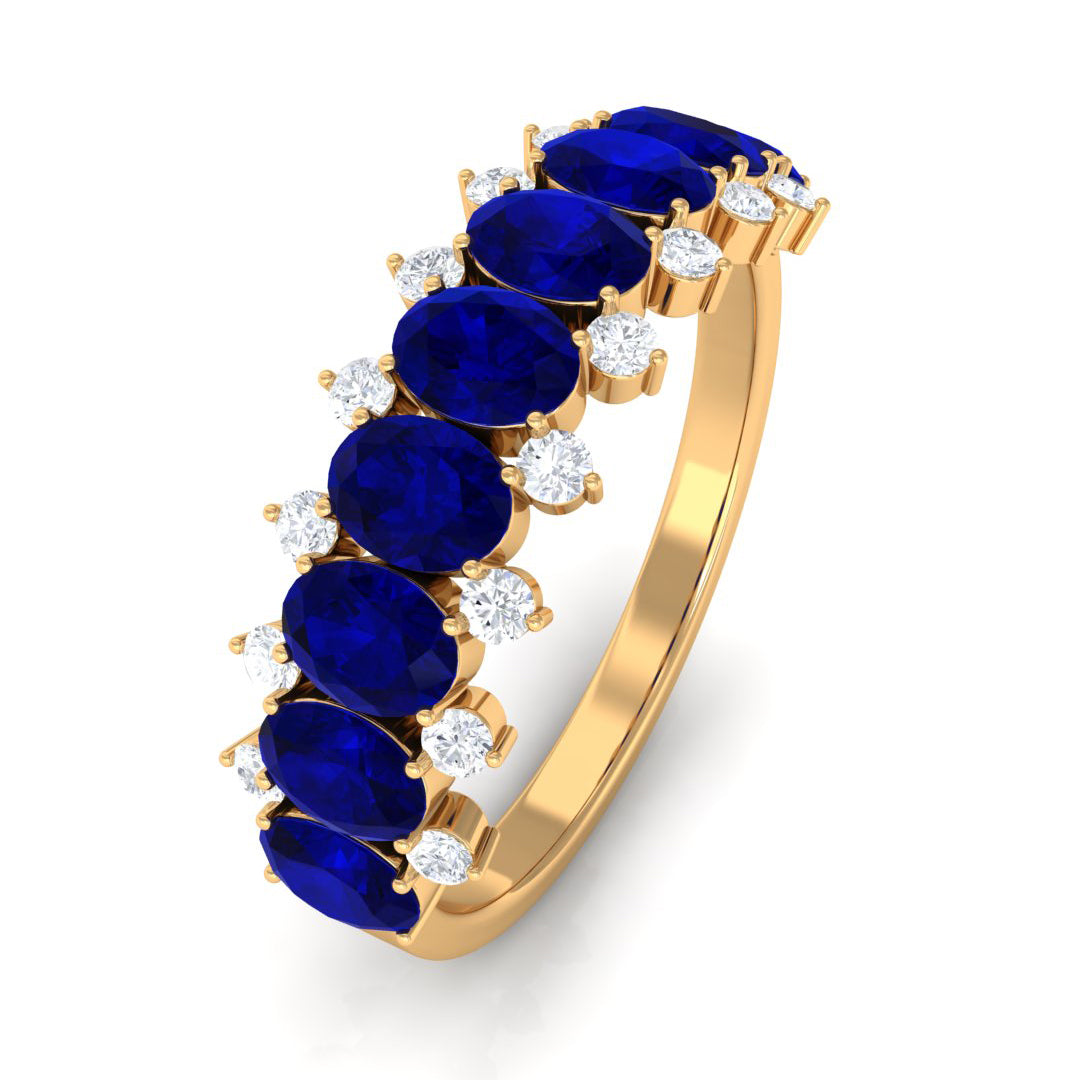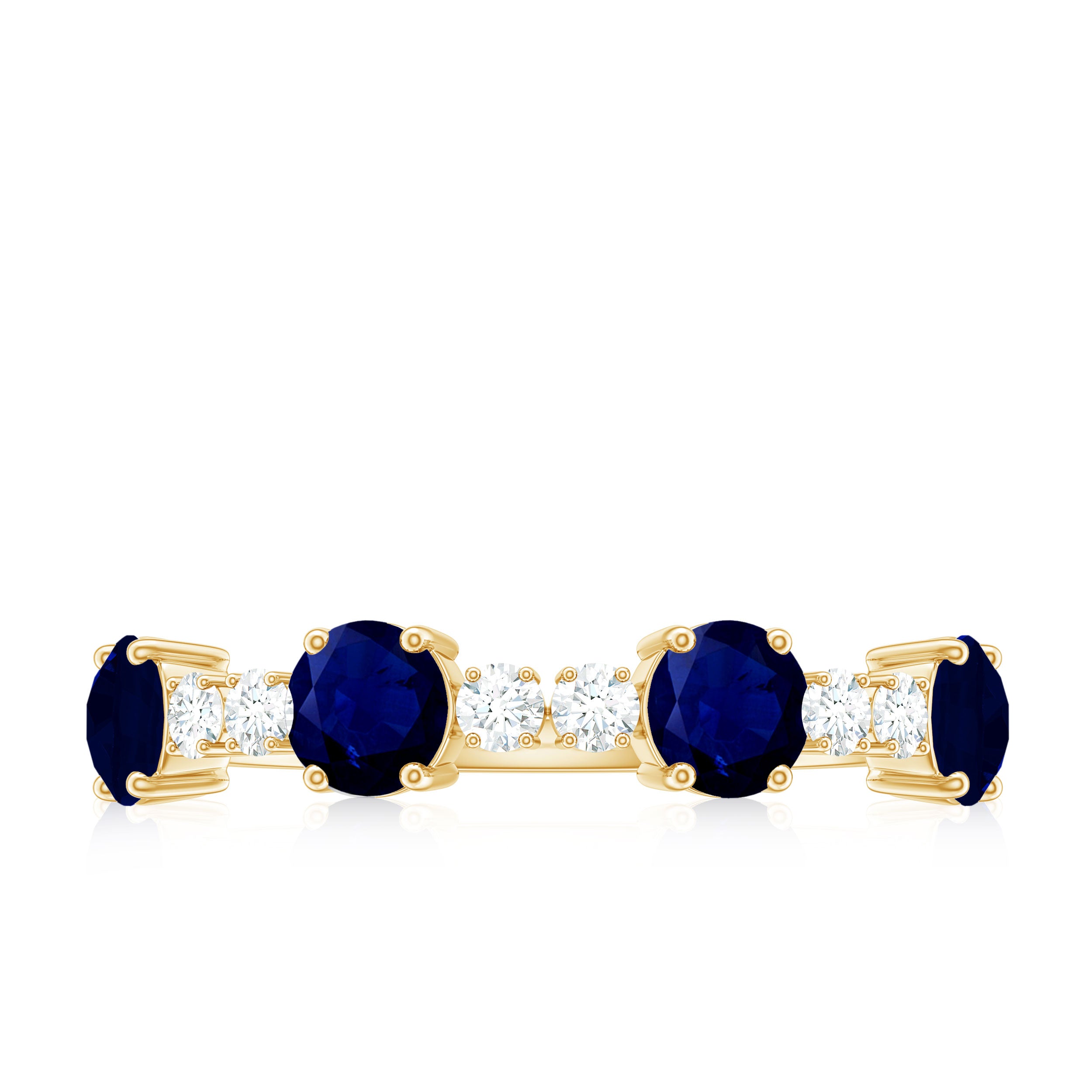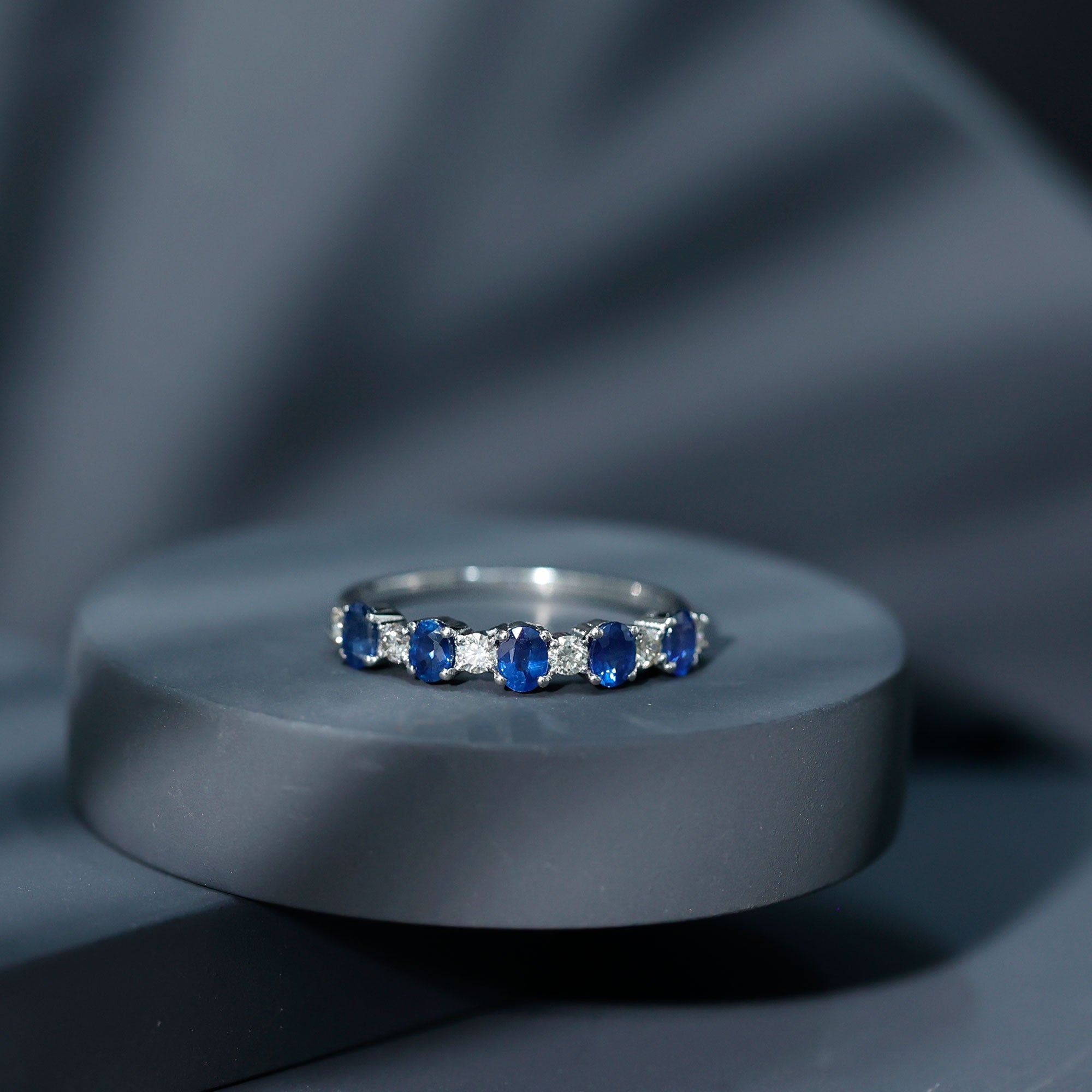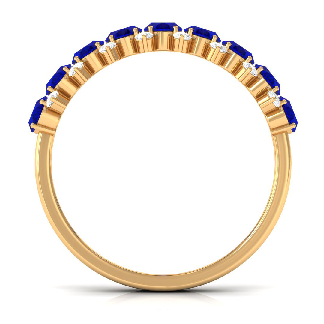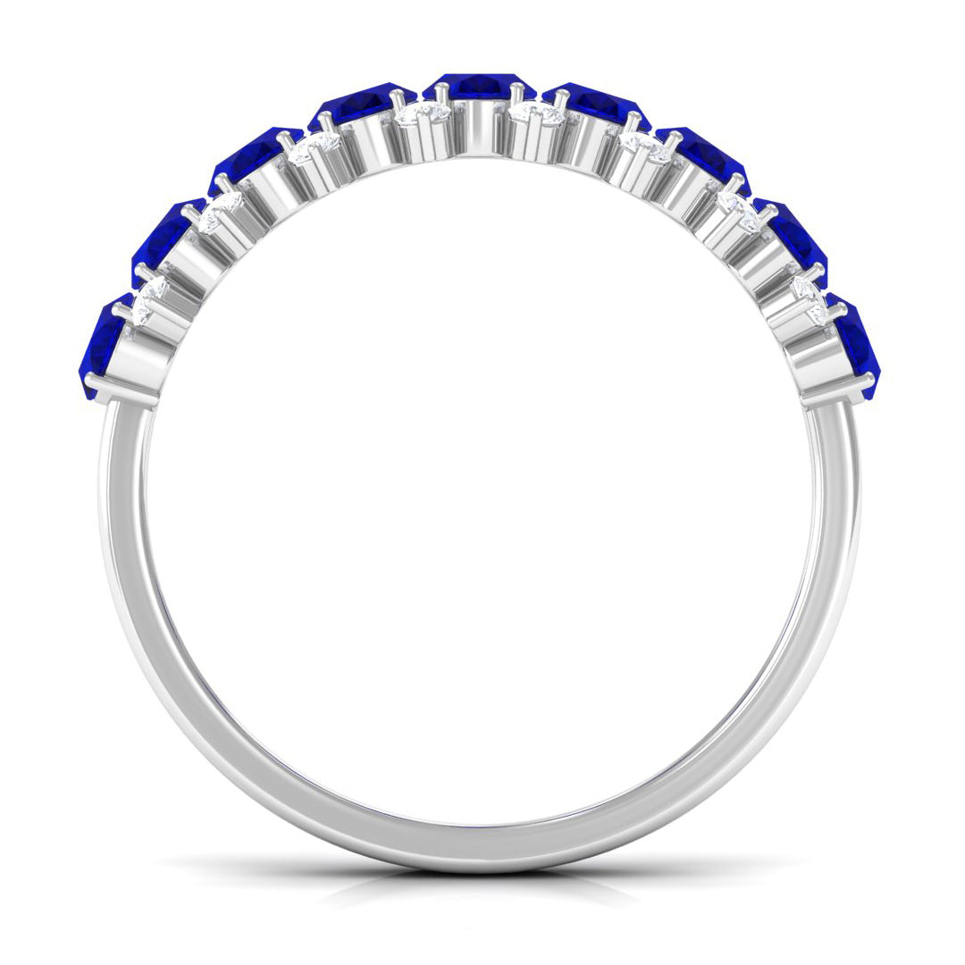 • Half Eternity Wedding Bands: - Eternity bands fill one's relationship with lots of love, affection, and warmth. Out of all the eternity wedding bands, our blue sapphire half-eternity bands are the most popular. Each ring is a stunning piece, either secured in a prong or bezel setting to keep the gemstone on place.