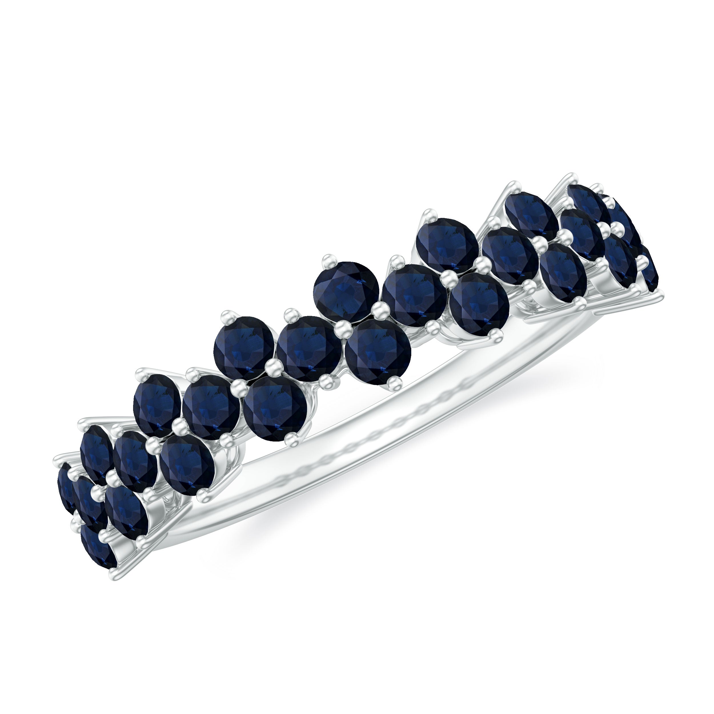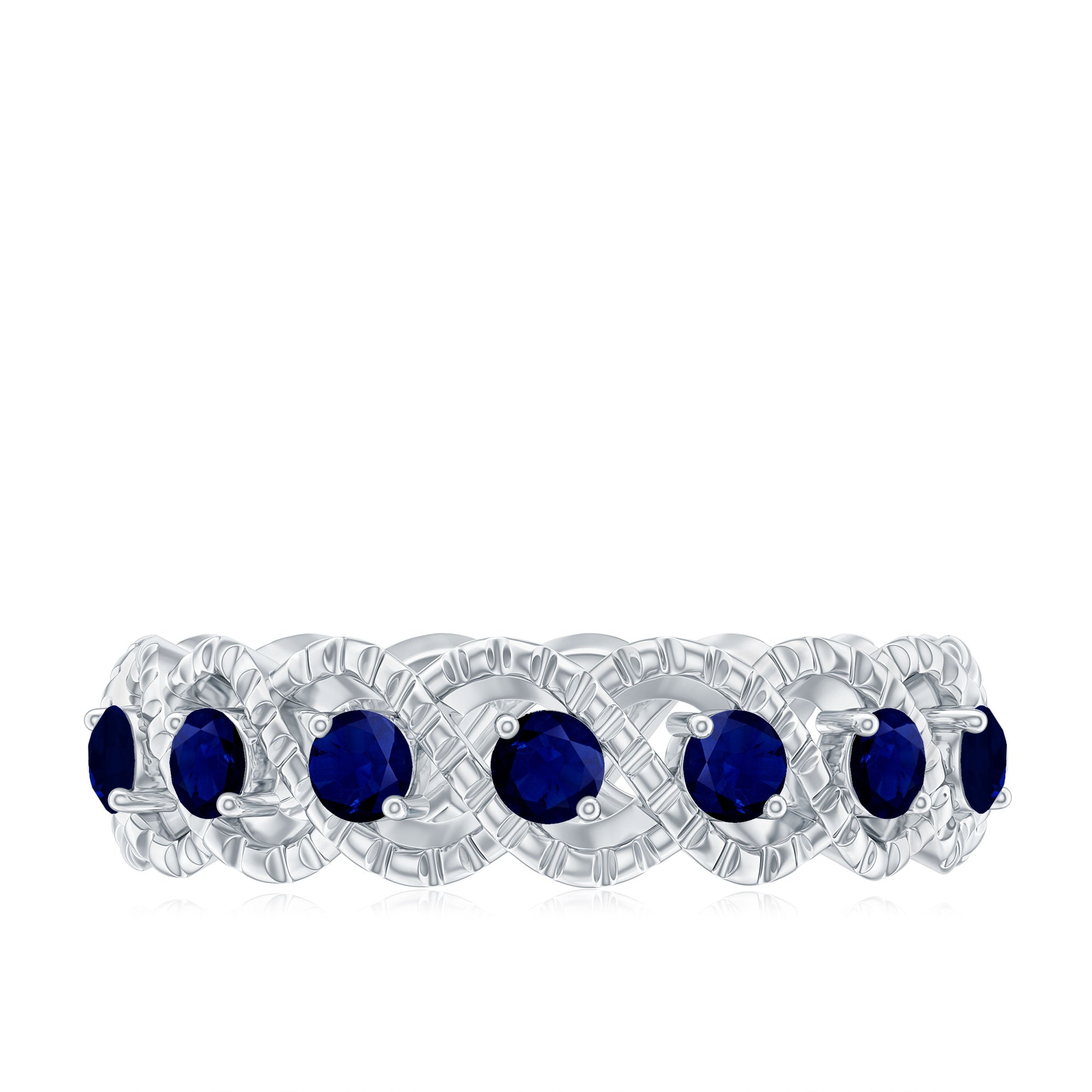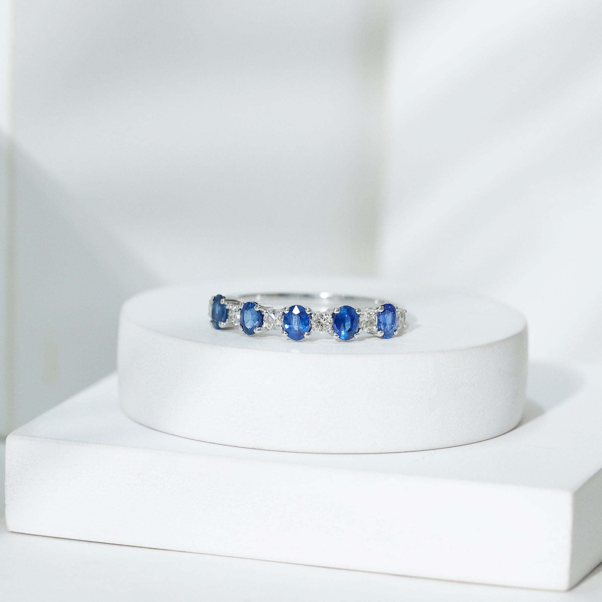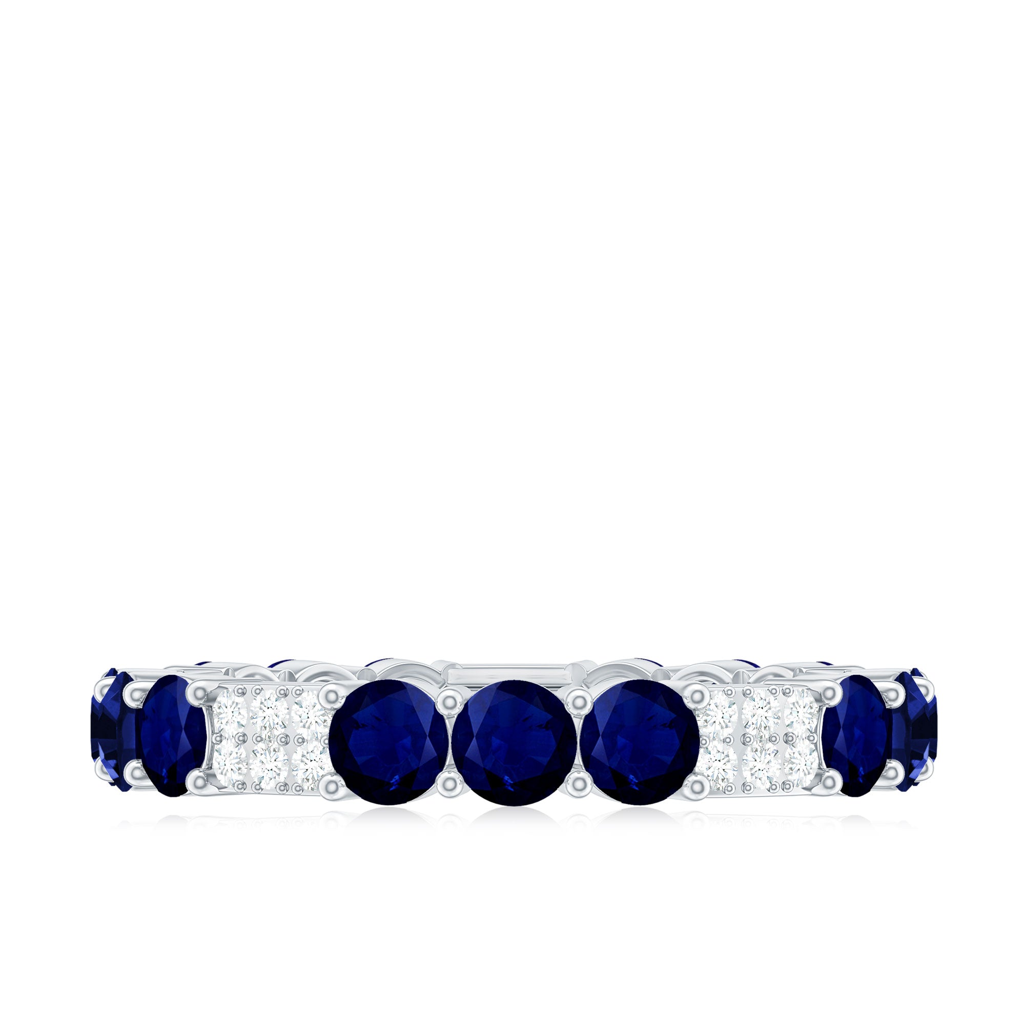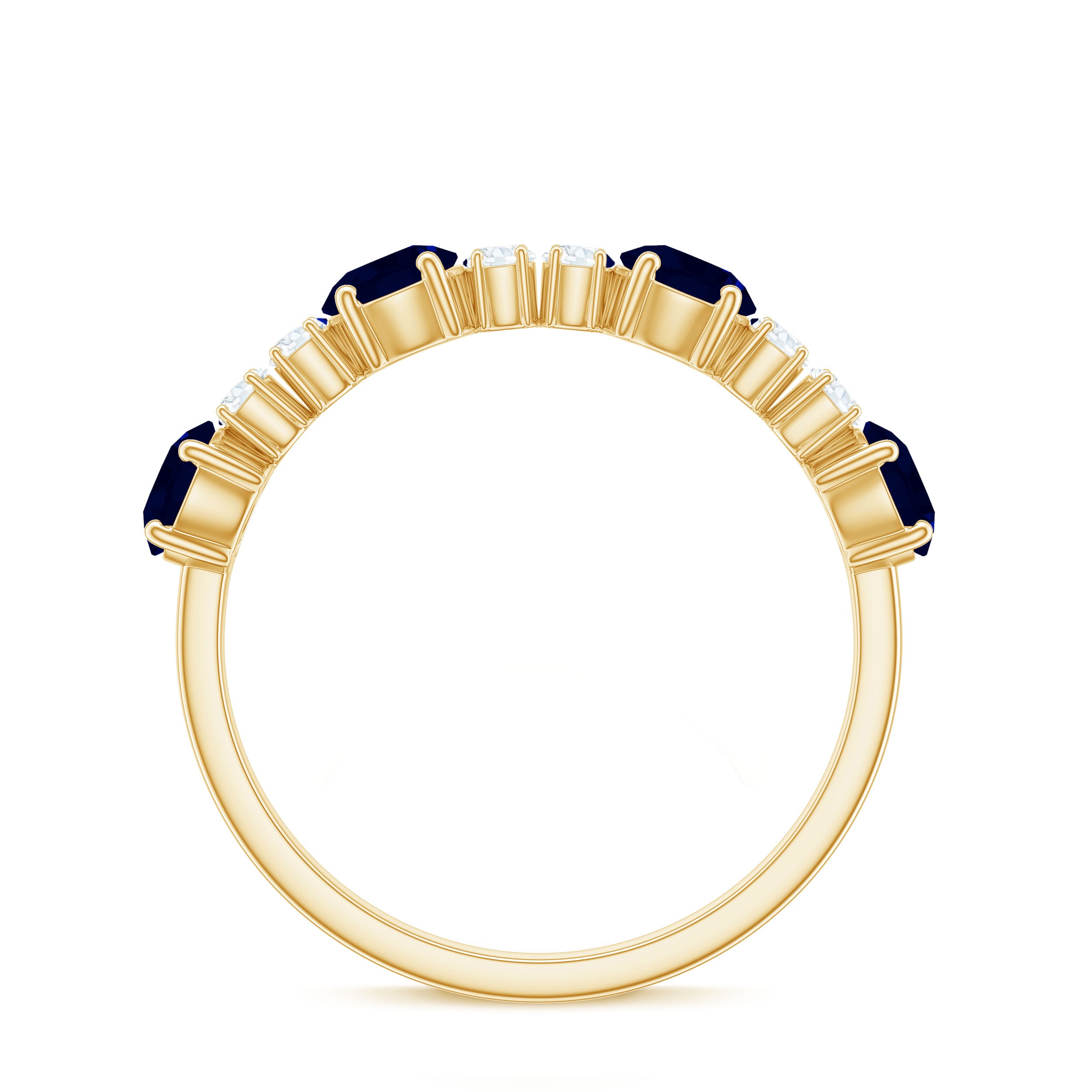 • Half Eternity Wedding Bands: - Eternity bands fill one's relationship with lots of love, affection, and warmth. Out of all the eternity wedding bands, our blue sapphire half-eternity bands are the most popular. Each ring is a stunning piece, either secured in a prong or bezel setting to keep the gemstone on place.