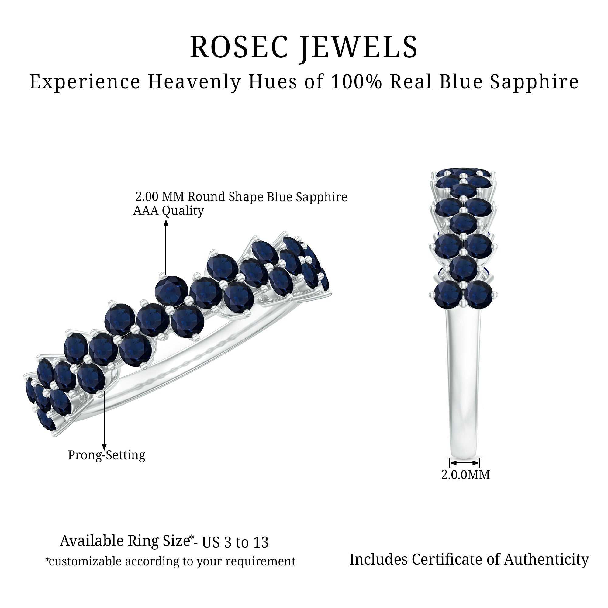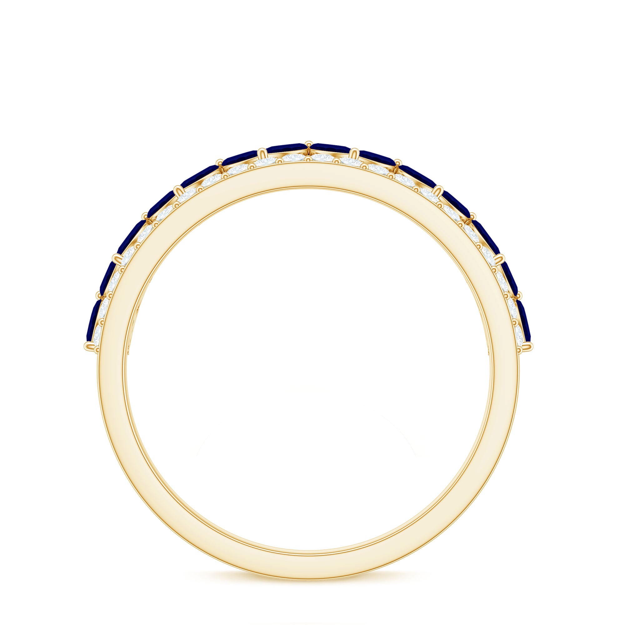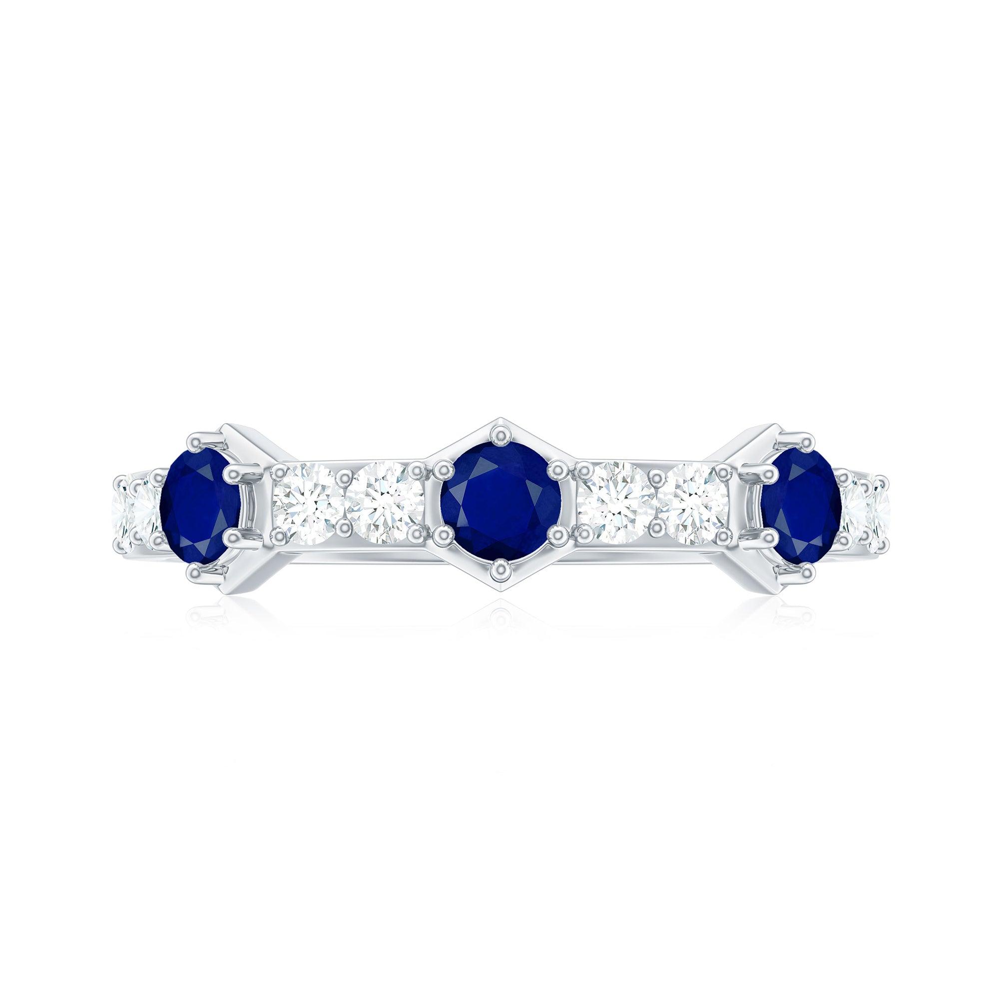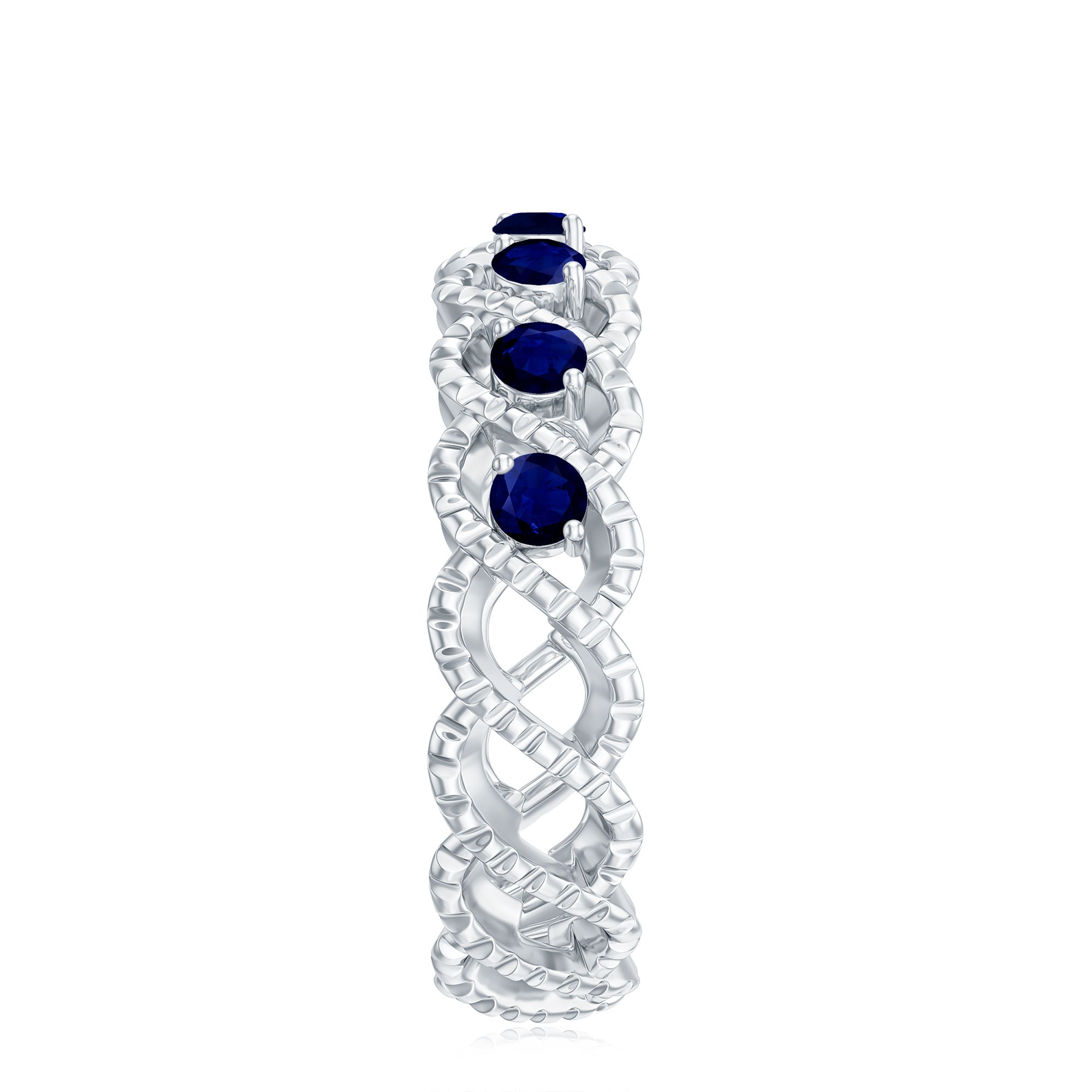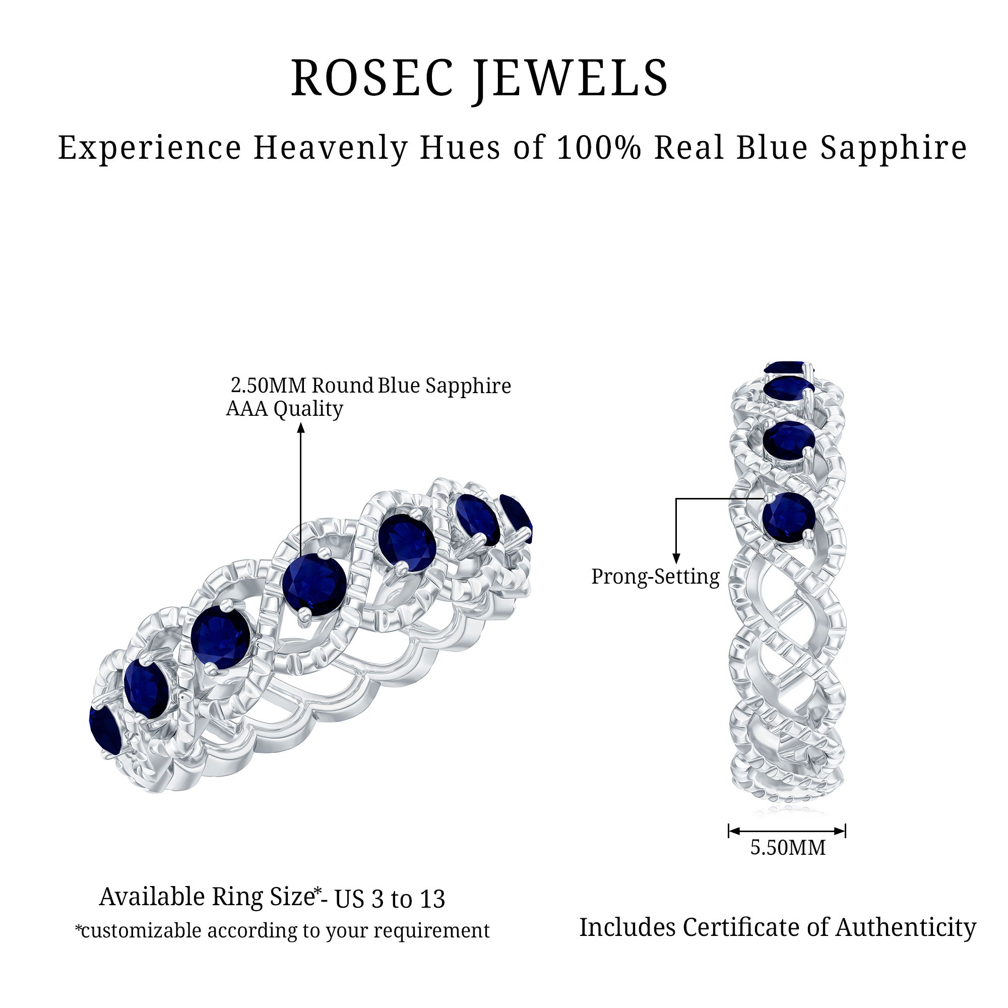 • Half Eternity Wedding Bands: - Eternity bands fill one's relationship with lots of love, affection, and warmth. Out of all the eternity wedding bands, our blue sapphire half-eternity bands are the most popular. Each ring is a stunning piece, either secured in a prong or bezel setting to keep the gemstone on place.