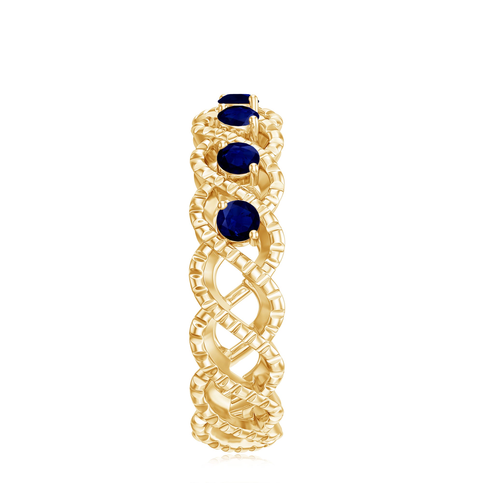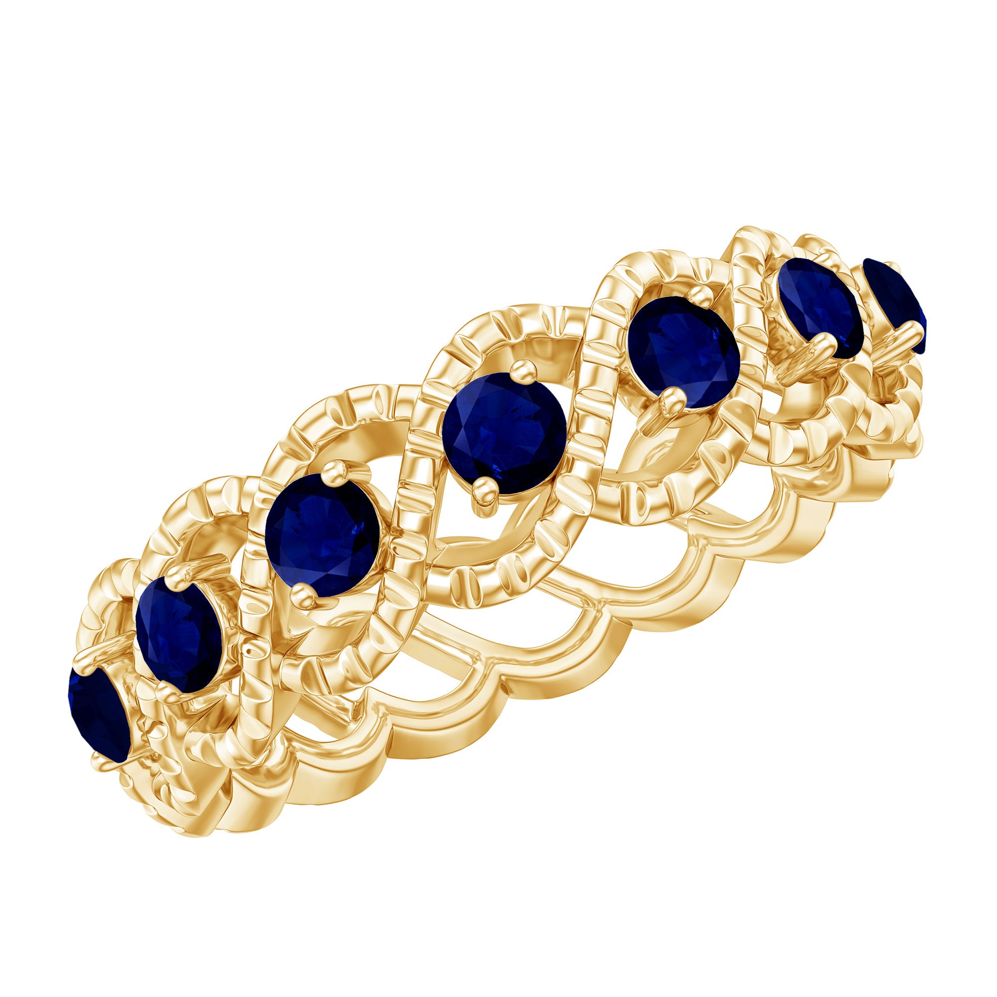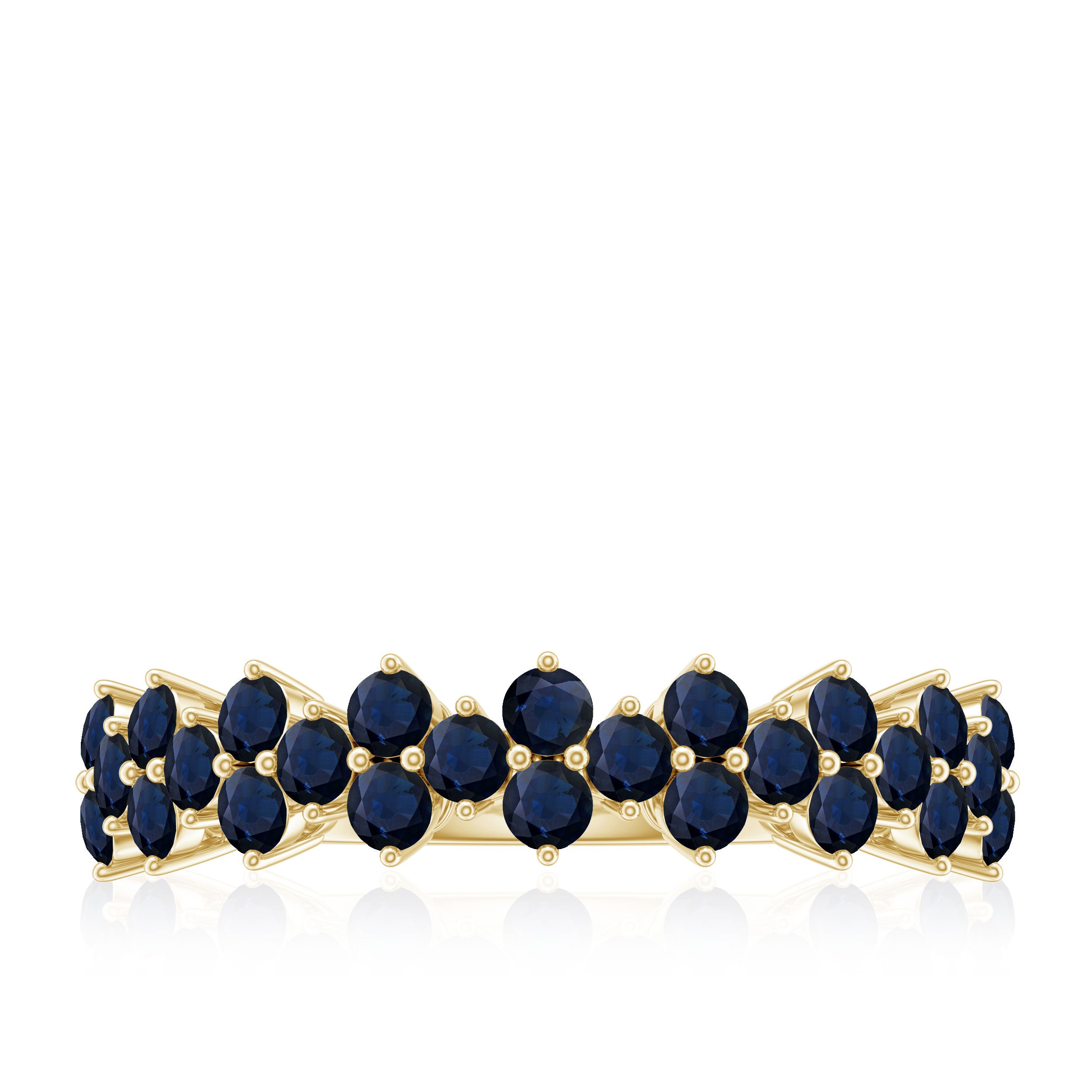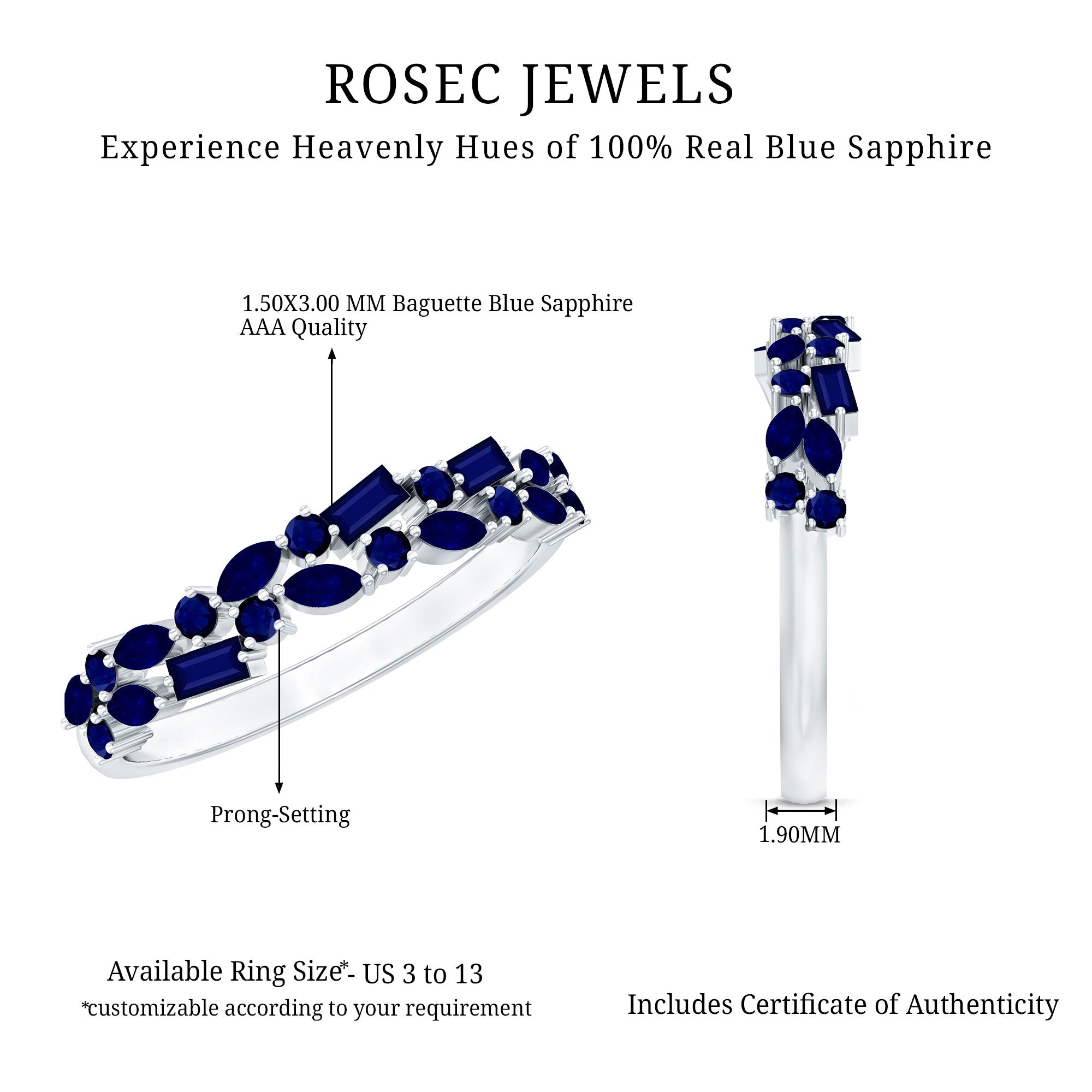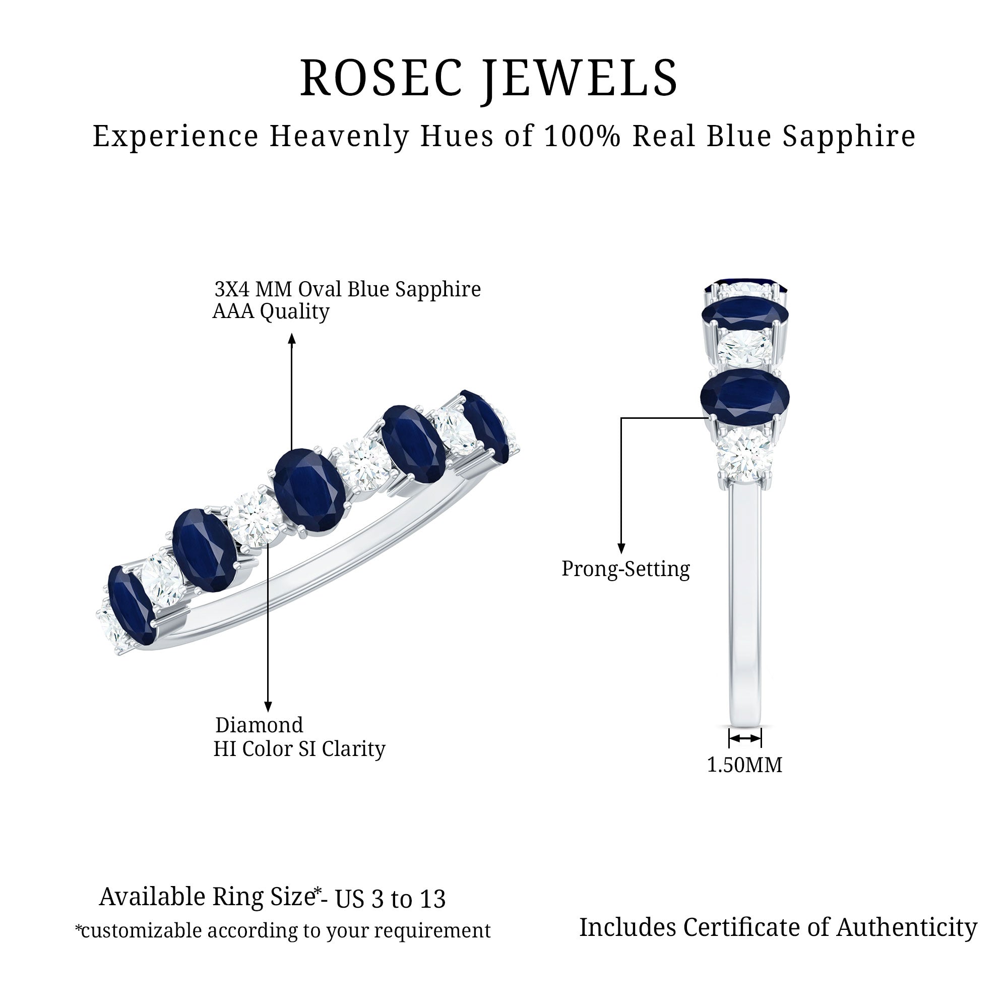 • Half Eternity Wedding Bands: - Eternity bands fill one's relationship with lots of love, affection, and warmth. Out of all the eternity wedding bands, our blue sapphire half-eternity bands are the most popular. Each ring is a stunning piece, either secured in a prong or bezel setting to keep the gemstone on place.