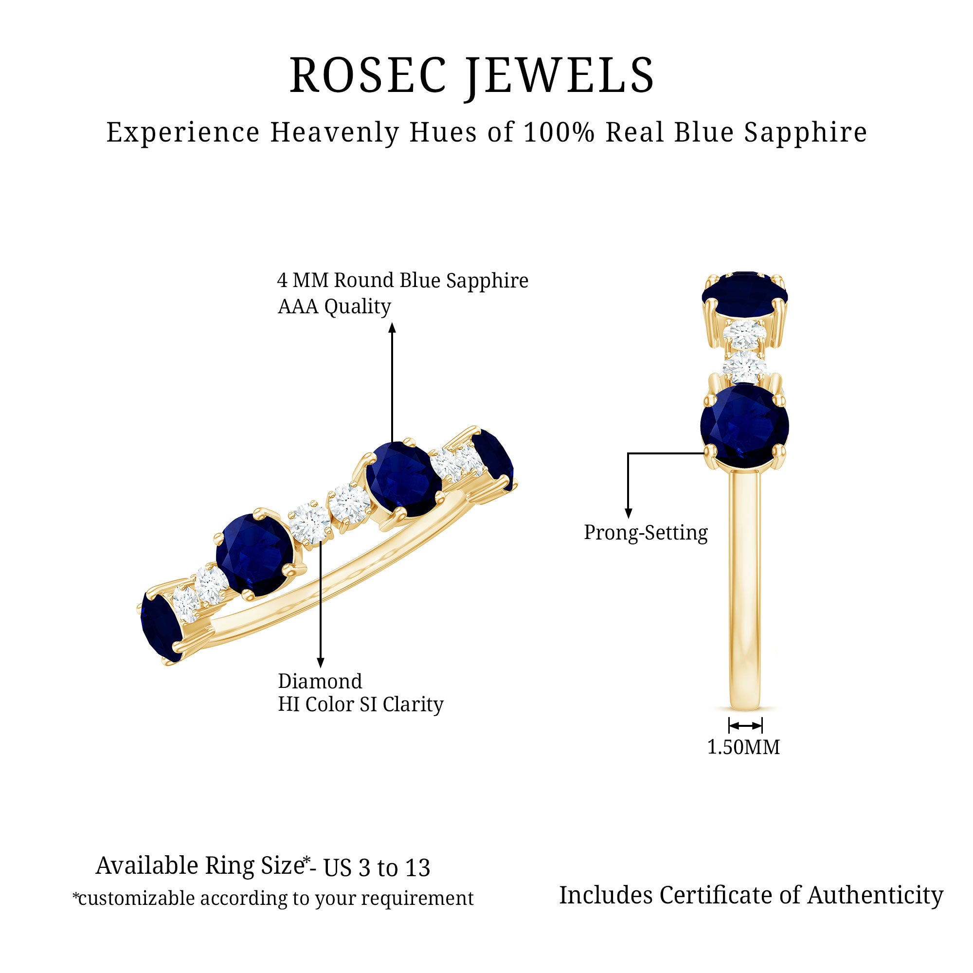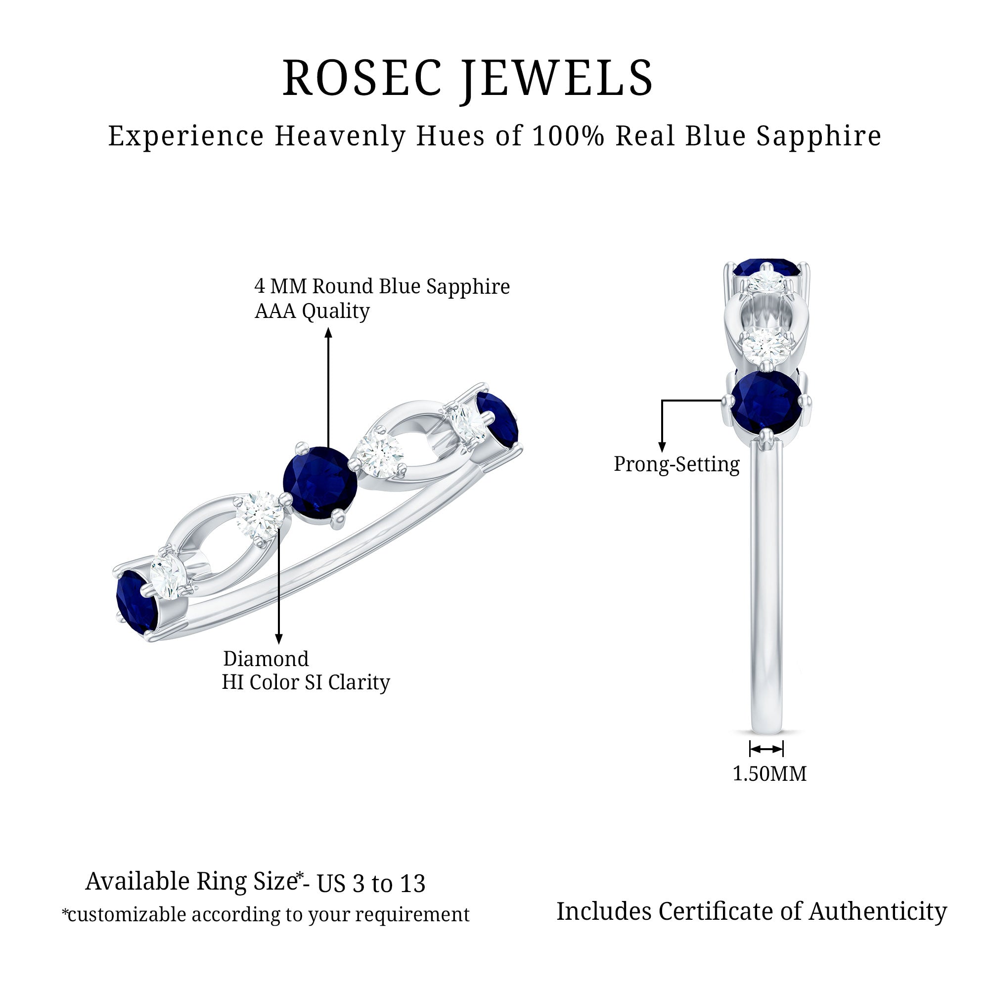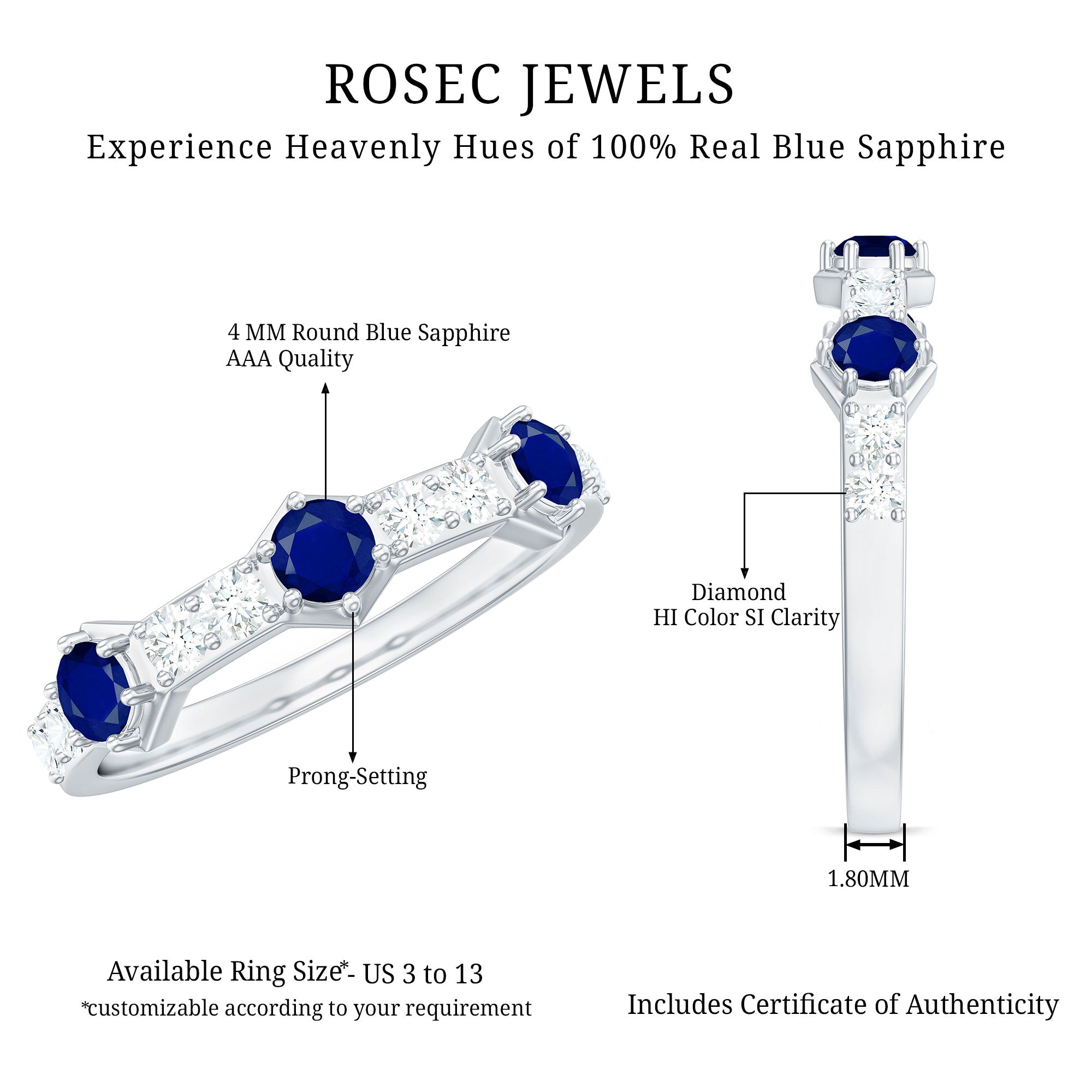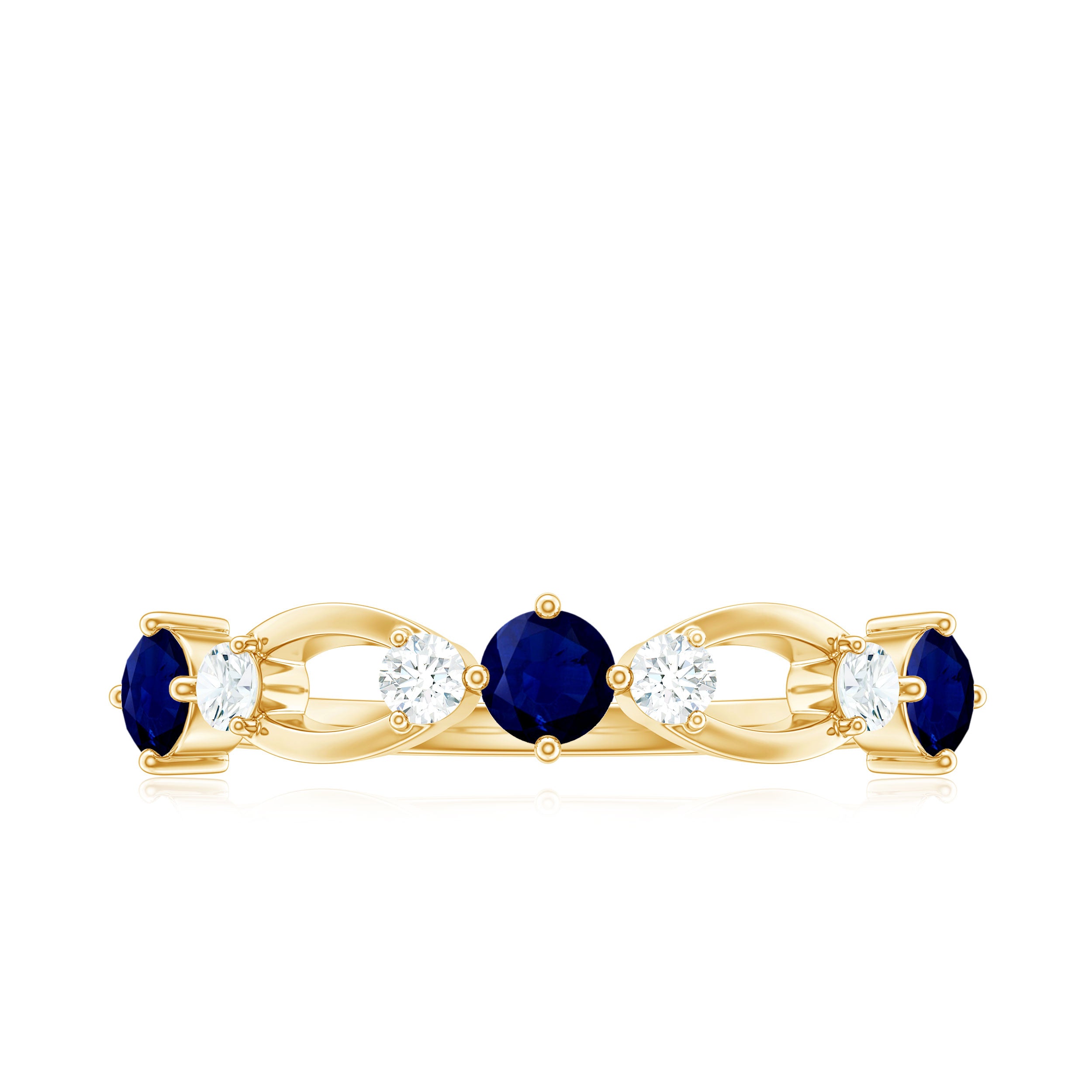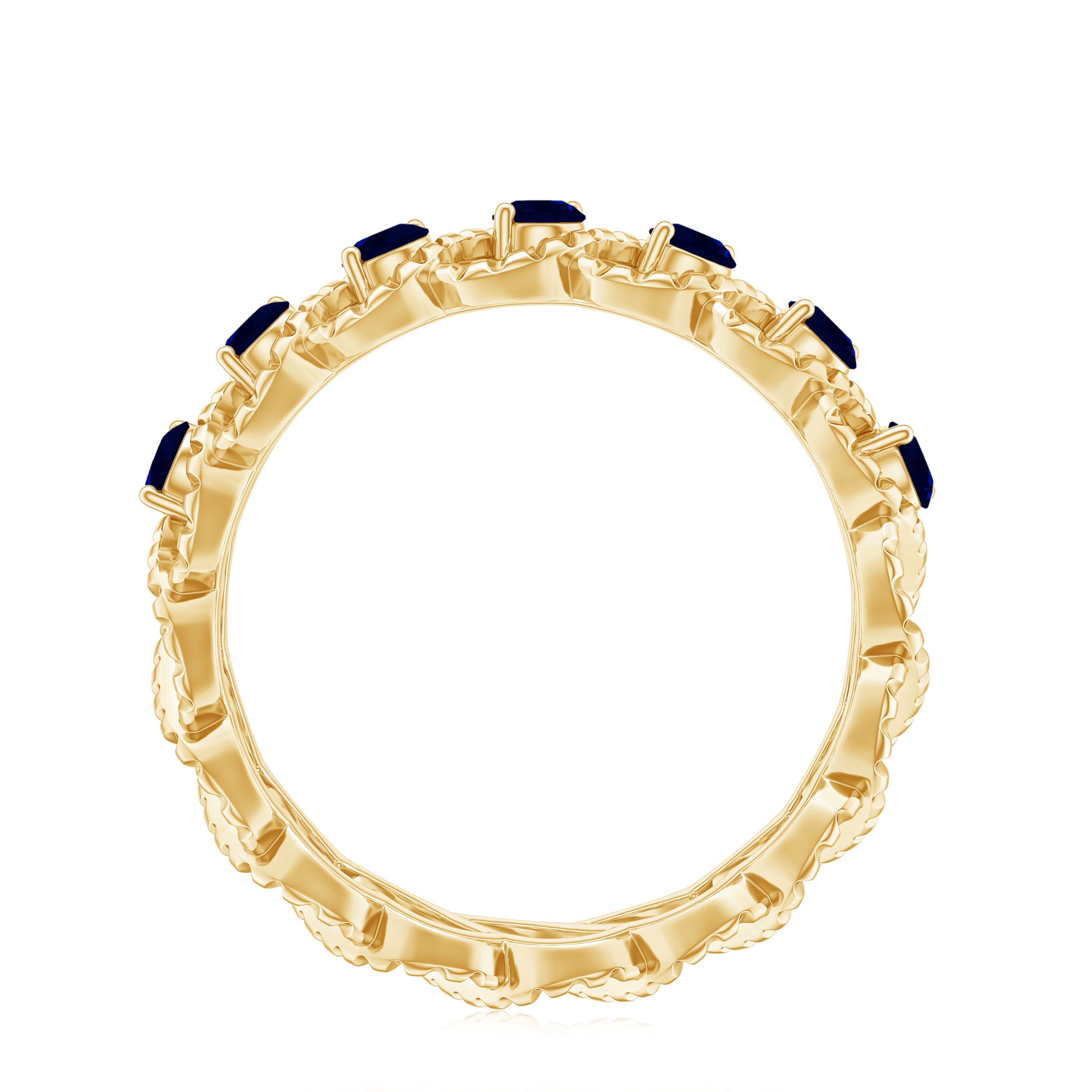 • Half Eternity Wedding Bands: - Eternity bands fill one's relationship with lots of love, affection, and warmth. Out of all the eternity wedding bands, our blue sapphire half-eternity bands are the most popular. Each ring is a stunning piece, either secured in a prong or bezel setting to keep the gemstone on place.