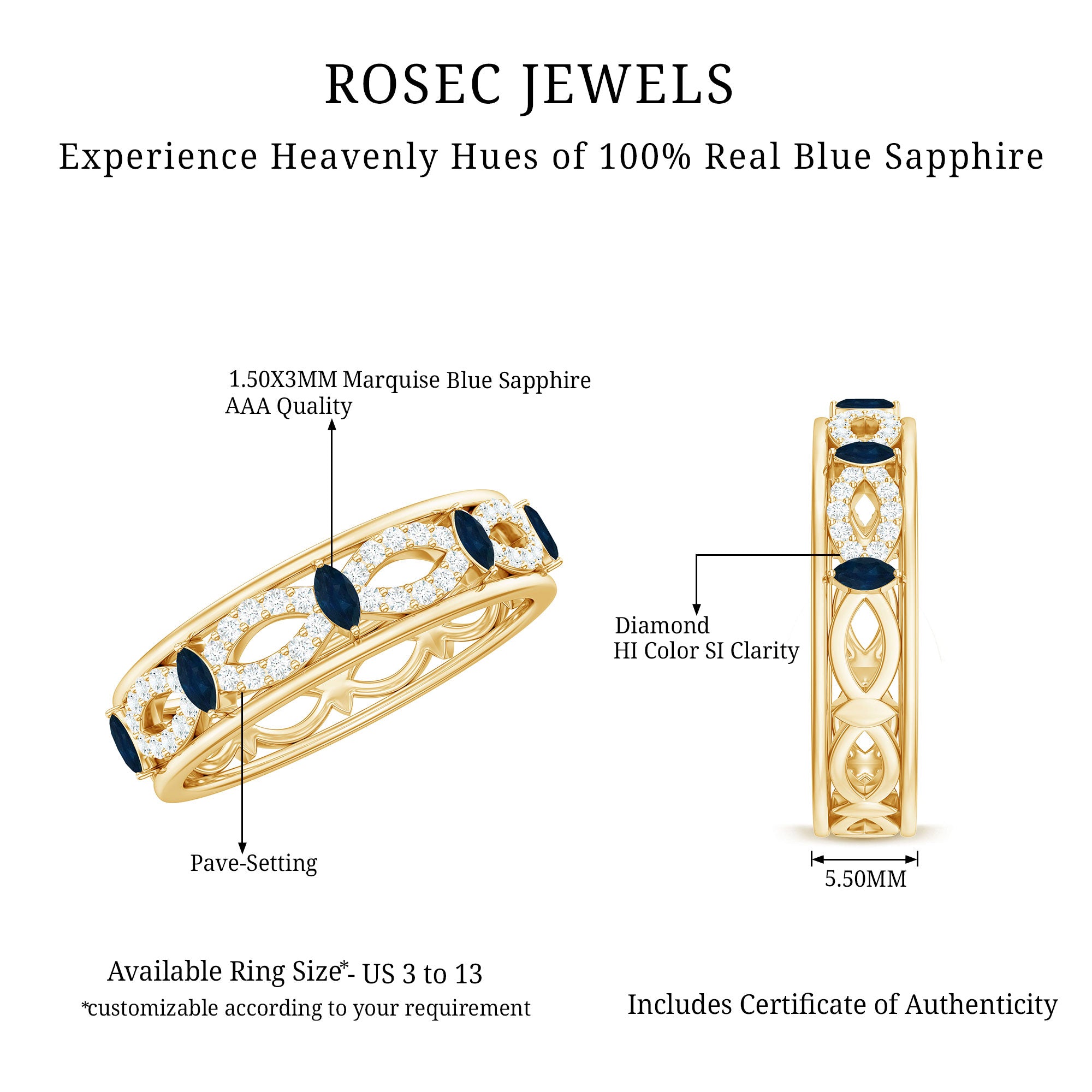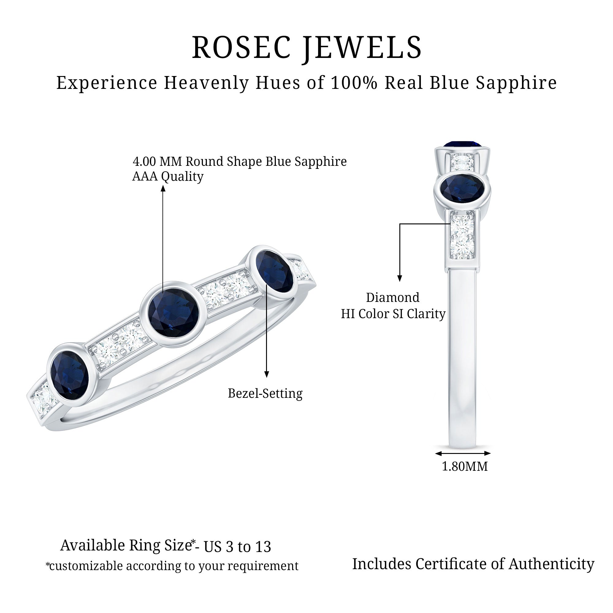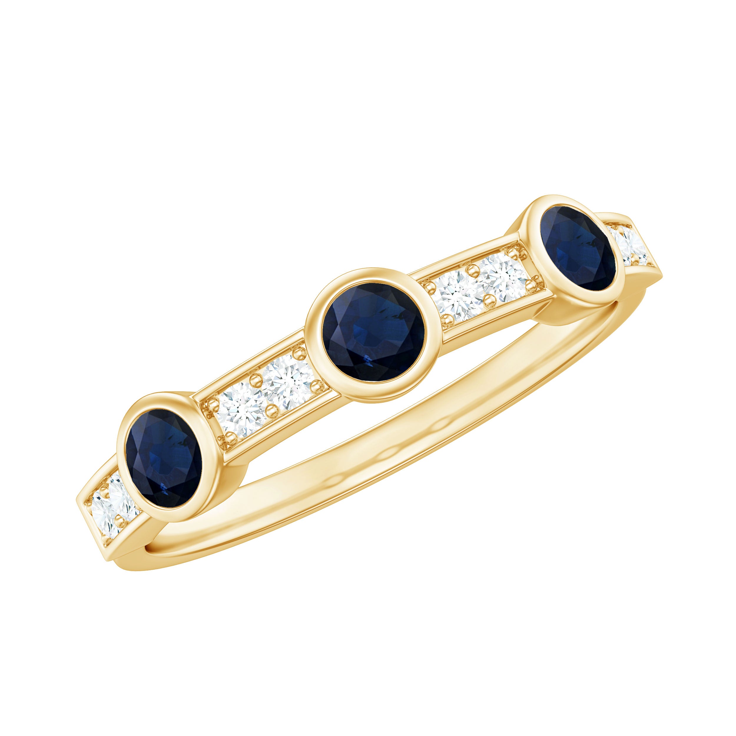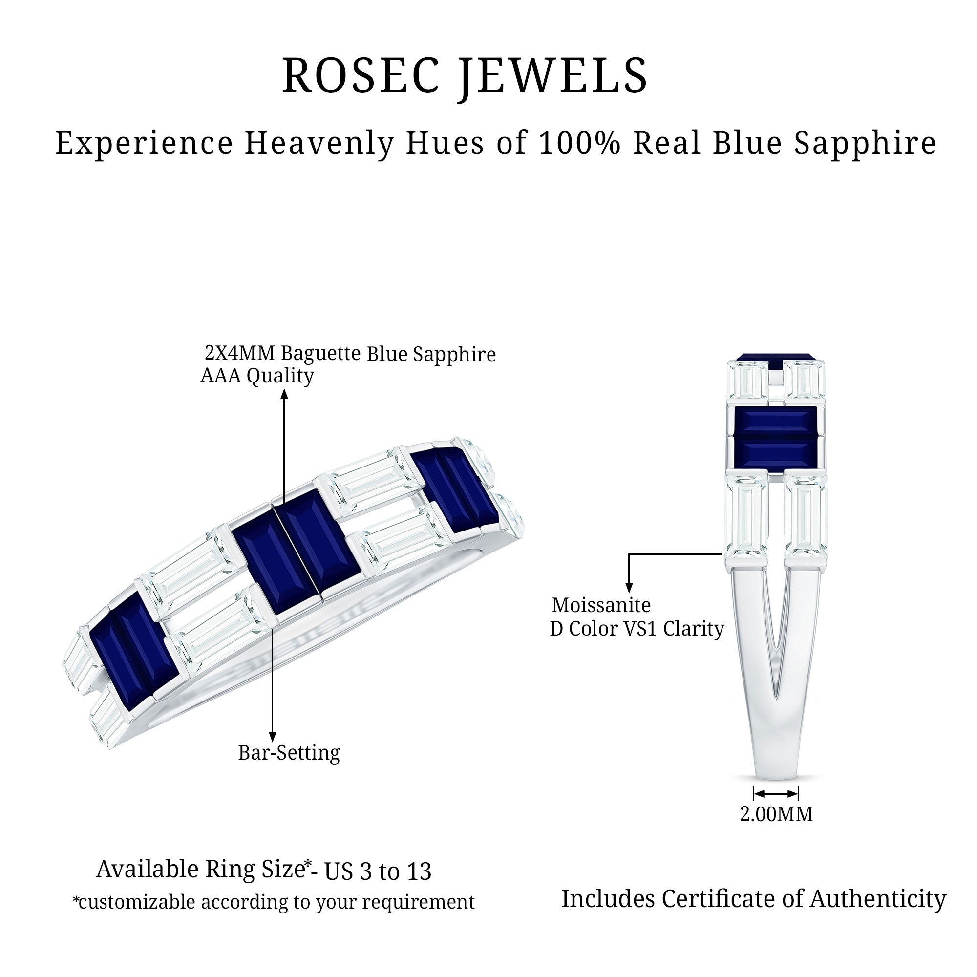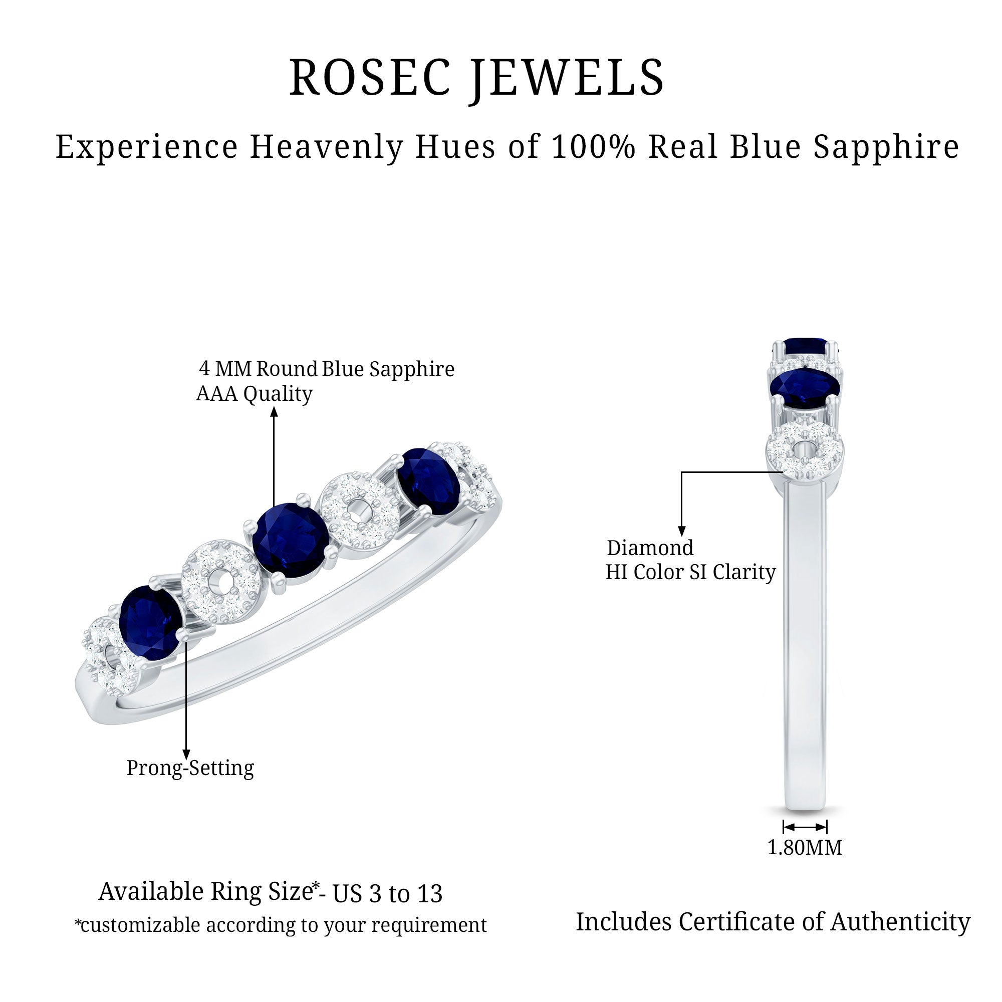 • Half Eternity Wedding Bands: - Eternity bands fill one's relationship with lots of love, affection, and warmth. Out of all the eternity wedding bands, our blue sapphire half-eternity bands are the most popular. Each ring is a stunning piece, either secured in a prong or bezel setting to keep the gemstone on place.