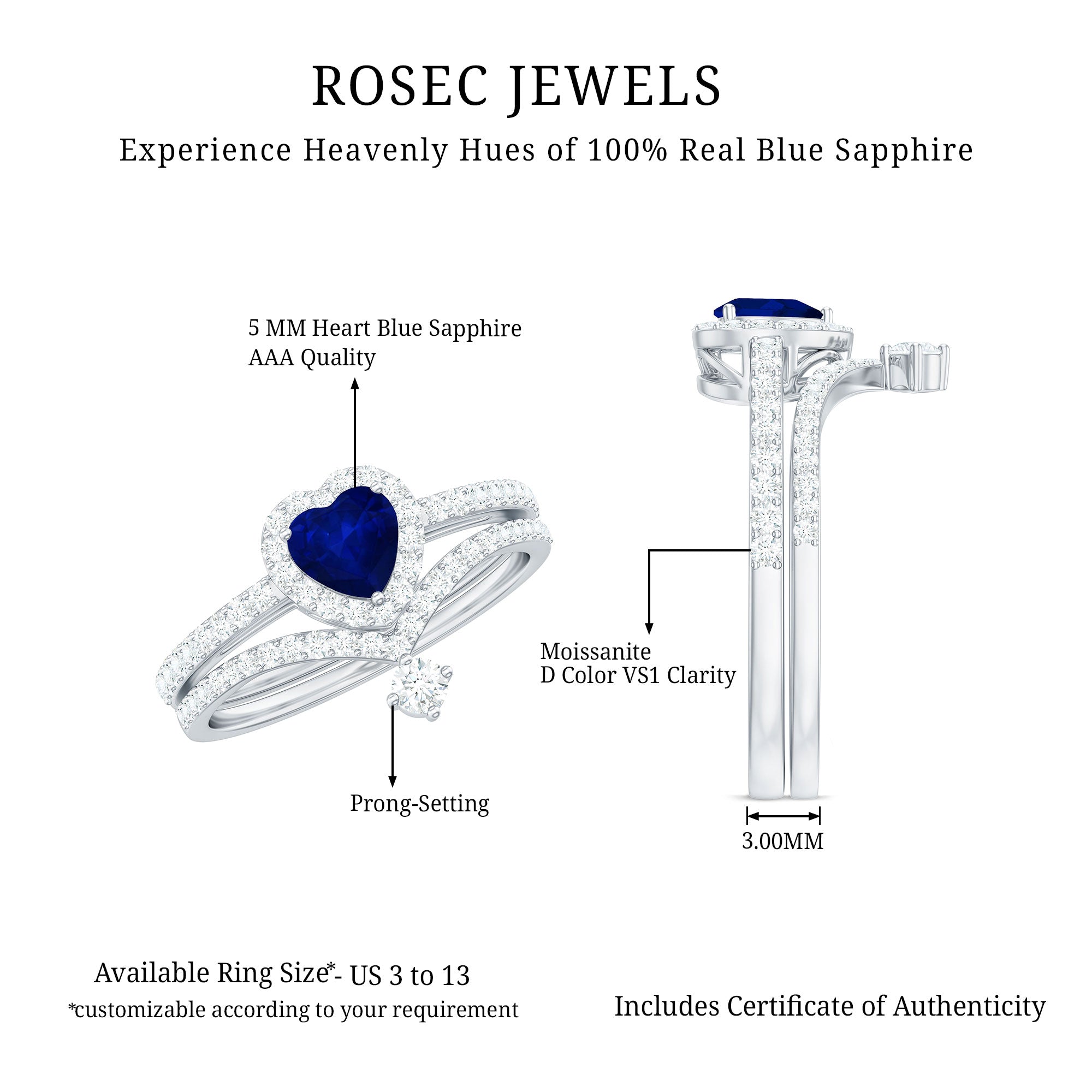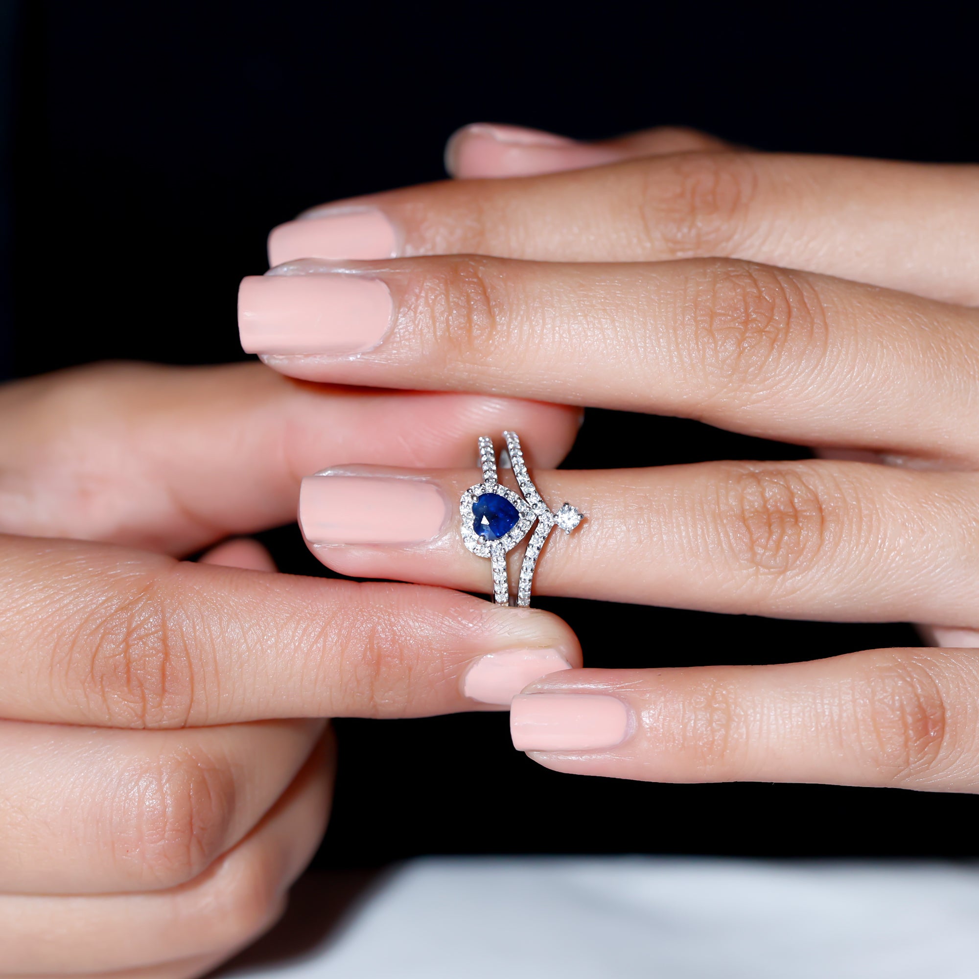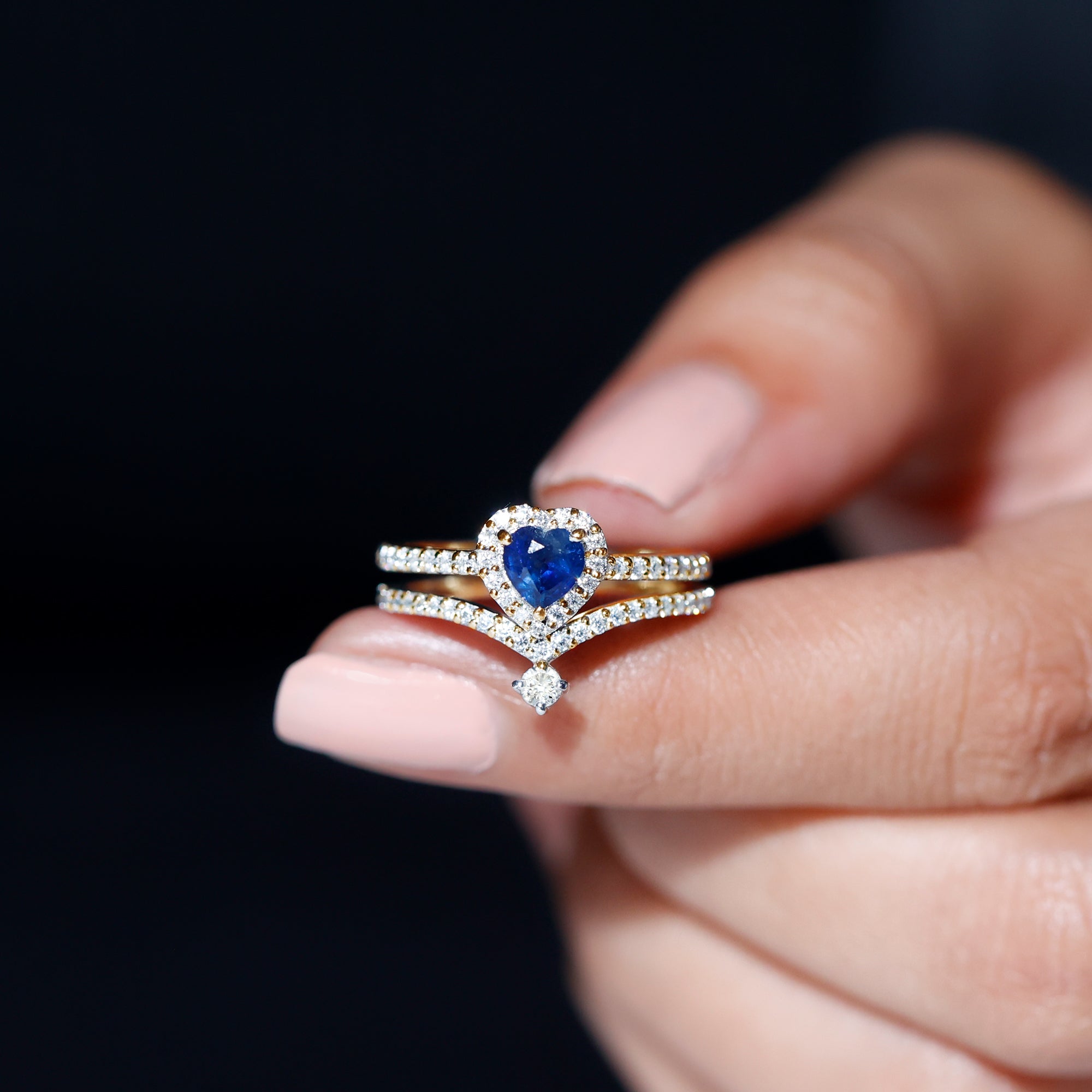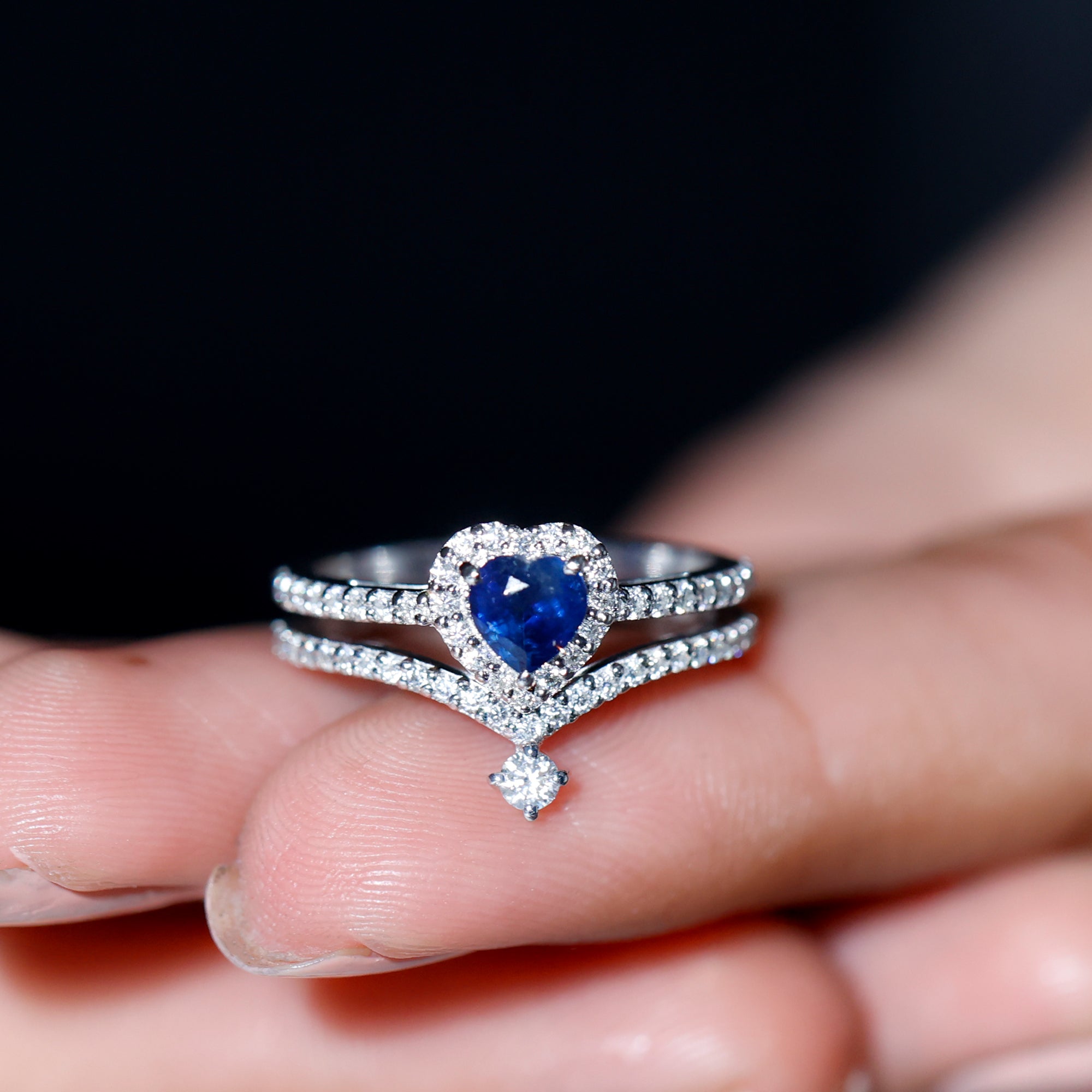 • Wedding Ring Set: - Usually this includes an engagement ring and matching wedding band, both embellished with vibrant blue sapphires. the engagement ring features a blue sapphire as a focal point, some rings are flanked by shimmery diamonds or small sapphires, representing love, purity, and commitment.
