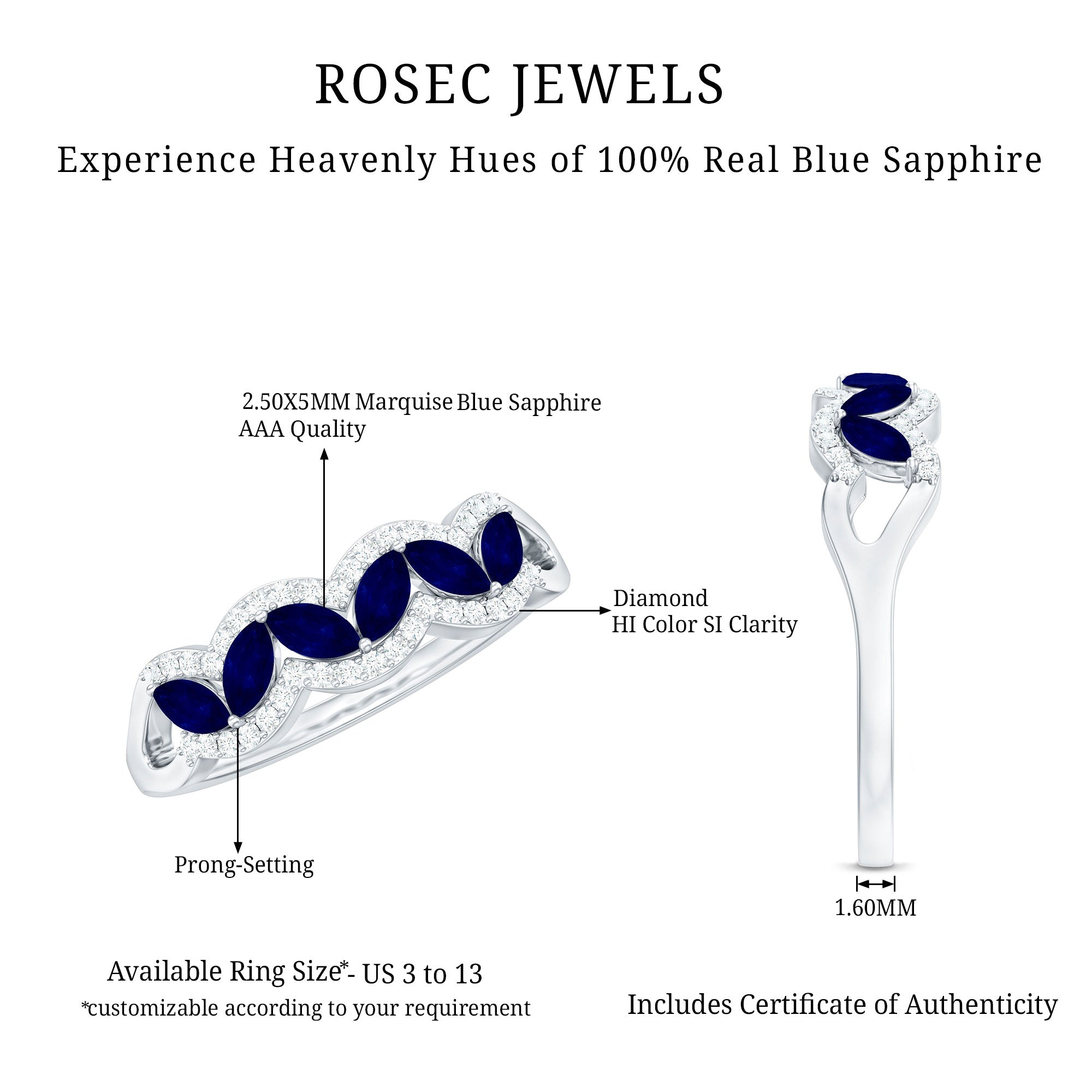 We are selling blue sapphire wedding band from $279 to $1359 as per the designs and side stones. Our jewelry store recognizes as selling fine quality blue sapphire wedding rings for women. Here, you can find the perfect wedding band as per your budget and preferences.