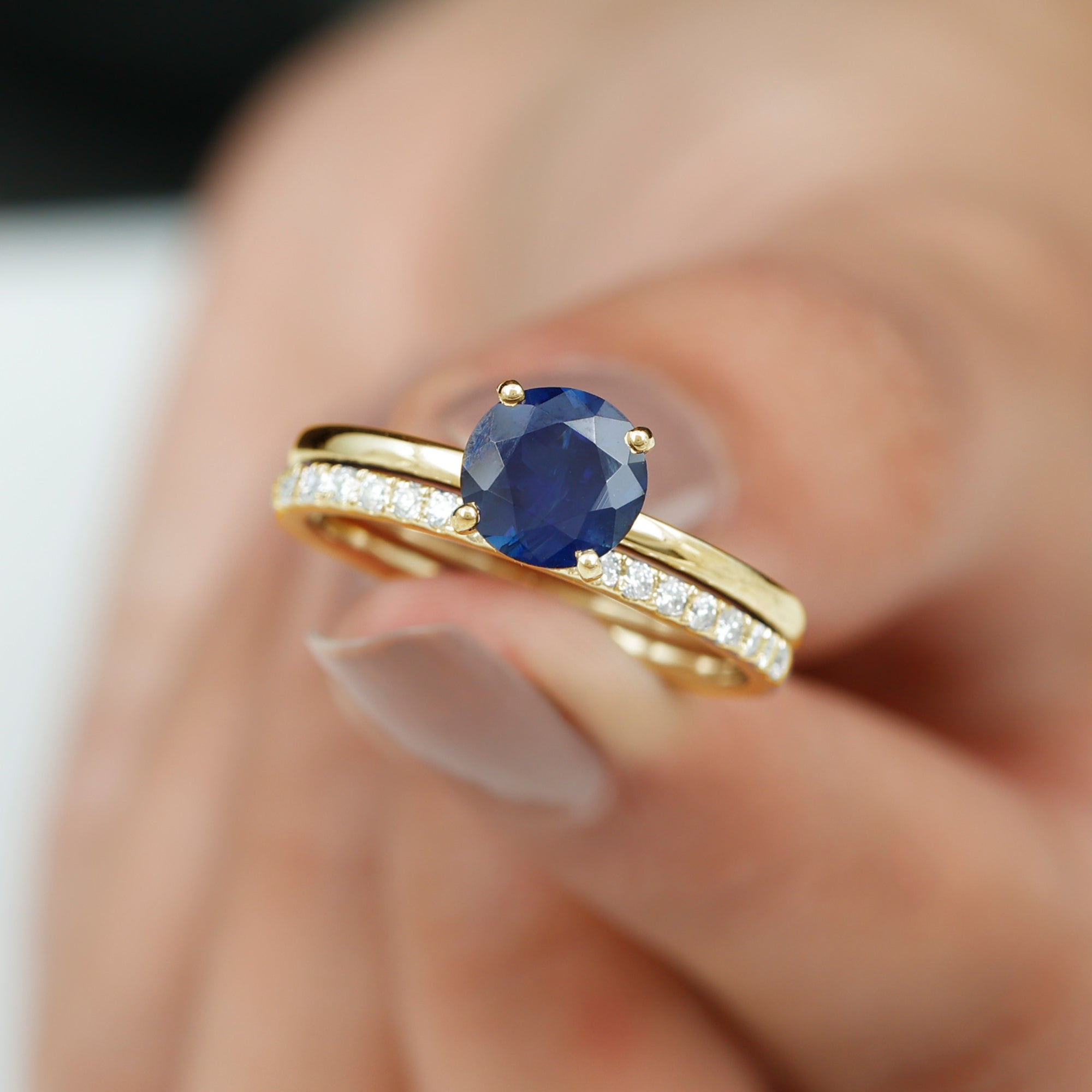 Bridal sets come in various designs, from ornate filigree to contemporary minimalist forms, to fit every couple's preferences and personalities. The identical bands give the finger a seamless appearance, highlighting the unity of the couple's commitment.