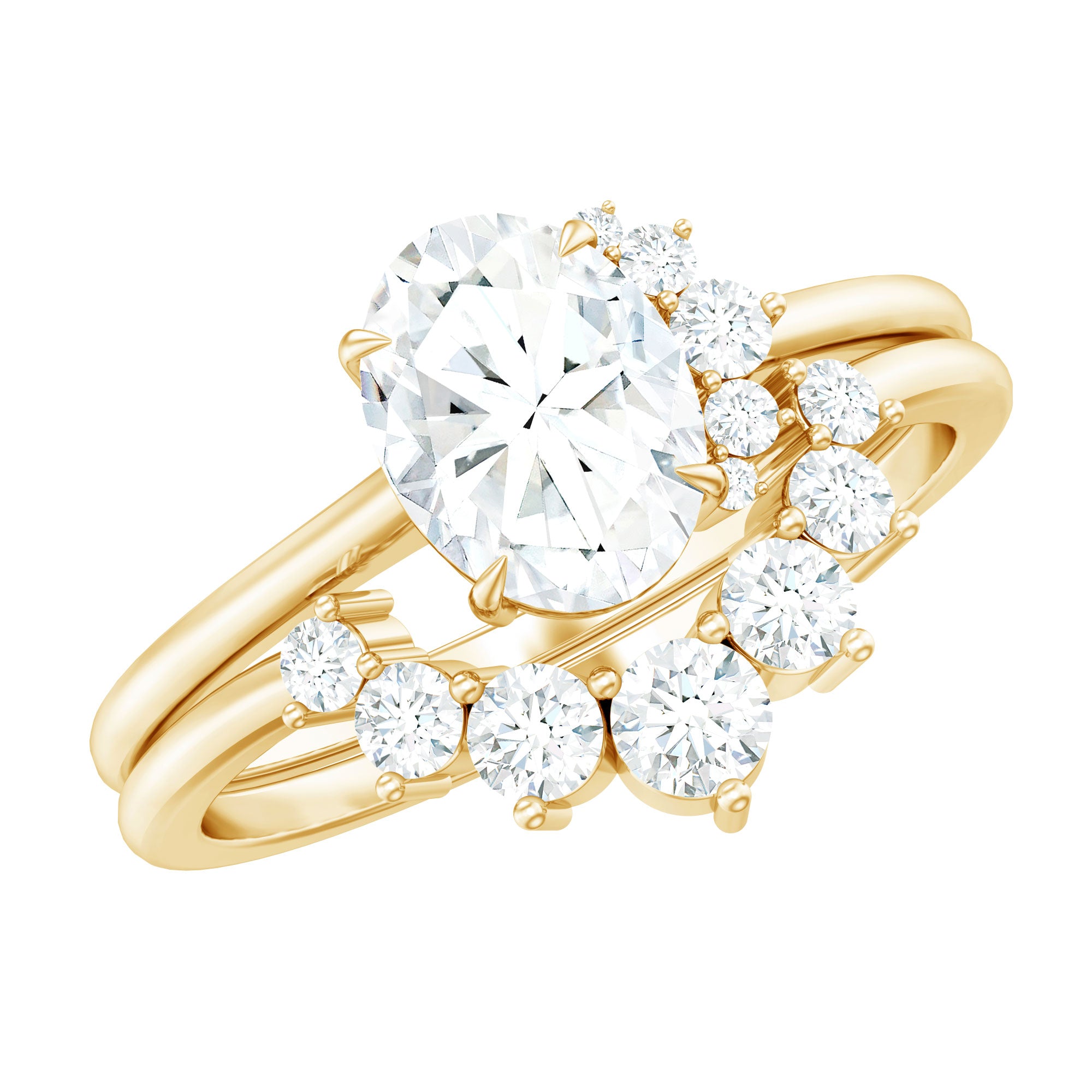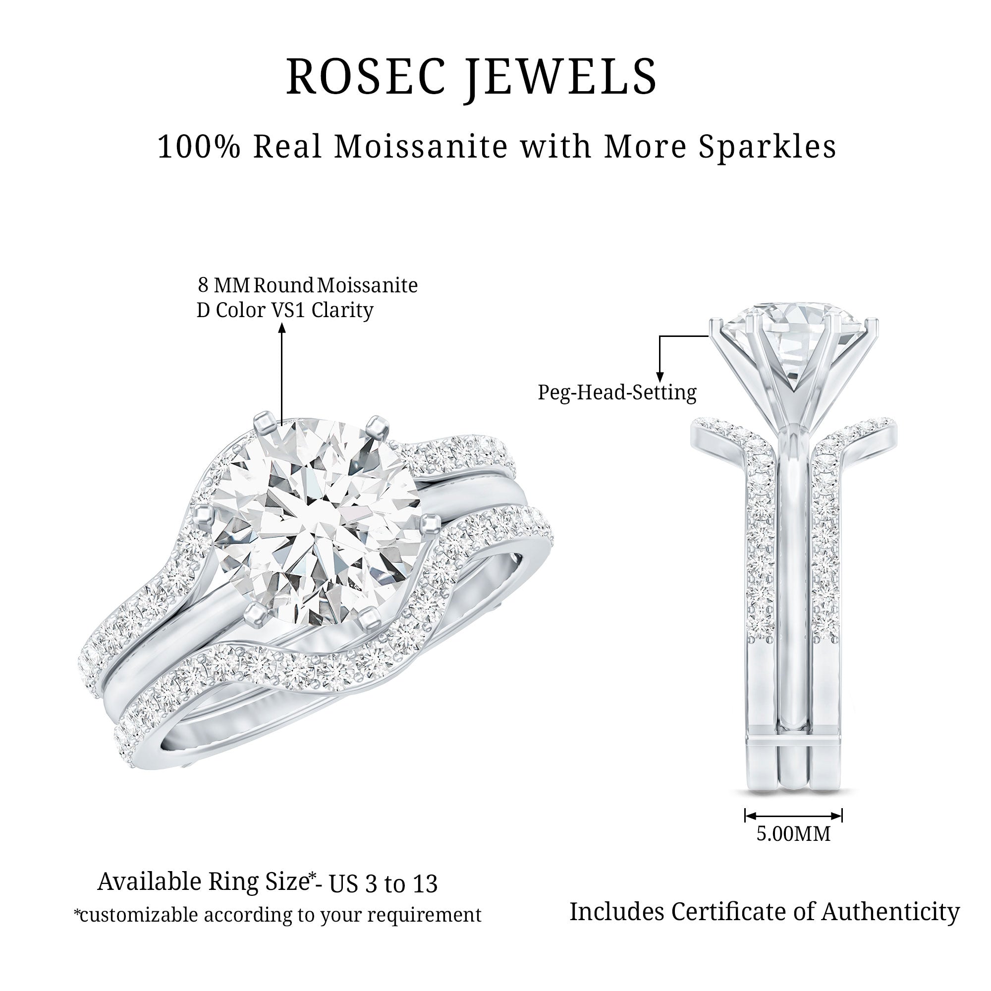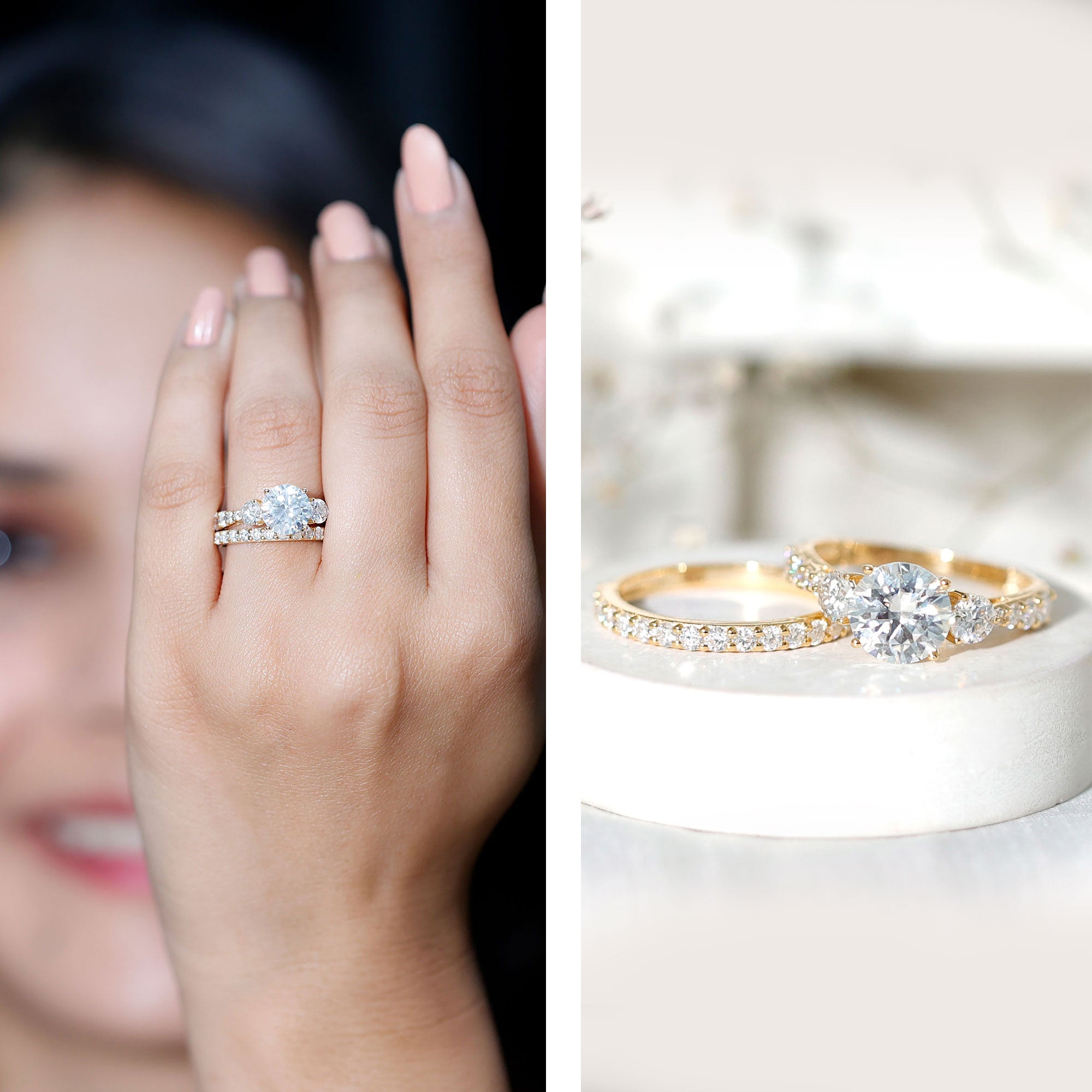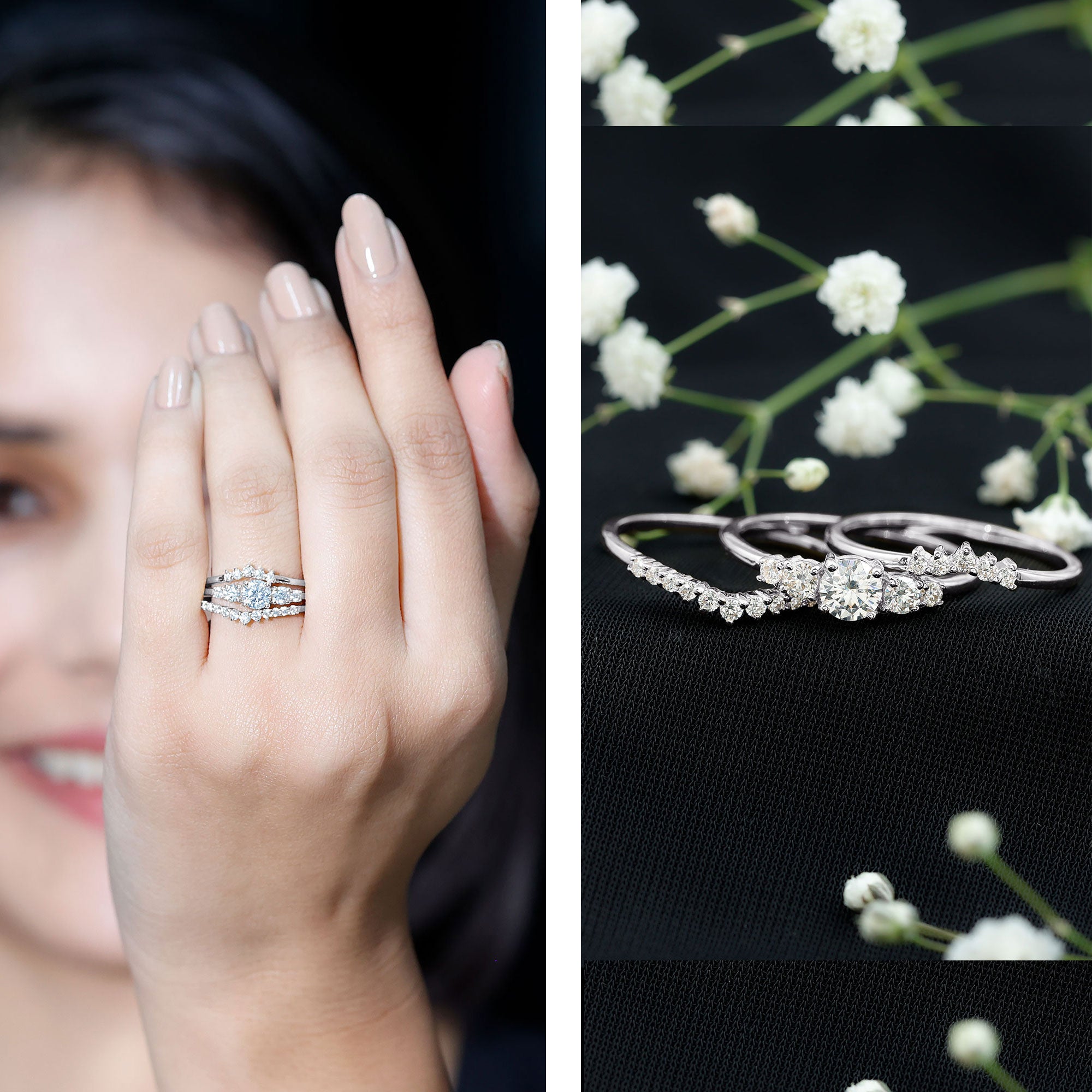 Bridal sets are practical and convenient since they eliminate the need to look for a separate wedding band. Couples can save time and guarantee a unified and complimentary design by buying a pre-matched set.