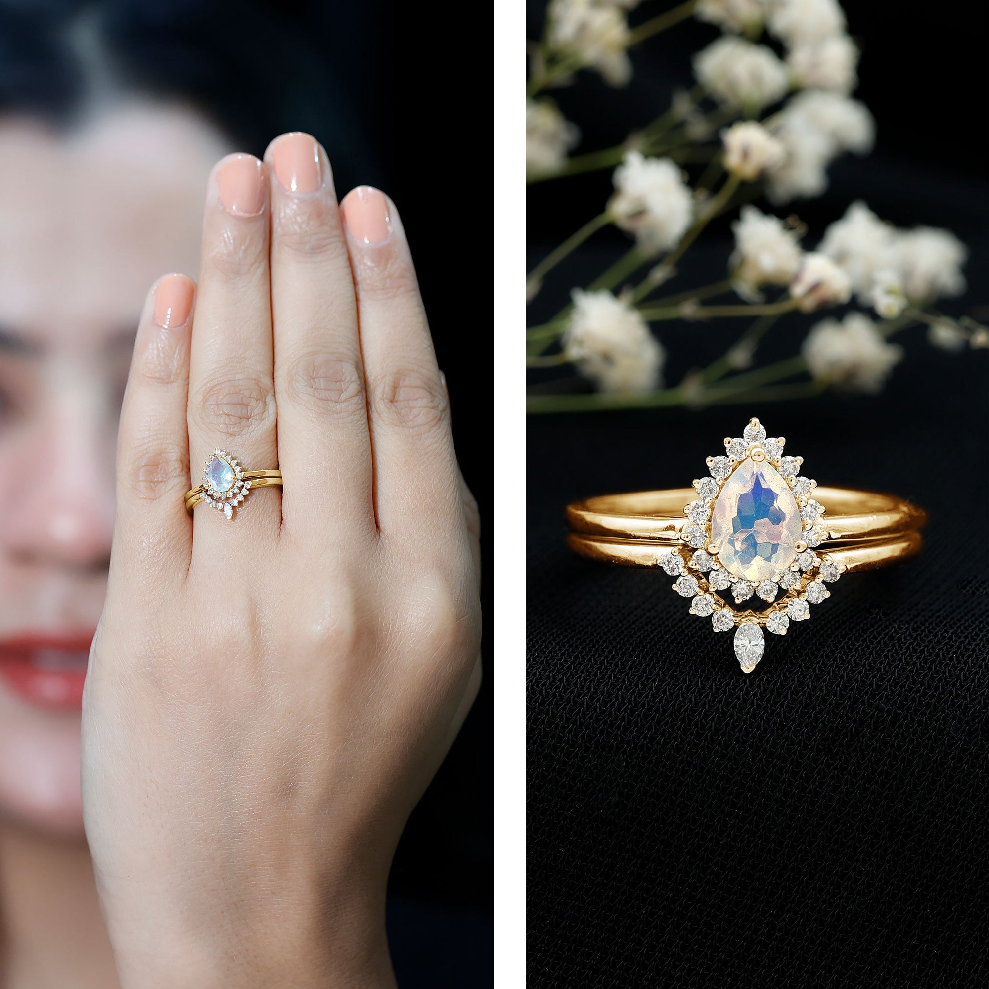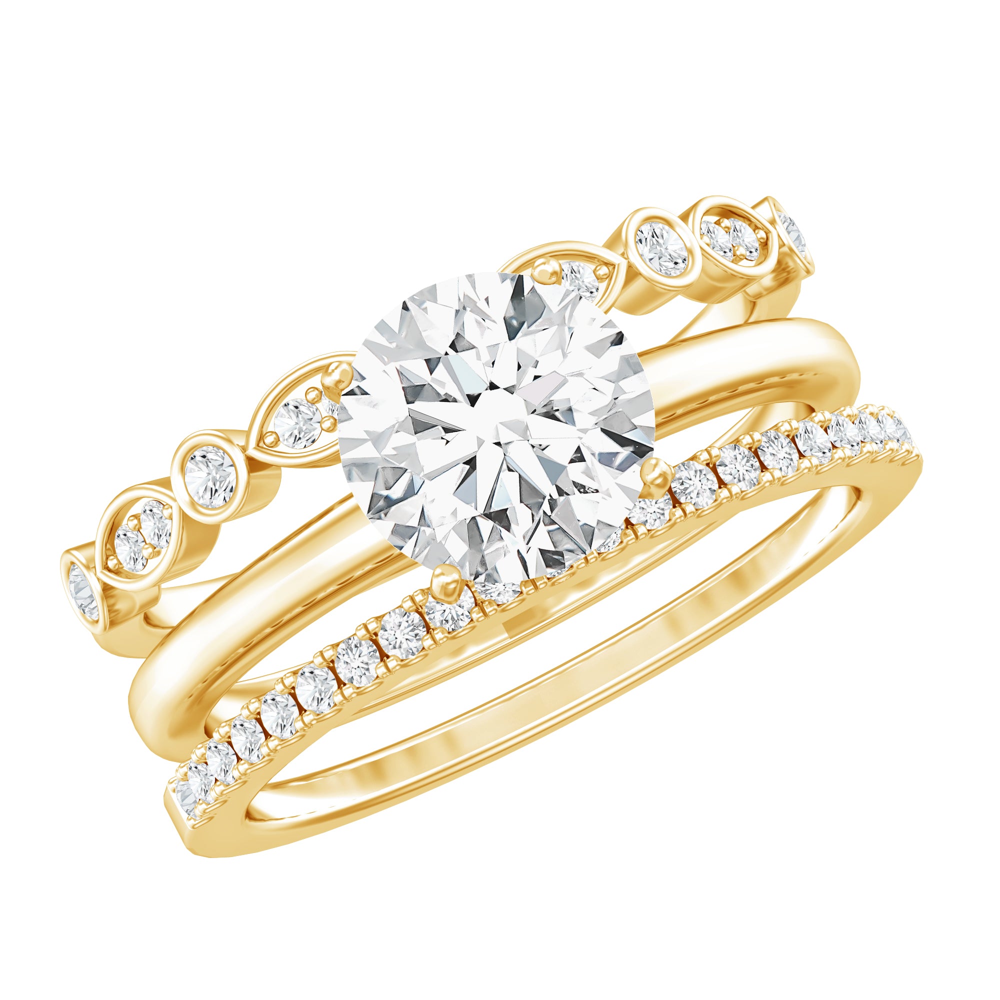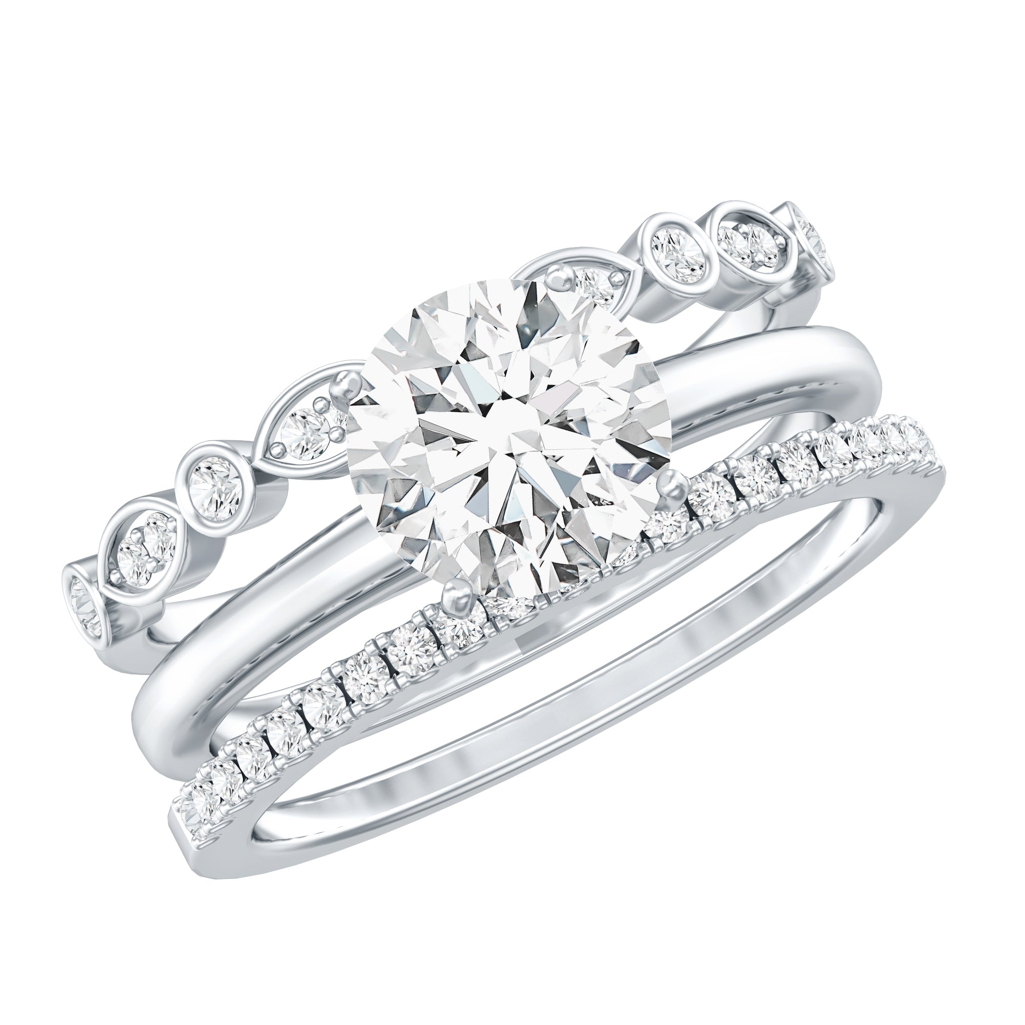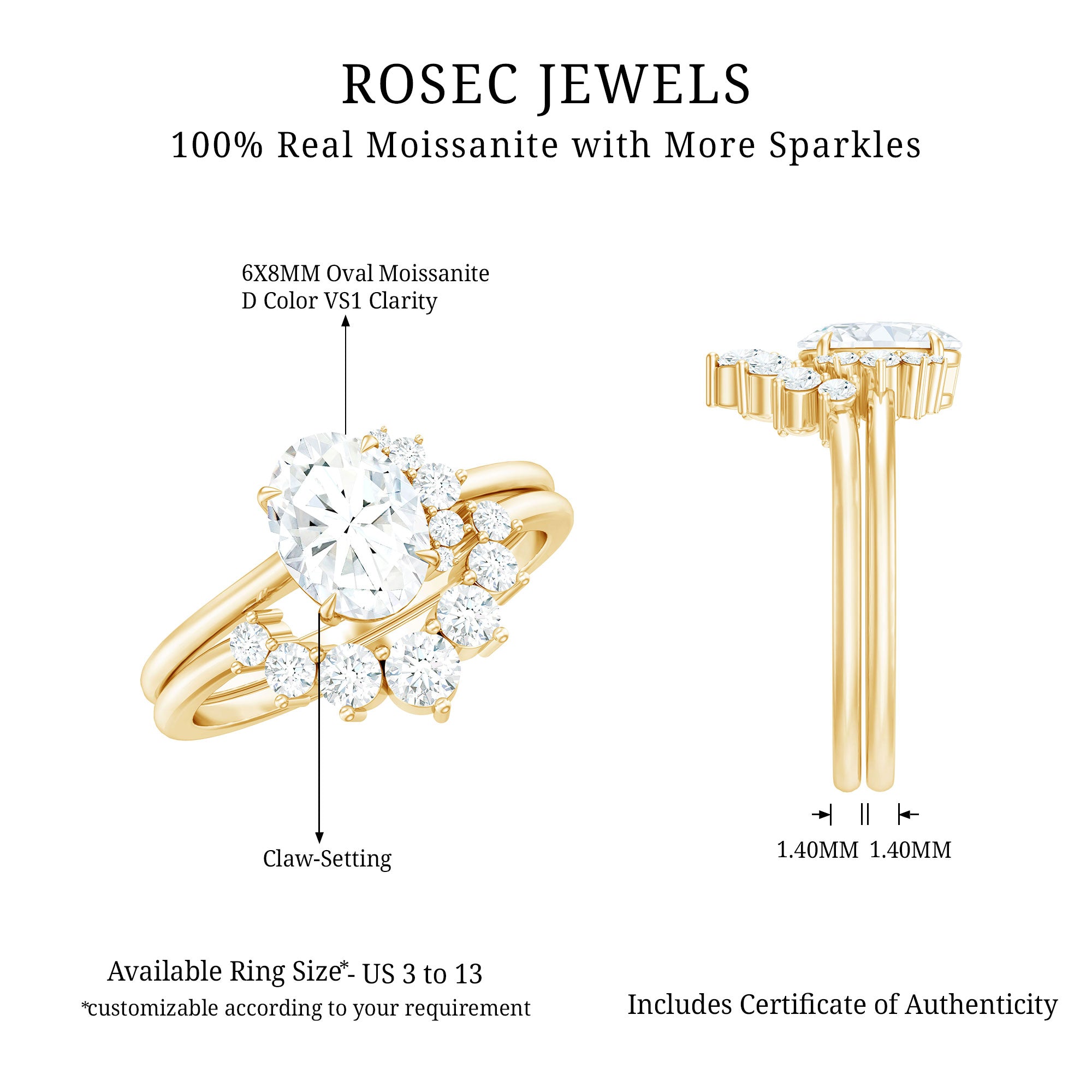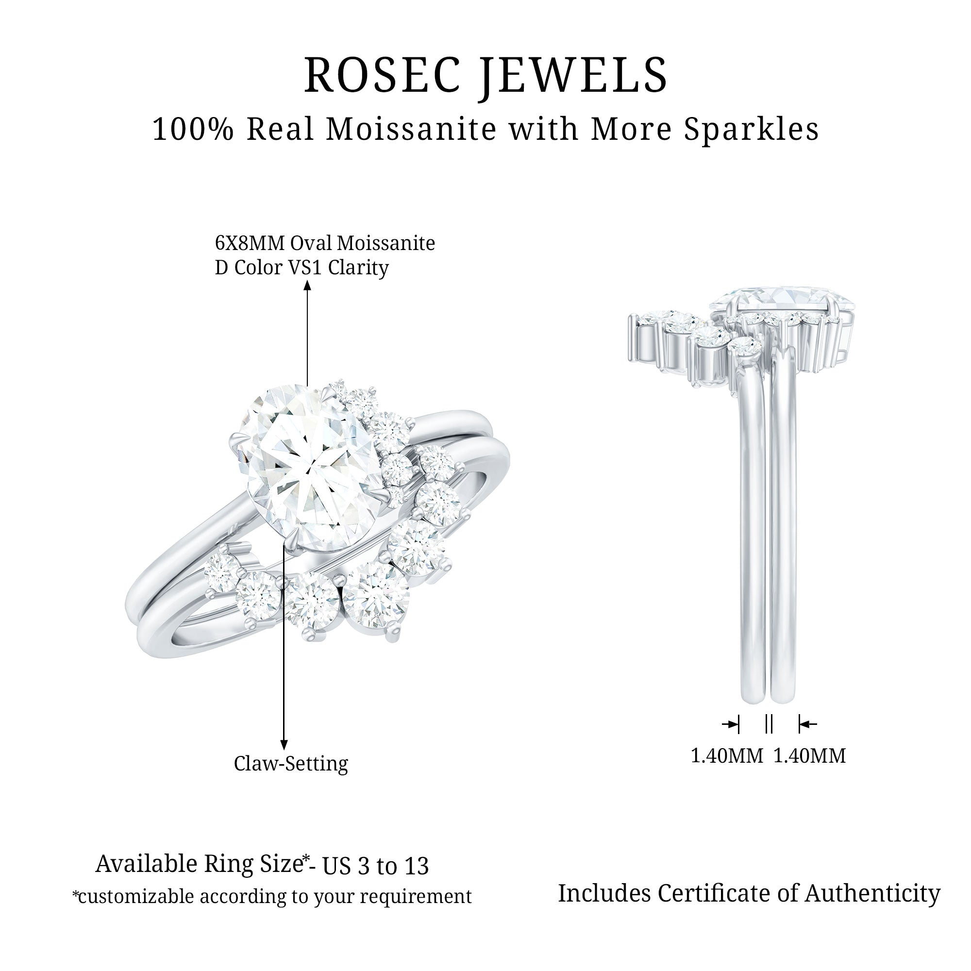 Bridal sets are practical and convenient since they eliminate the need to look for a separate wedding band. Couples can save time and guarantee a unified and complimentary design by buying a pre-matched set.