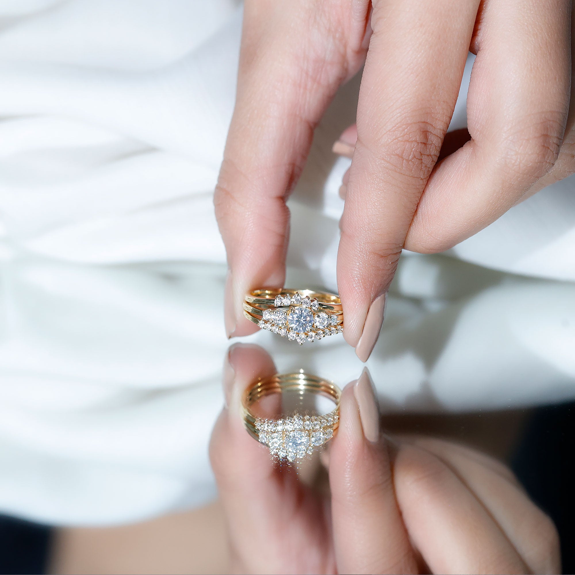 Rings are carefully considered when designing engagement wedding ring sets. The wedding band and engagement ring are expertly designed to contrast one another, ensuring a united and harmonious aesthetic in engagement ring sets for women.