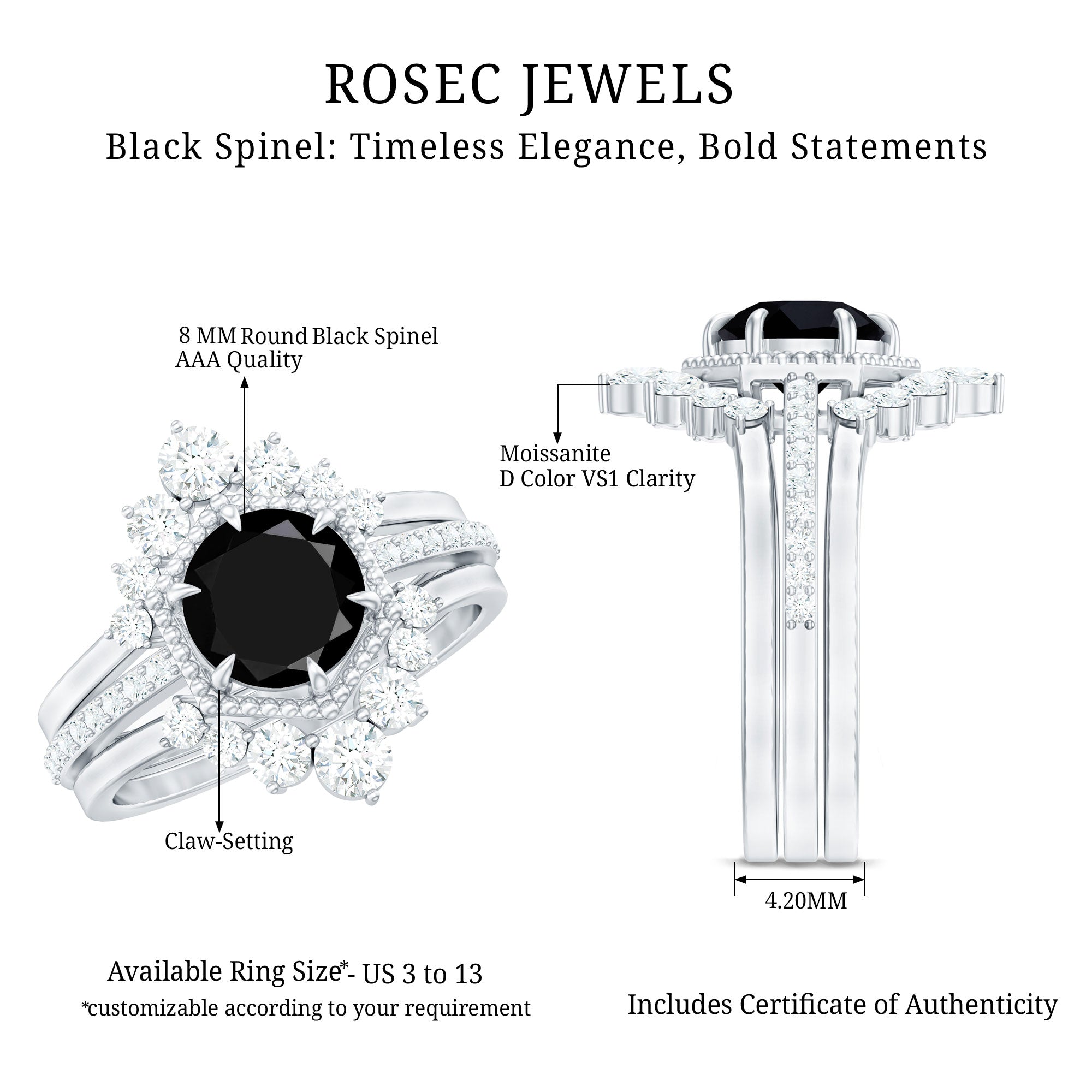 The ability to engrave particular words or dates further gives the set a personalized touch. Thanks to this customization, the bridal set will uniquely reflect the couple's love story.