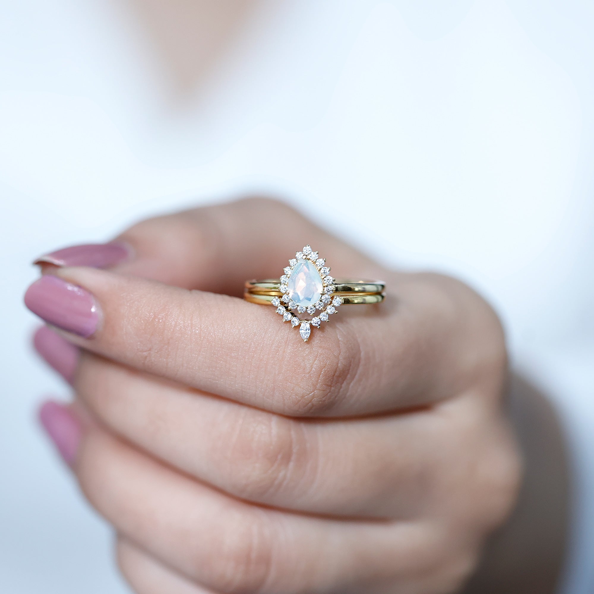 Personal taste, finger shape, and general aesthetic preferences should all be considered when choosing a gemstone form for an engagement ring in a bridal set. Each form has distinct qualities that can add to the ring's overall beauty. The metal and setting style selections should match the gemstone shape to create a cohesive, eye-catching bridal set.