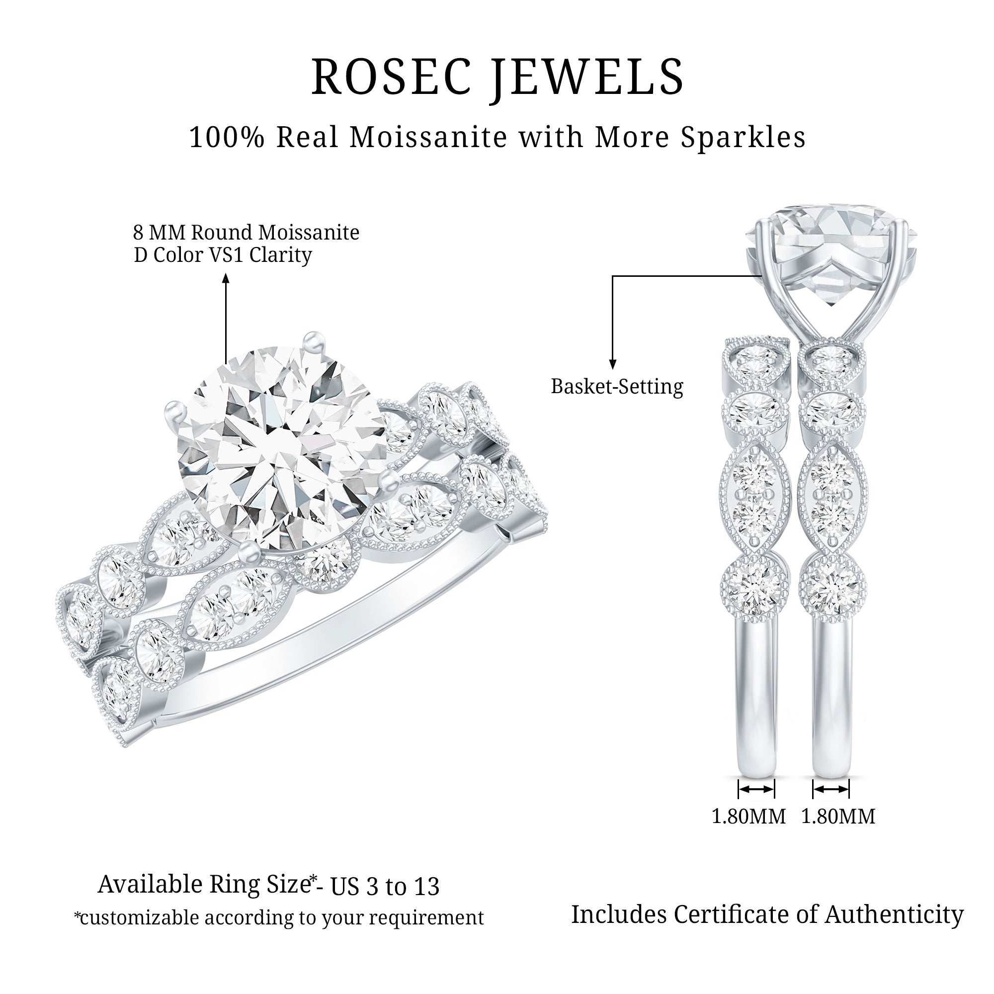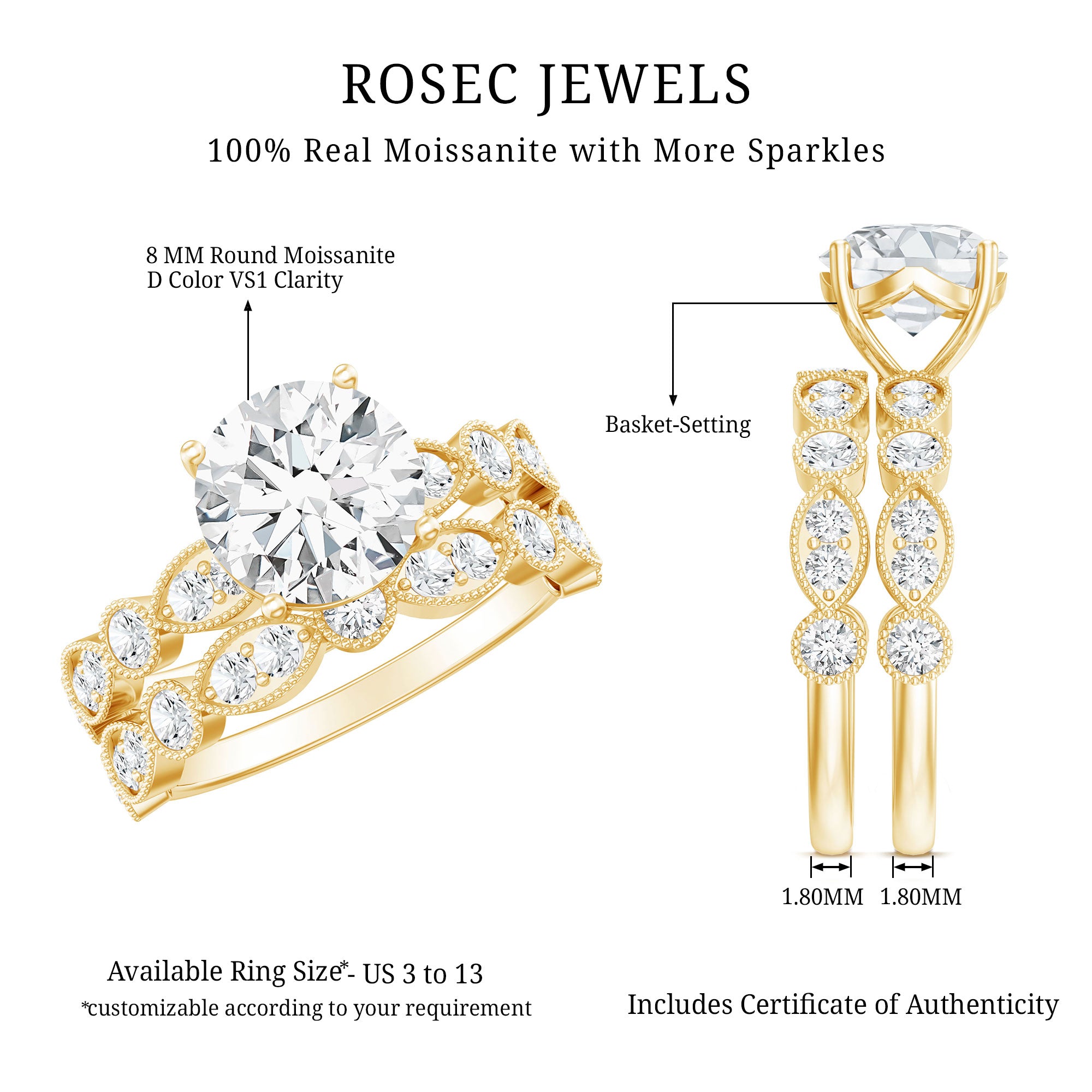 Want exquisite Bridal Sets Engagement Rings for your dream wedding? Check out the marquee collection at Rosec Jewels and select your dream bridal set!
