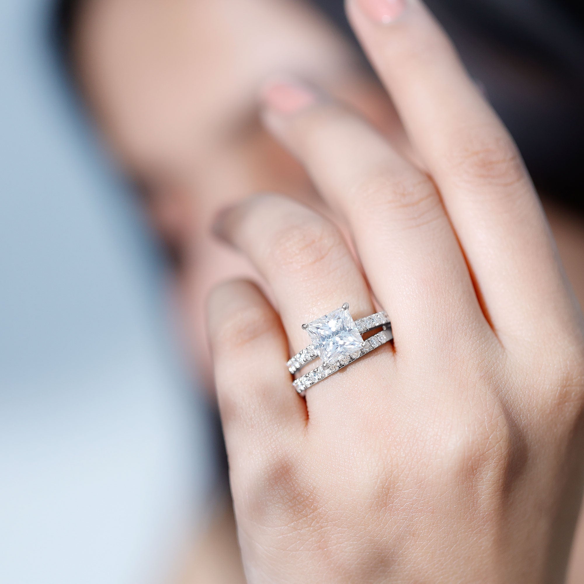 Bridal sets come in various designs, from ornate filigree to contemporary minimalist forms, to fit every couple's preferences and personalities. The identical bands give the finger a seamless appearance, highlighting the unity of the couple's commitment.