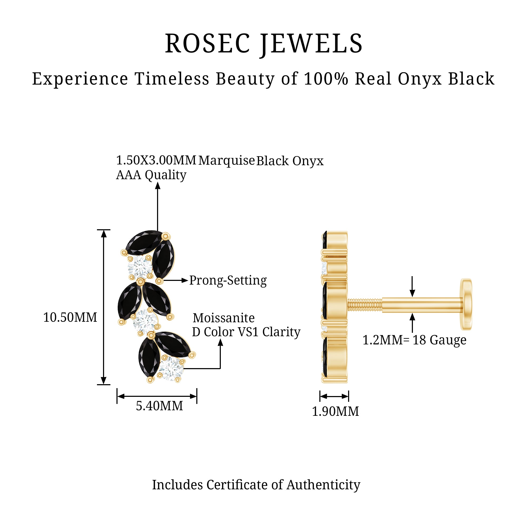 Exceptional Quality: We expertly crafted our beautiful cartilage jewelry pieces from high-quality materials like yellow gold and white gold. We’ve 100% Real and Certified Diamond and Colored Gemstones to ensure long-lasting shine and durability, making them a stunning addition to your jewelry collection.