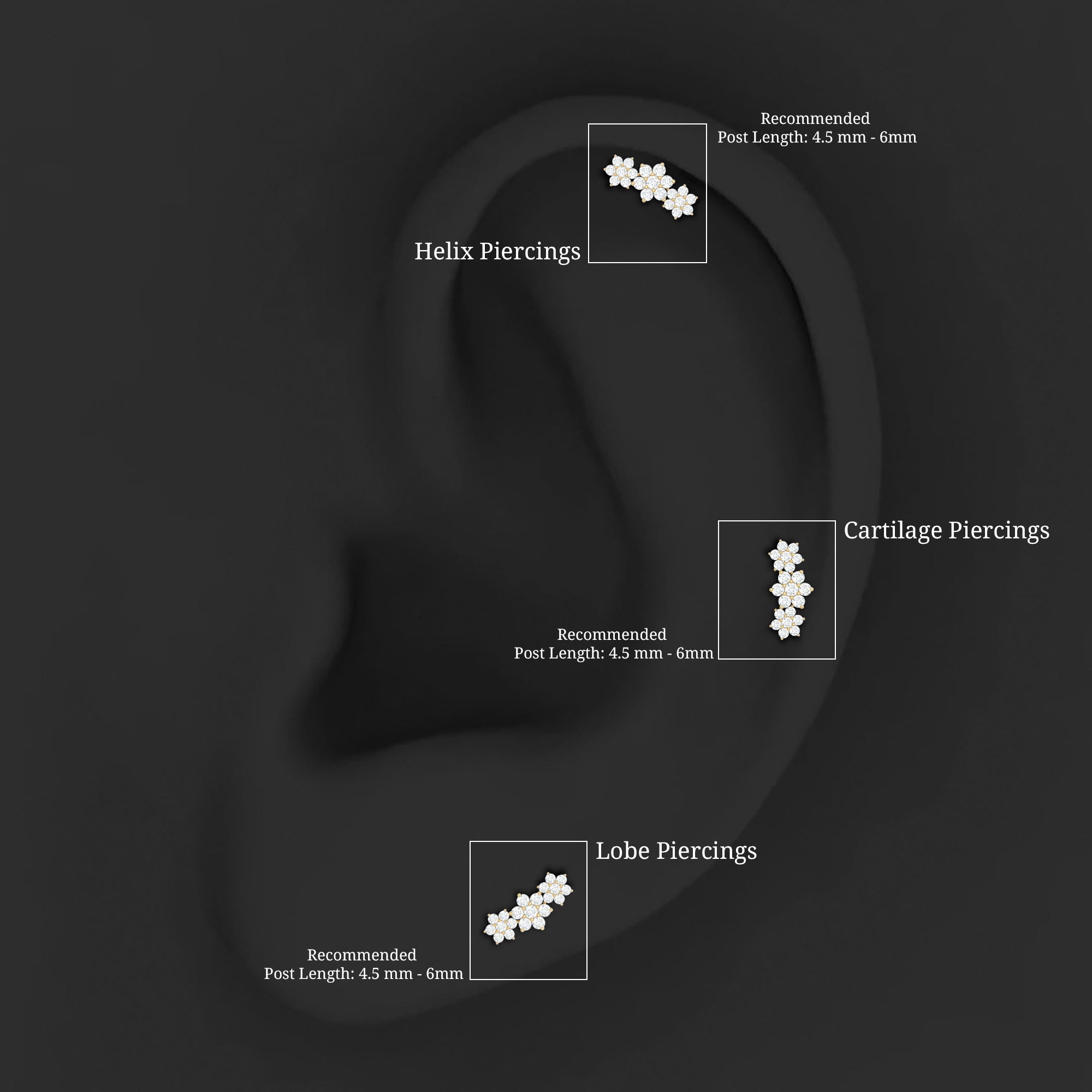 Helix Earrings | Conch Earrings | Tragus Earrings | Nose Piercing Jewelry | Diamond Ear Piercing Jewelry | Moissanite Ear Piercing Jewelry | Pearl Ear Piercing Jewelry