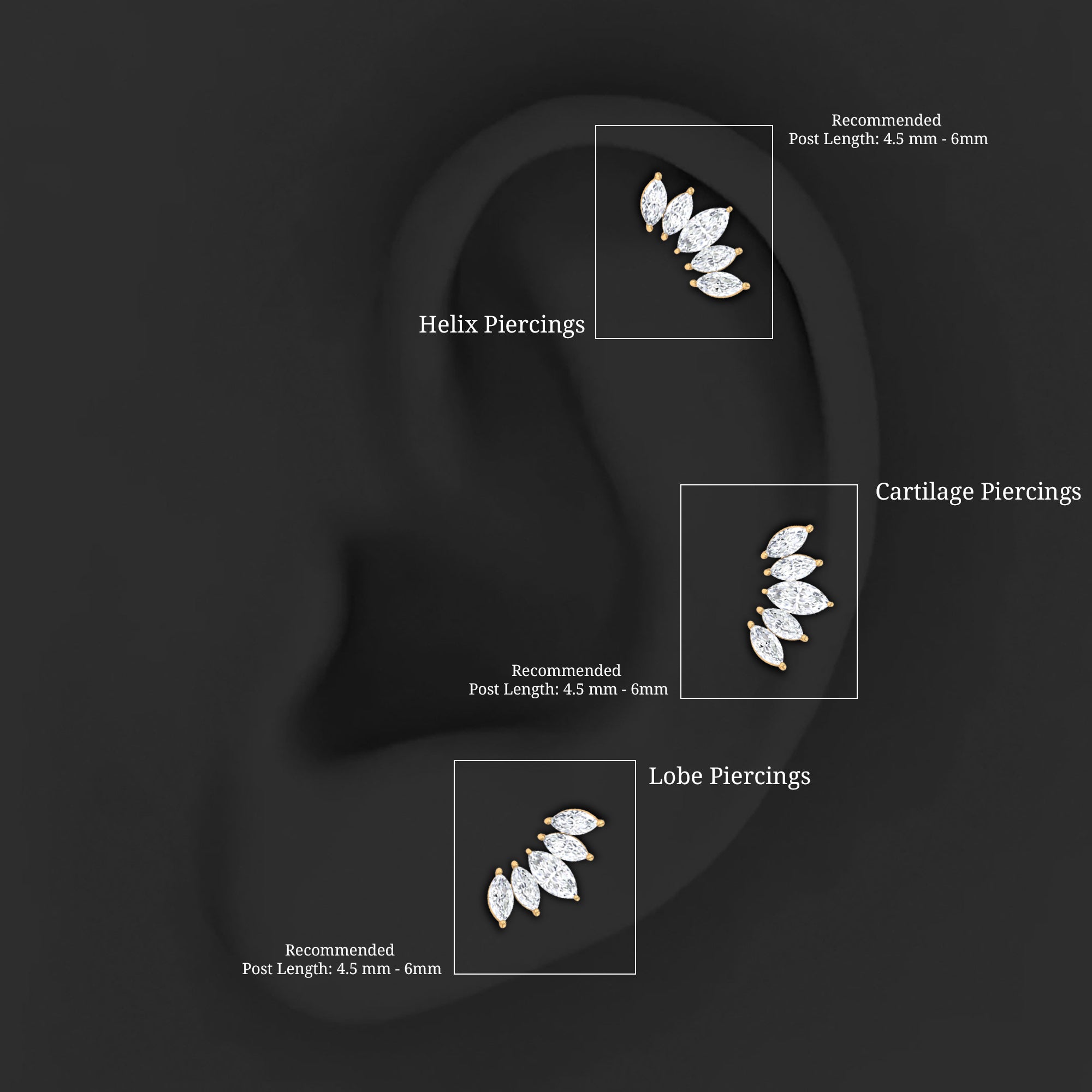 Helix Earrings | Conch Earrings | Tragus Earrings | Nose Piercing Jewelry | Diamond Ear Piercing Jewelry | Moissanite Ear Piercing Jewelry | Pearl Ear Piercing Jewelry