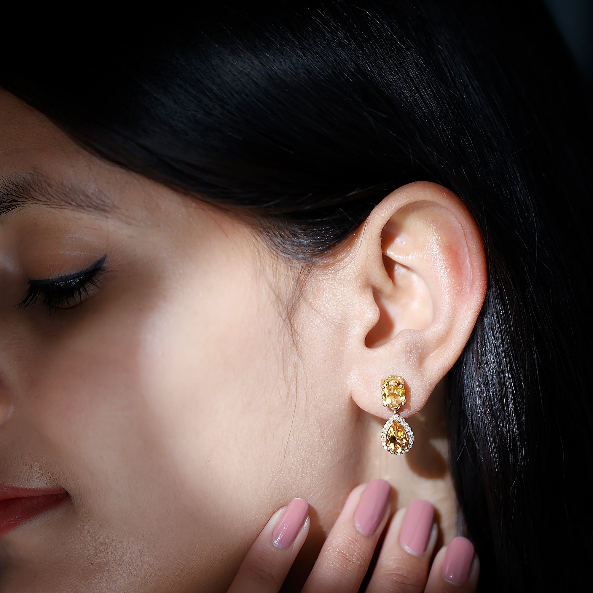 Feminine cum trendy, Citrine Drop Earrings drop below the earlobe while highlighting the beauty of the centerpiece of Citrine. The length of the hanger that secures these earrings to the earlobe varies from short and subtle to long and dramatic. So, it is safe to say that they strike the perfect balance between fancy and formal, which allows you to wear them practically anywhere.
