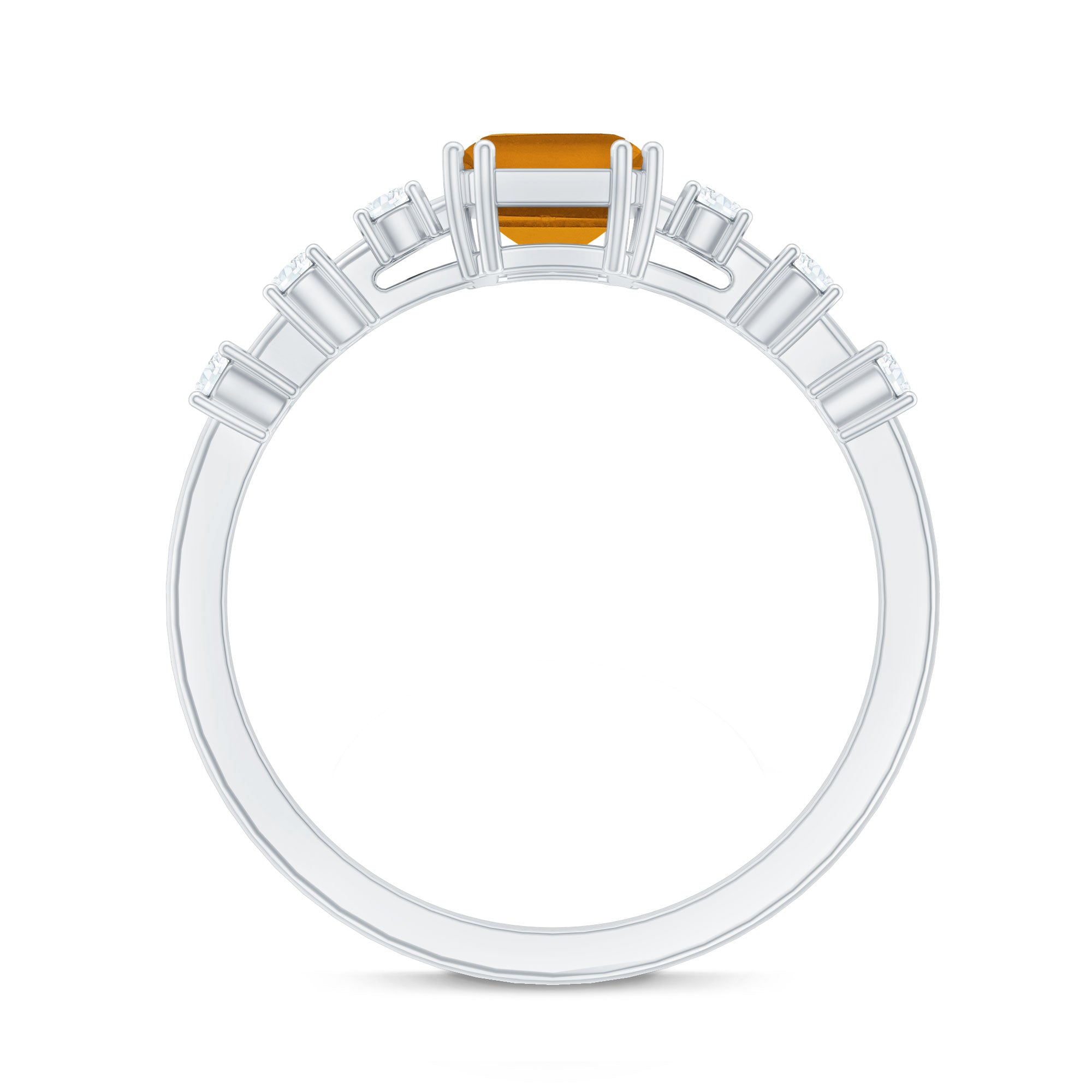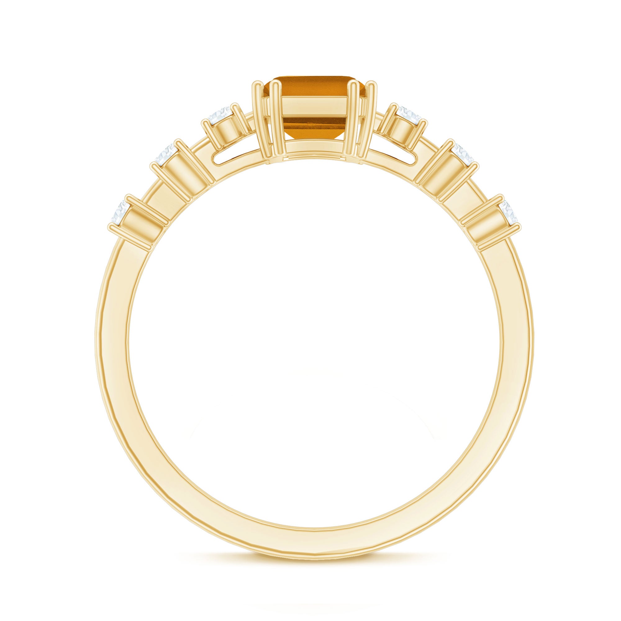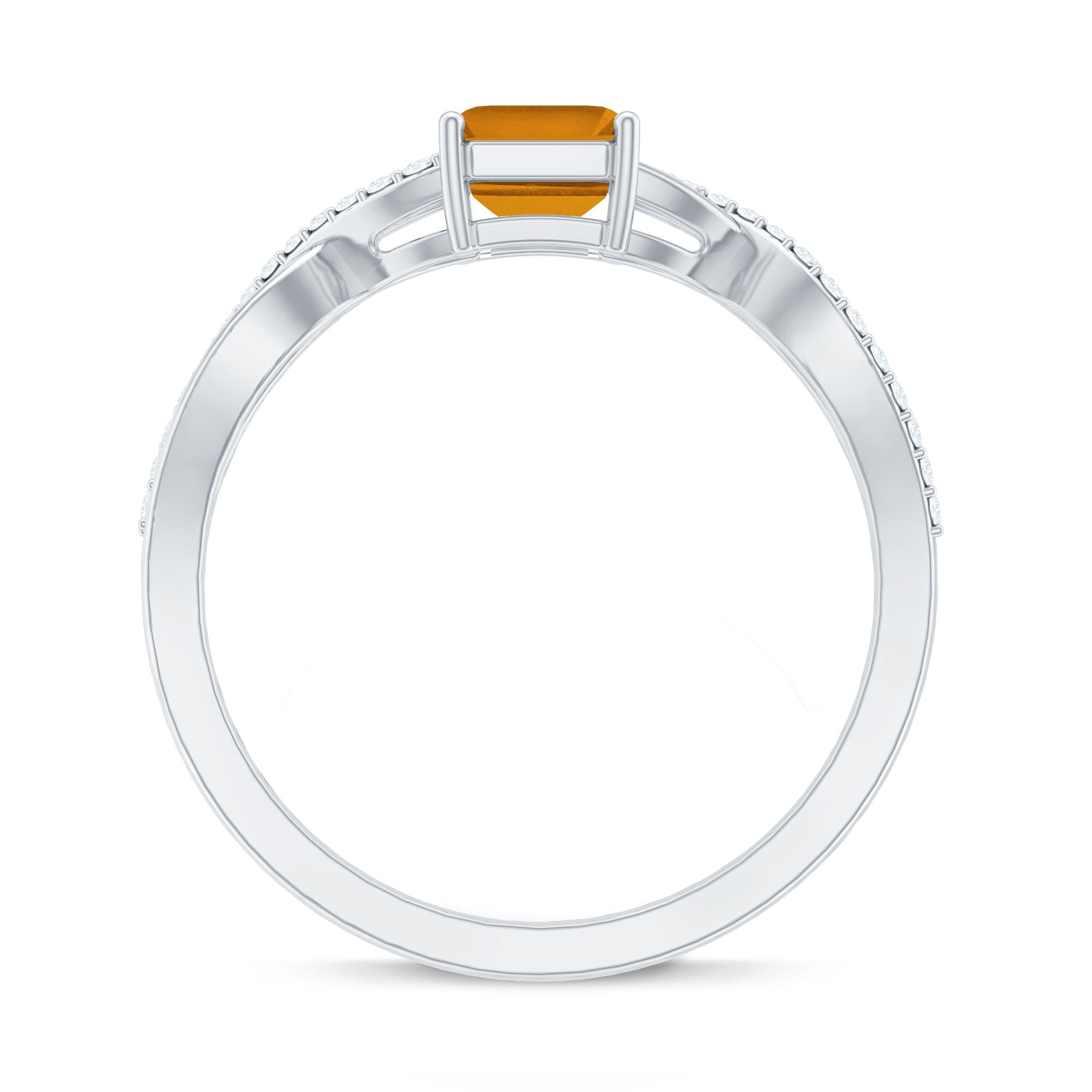 True to what the term ‘Solitaire’ suggests, this ring style is mounted with the Centerpiece of Citrine that stands all alone. Moreover, the beauty of Citrine here is showcased the most thanks to its enormous size of 6 MM or more. A Citrine Solitaire Ring makes for one of the most timeless and versatile engagement rings out there, owing to the many shapes it is fashioned with. While a Round or Oval Citrine Engagement Ring stands out for its sophisticated appeal, the one fashioned with Pear, Marquise, or Princess Cut Citrine is meant for couples who fancy a trendy touch. On the other hand, if you’re someone who likes grand gestures of love, a Cushion, Asscher, or Cushion Cut Citrine Ring works best.