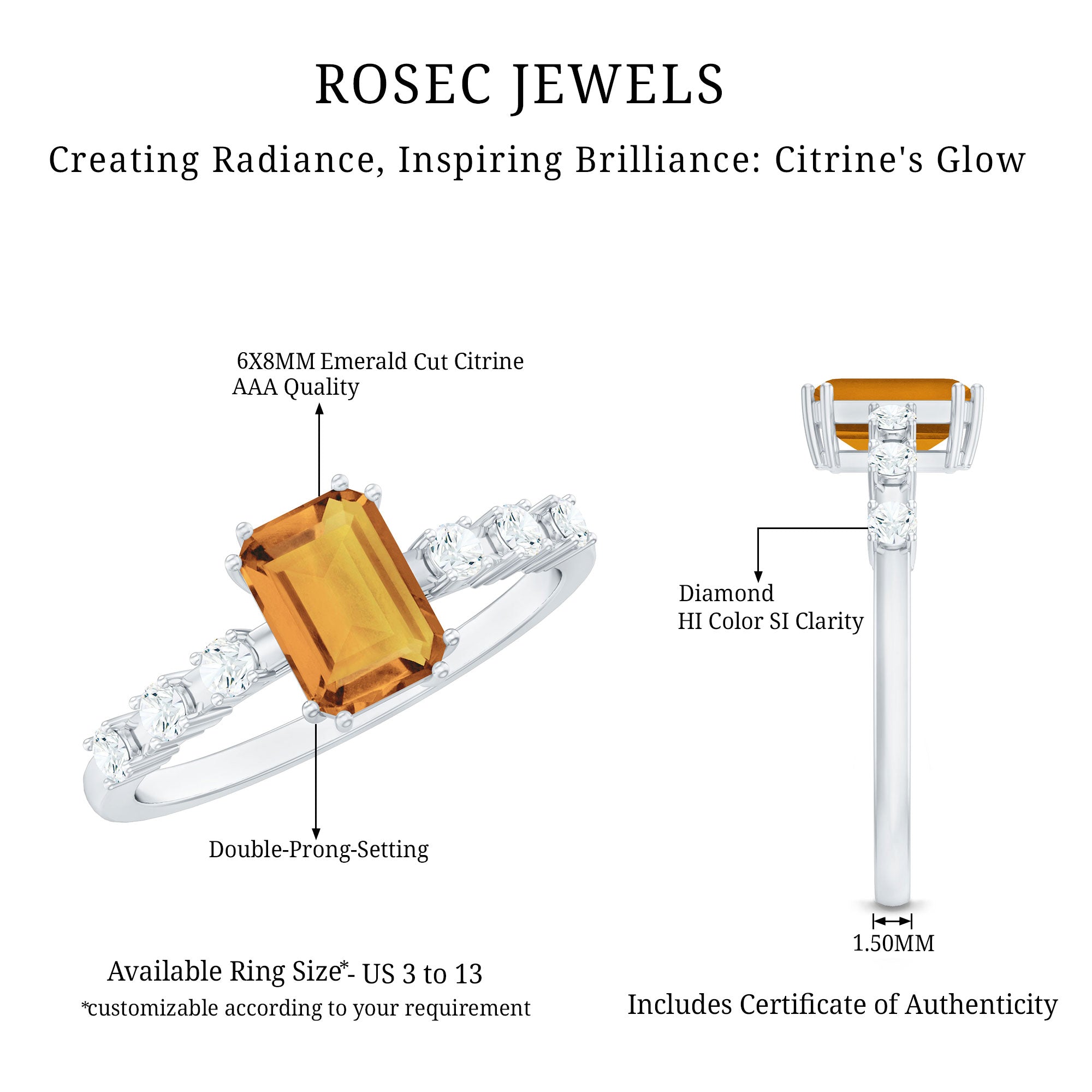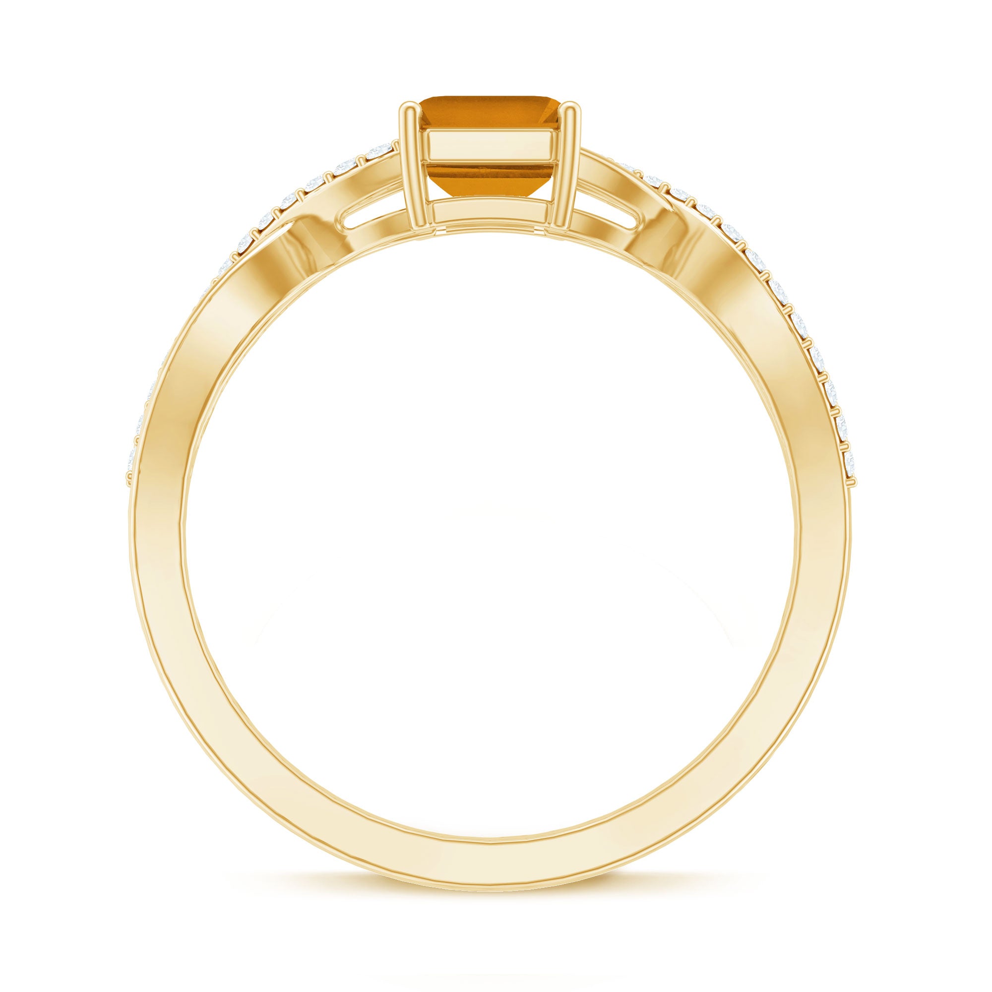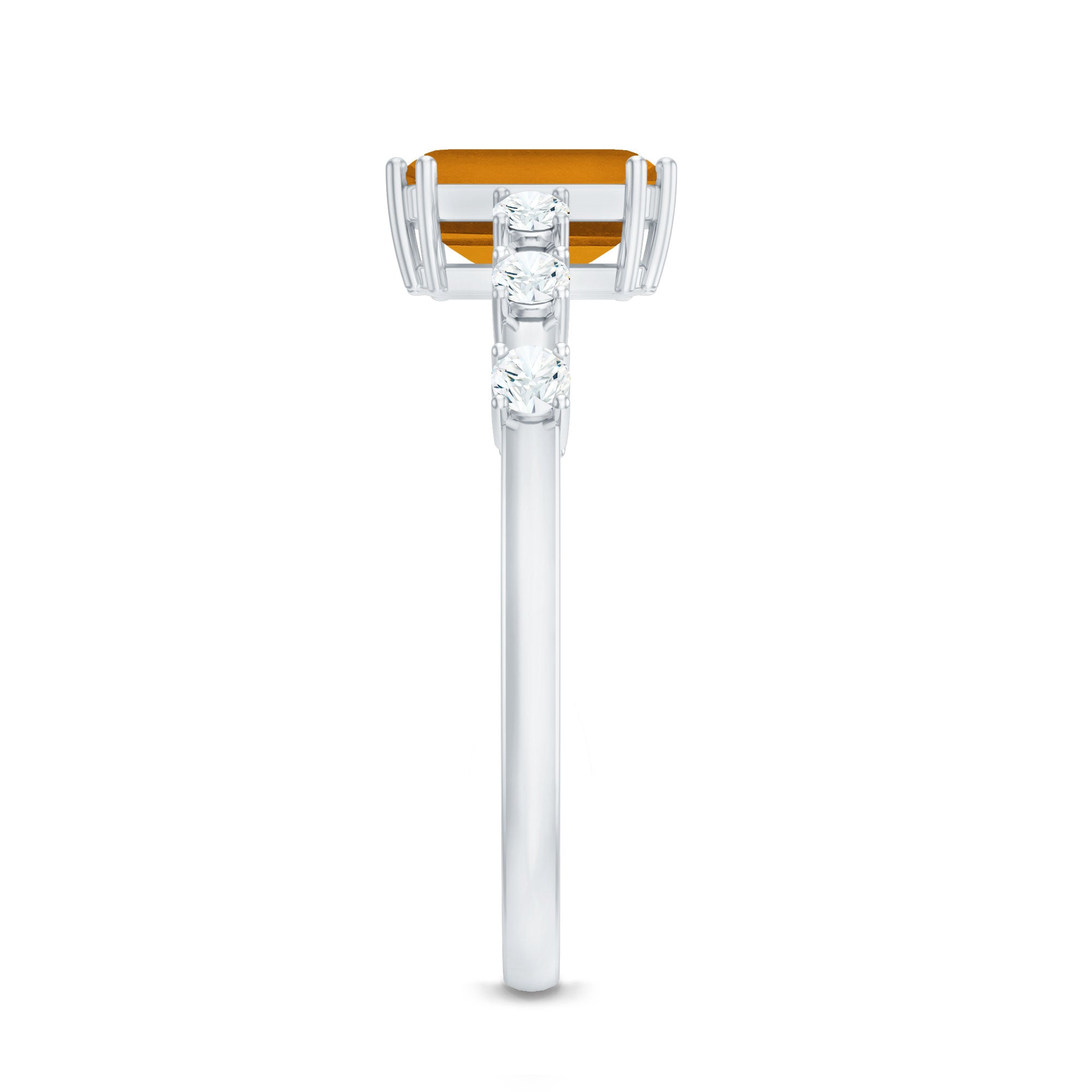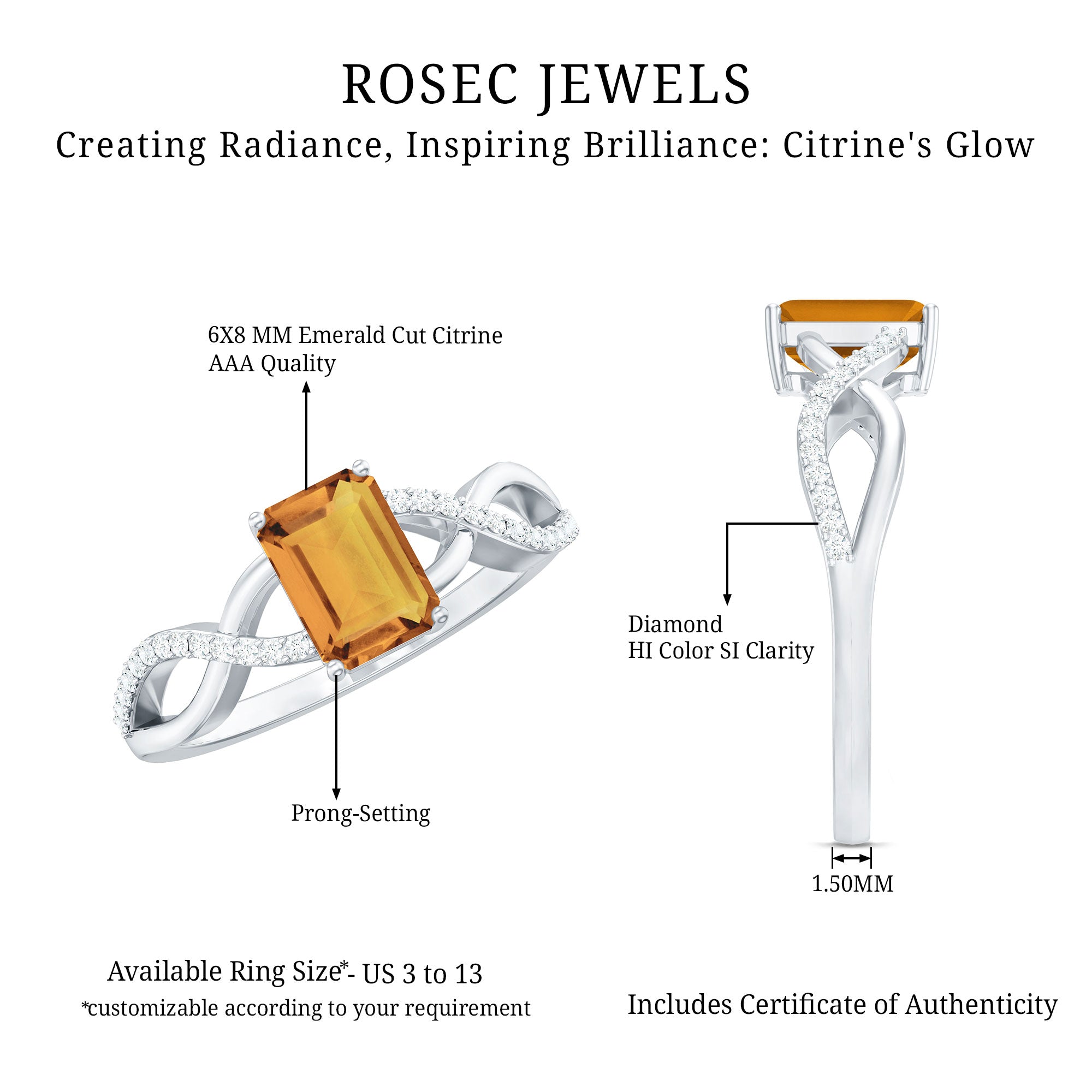 True to what the term ‘Solitaire’ suggests, this ring style is mounted with the Centerpiece of Citrine that stands all alone. Moreover, the beauty of Citrine here is showcased the most thanks to its enormous size of 6 MM or more. A Citrine Solitaire Ring makes for one of the most timeless and versatile engagement rings out there, owing to the many shapes it is fashioned with. While a Round or Oval Citrine Engagement Ring stands out for its sophisticated appeal, the one fashioned with Pear, Marquise, or Princess Cut Citrine is meant for couples who fancy a trendy touch. On the other hand, if you’re someone who likes grand gestures of love, a Cushion, Asscher, or Cushion Cut Citrine Ring works best.